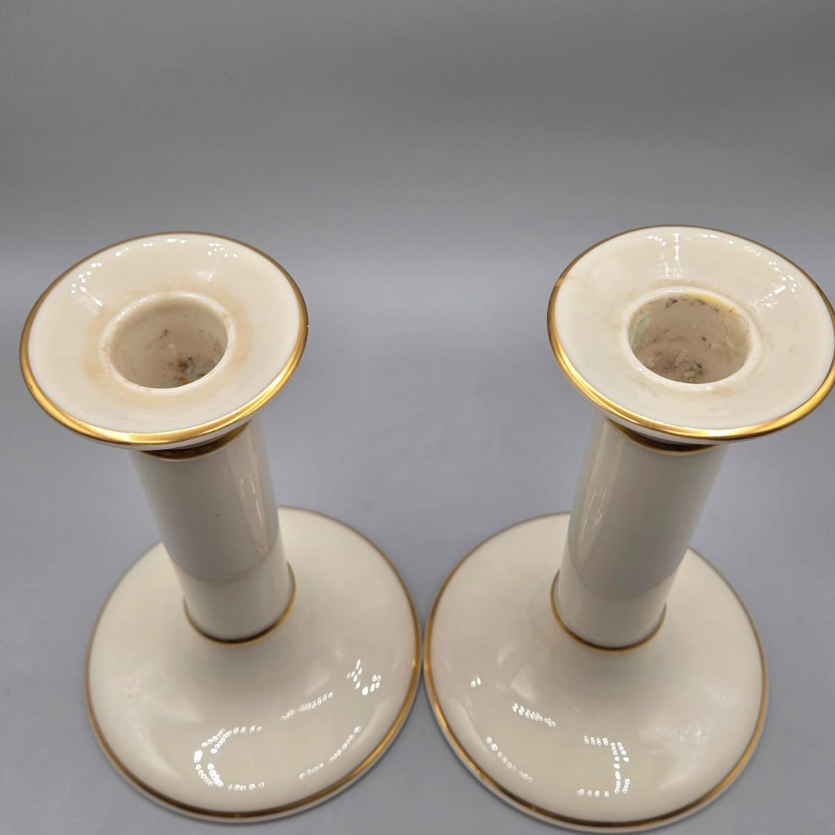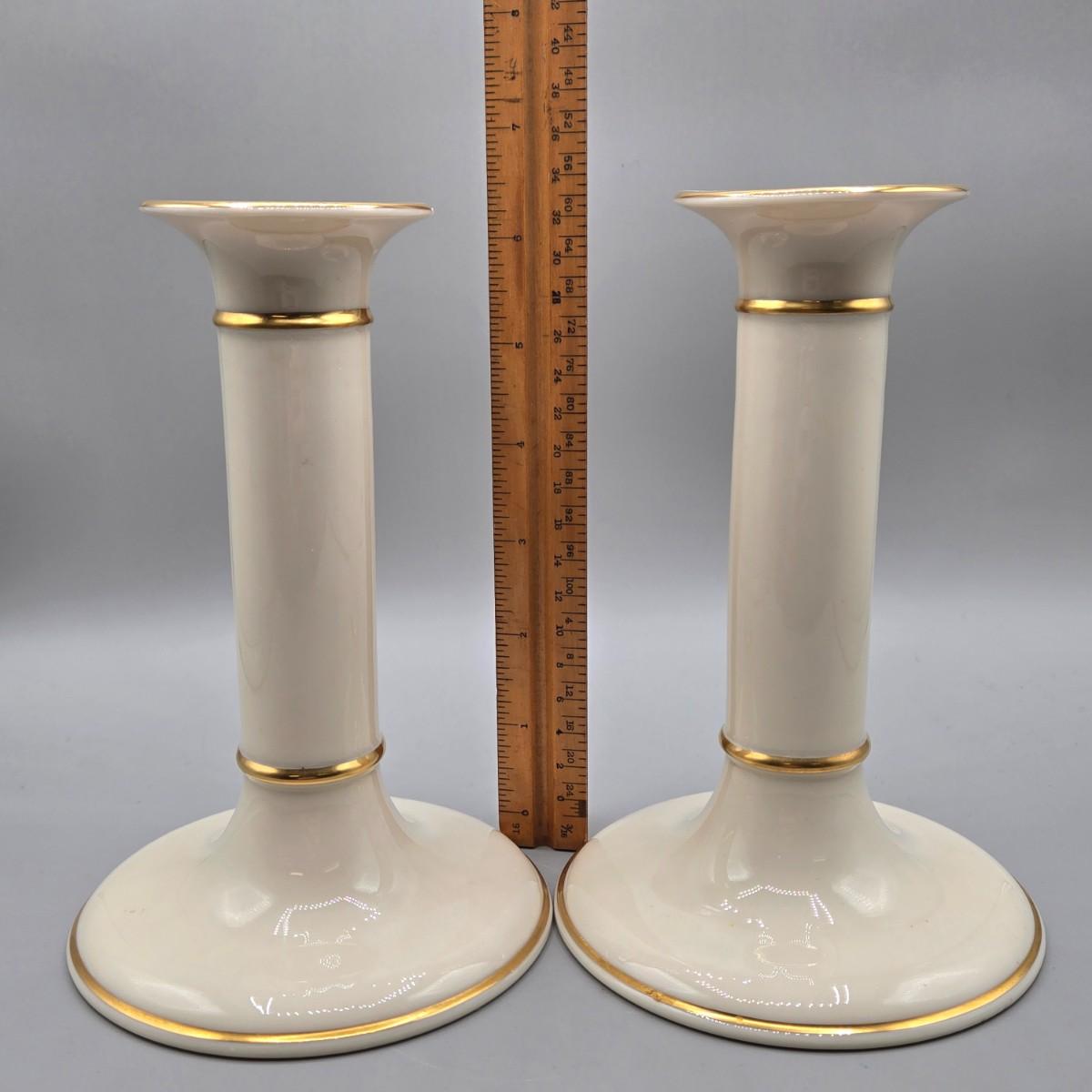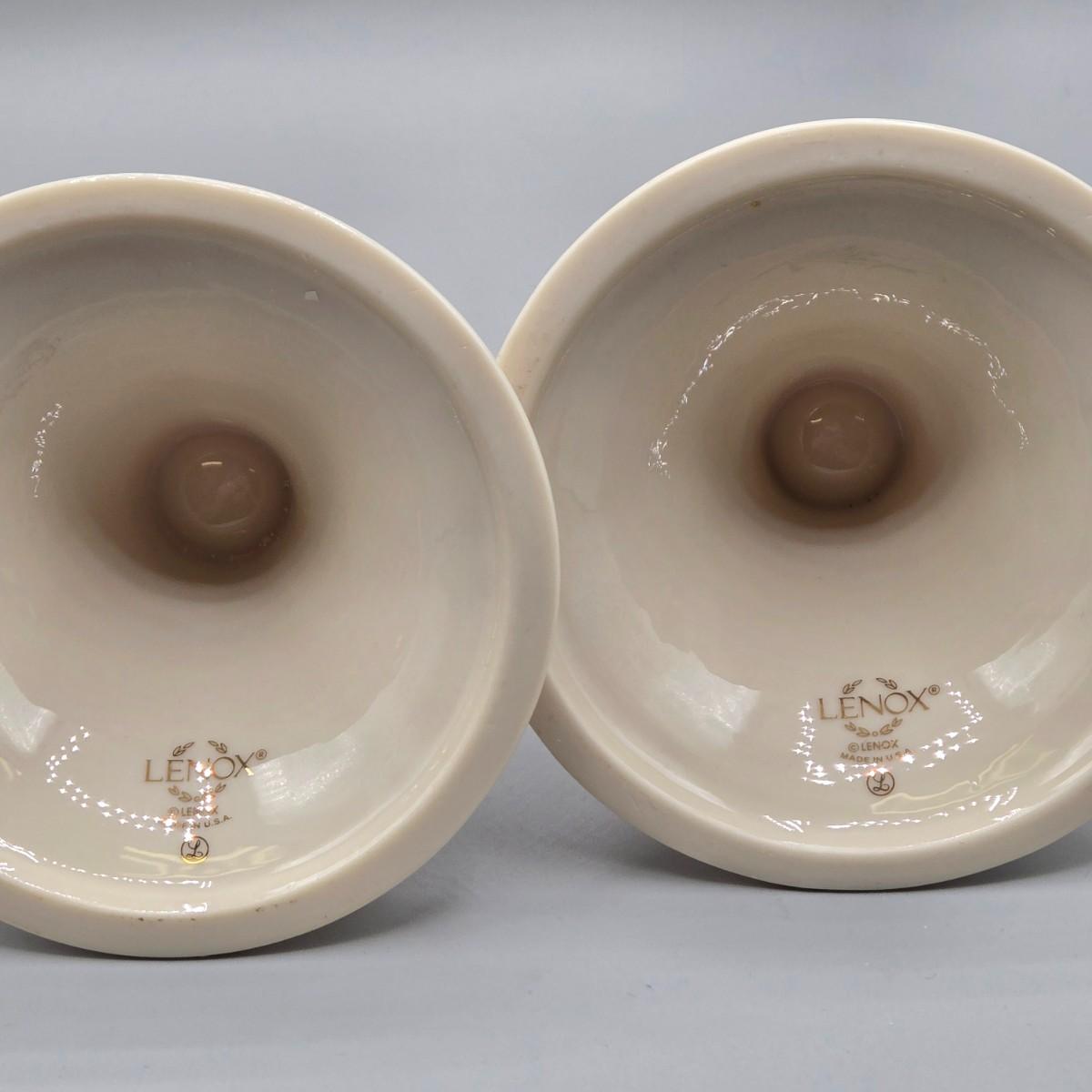 LOT 99: Lenox Ceramic Greenfield Candlestick Holders, Windsor Collection Candlesticks, and Vintage Pink Acanthus Leaf Bowl
