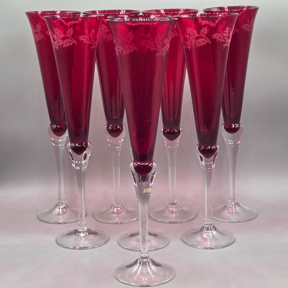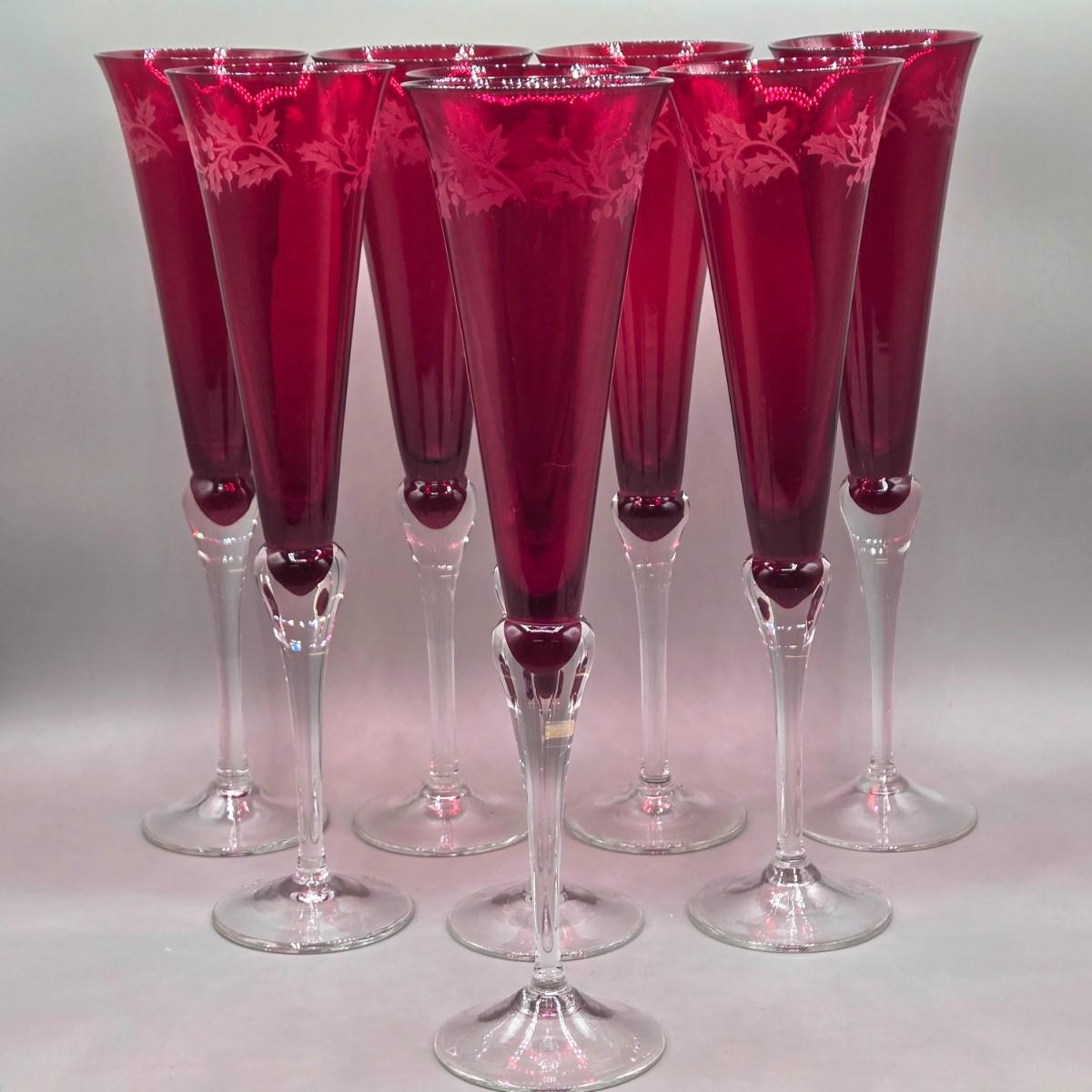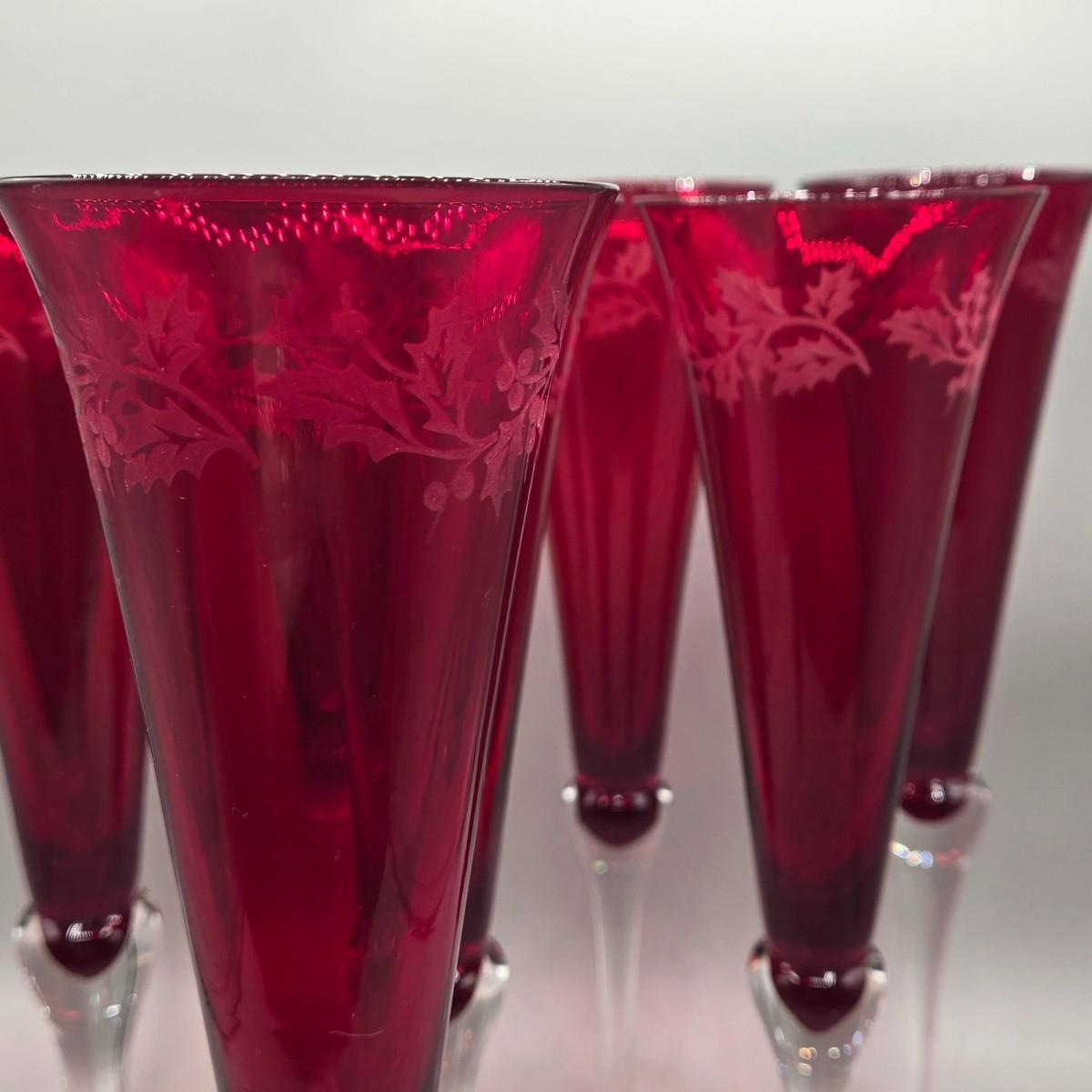 LOT 100: Vintage Holiday Gem Lenox Ruby Red Crystal Champagne Flutes