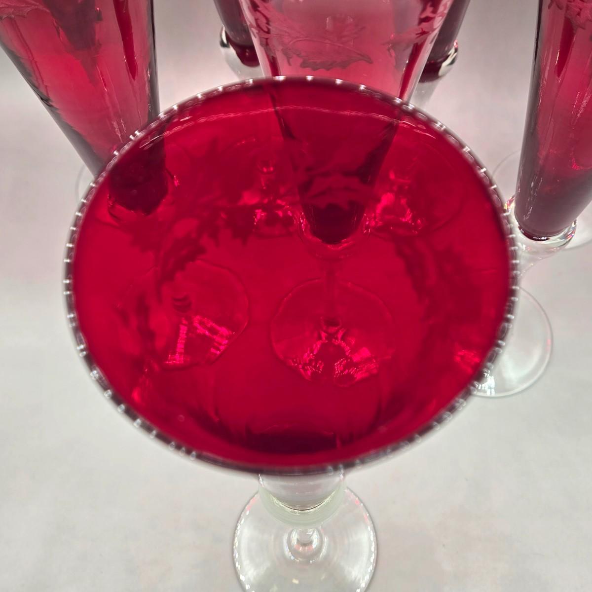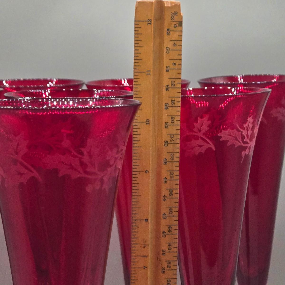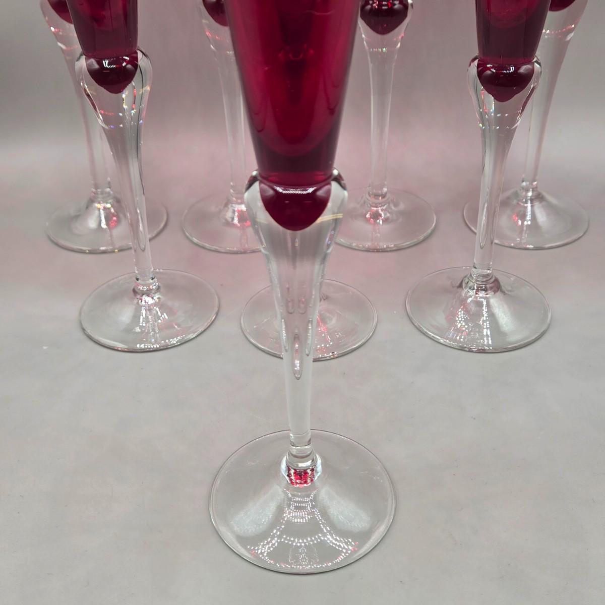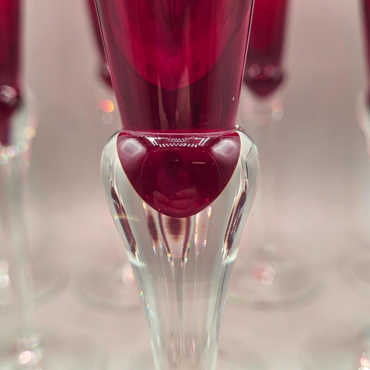 LOT 100: Vintage Holiday Gem Lenox Ruby Red Crystal Champagne Flutes