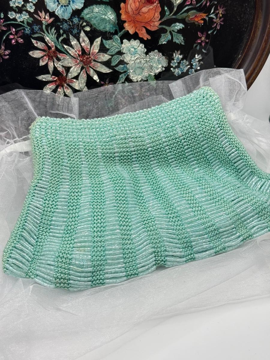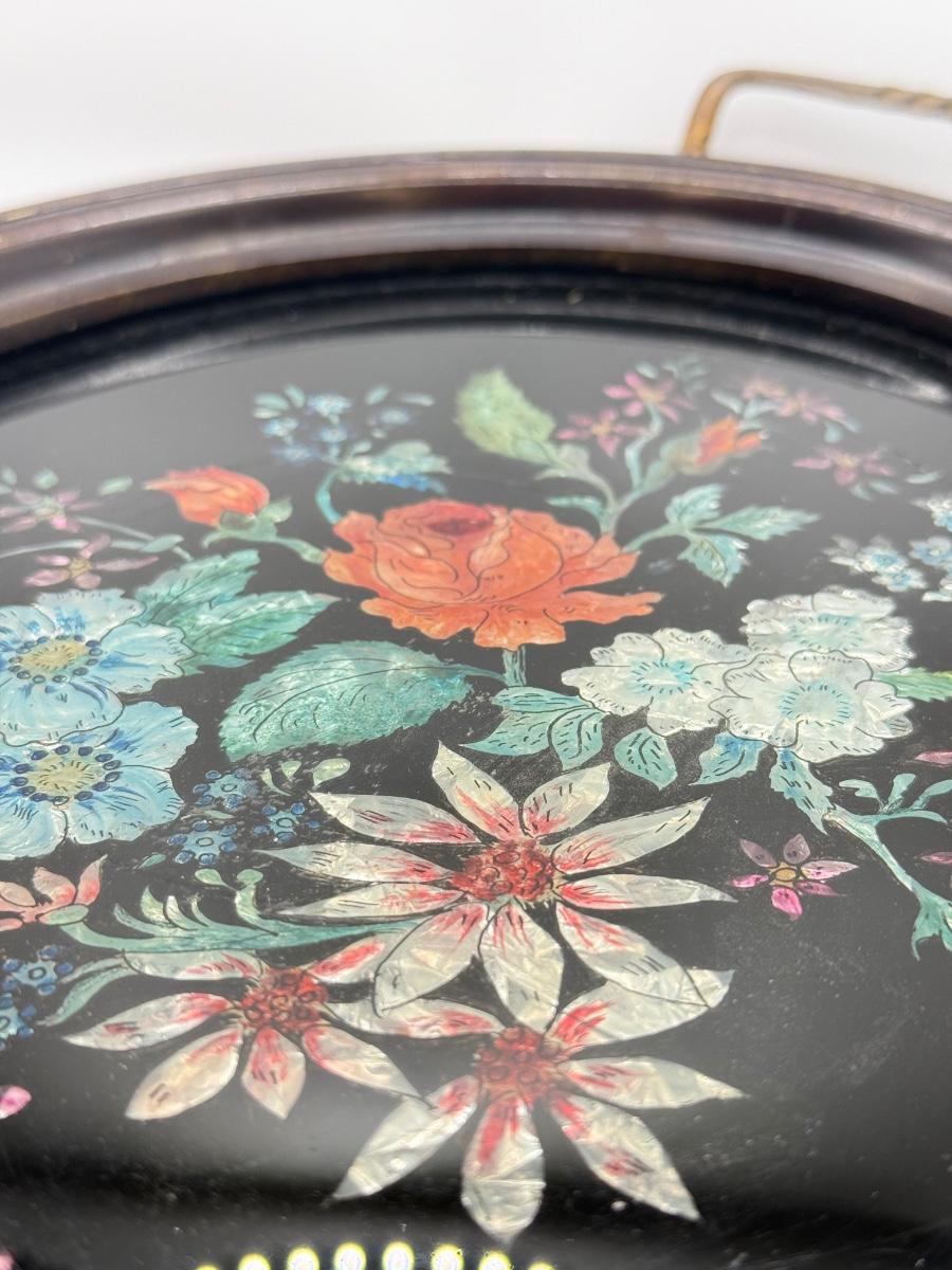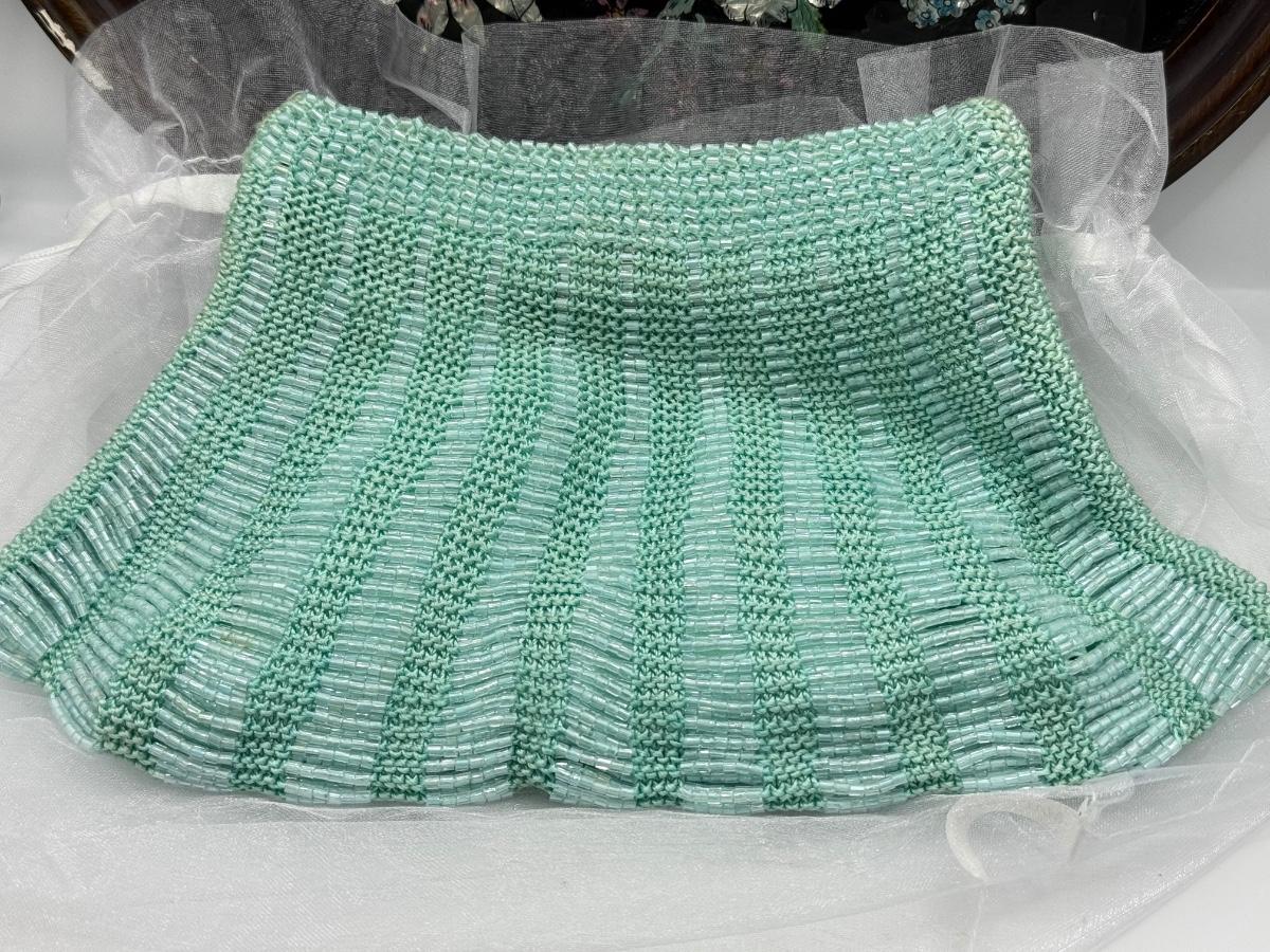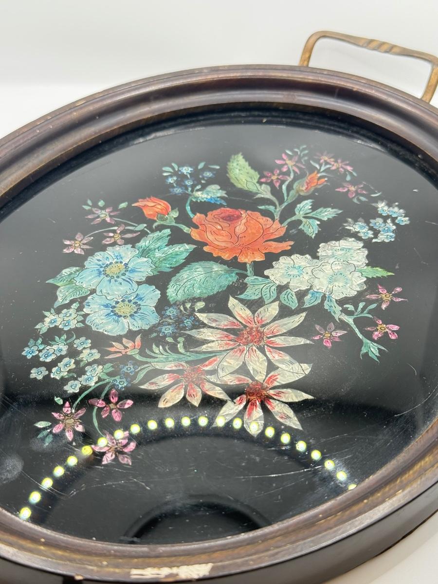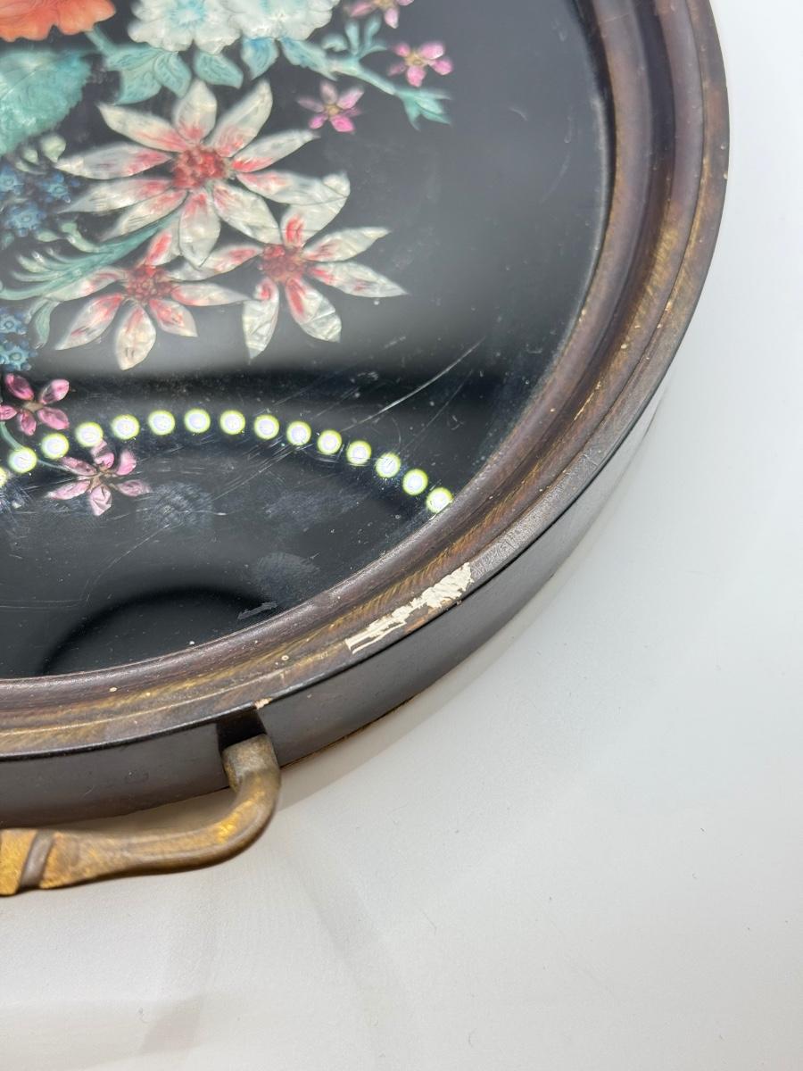 LOT 106: Beautiful Inlaid Laquered Tray w/ Vintage Teal Beaded Clutch