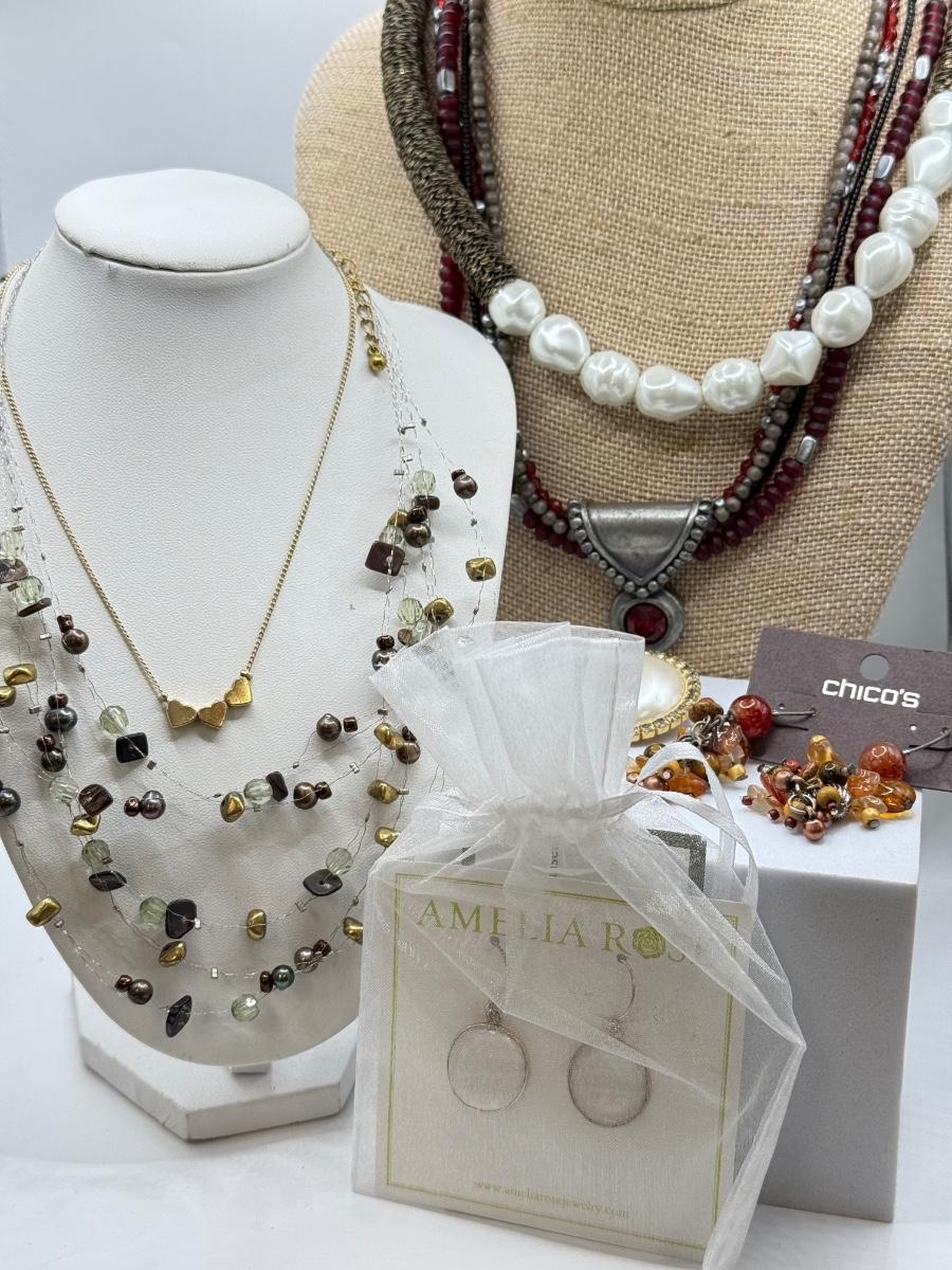 LOT 117: Collection of Necklaces & Earrings: Chicos, Amelia Rose & More