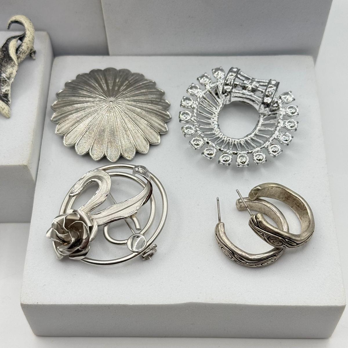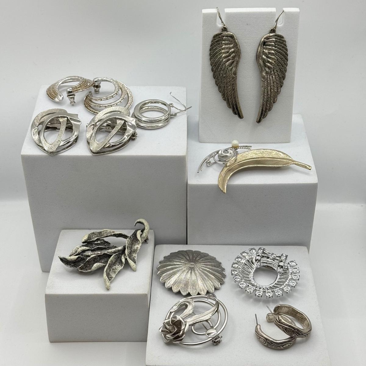 LOT 120: Collection of Silvertone Jewelry: Earrings & Brooches