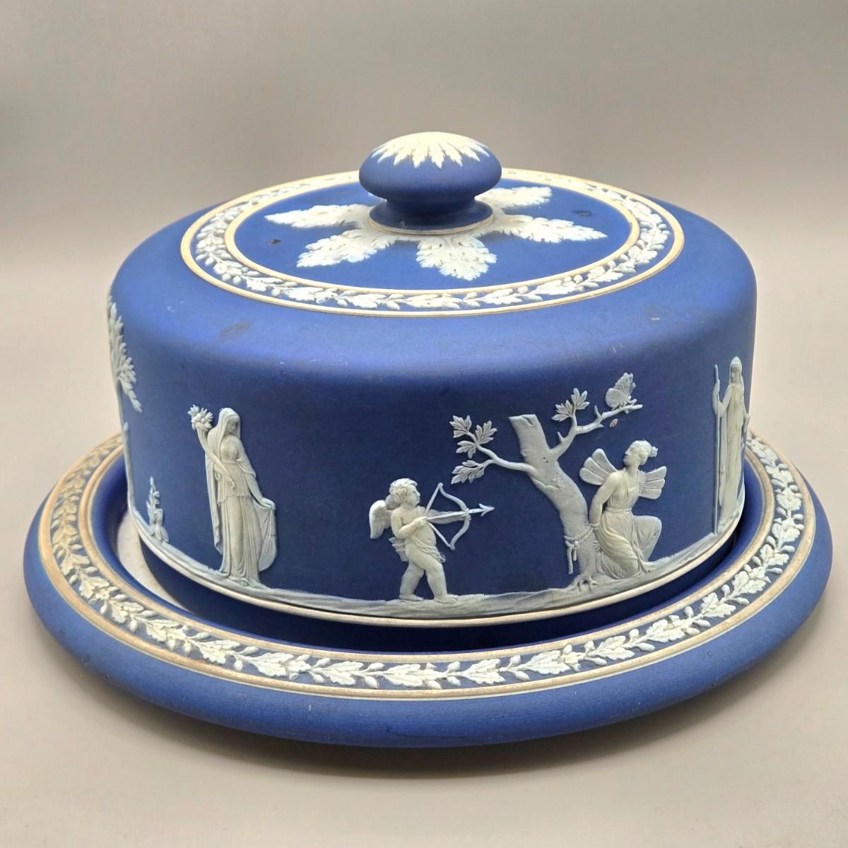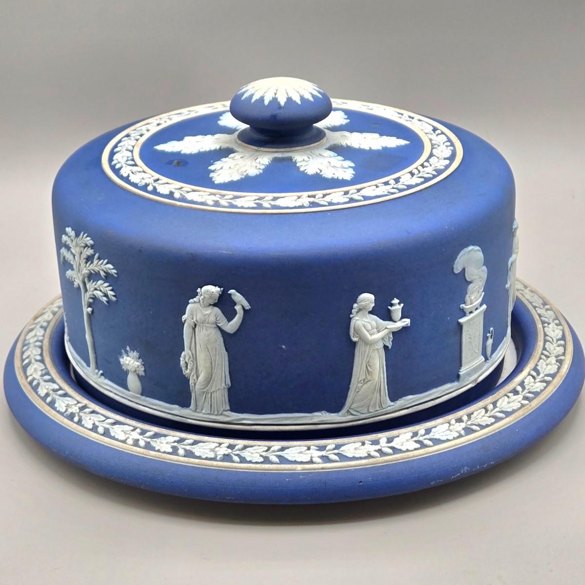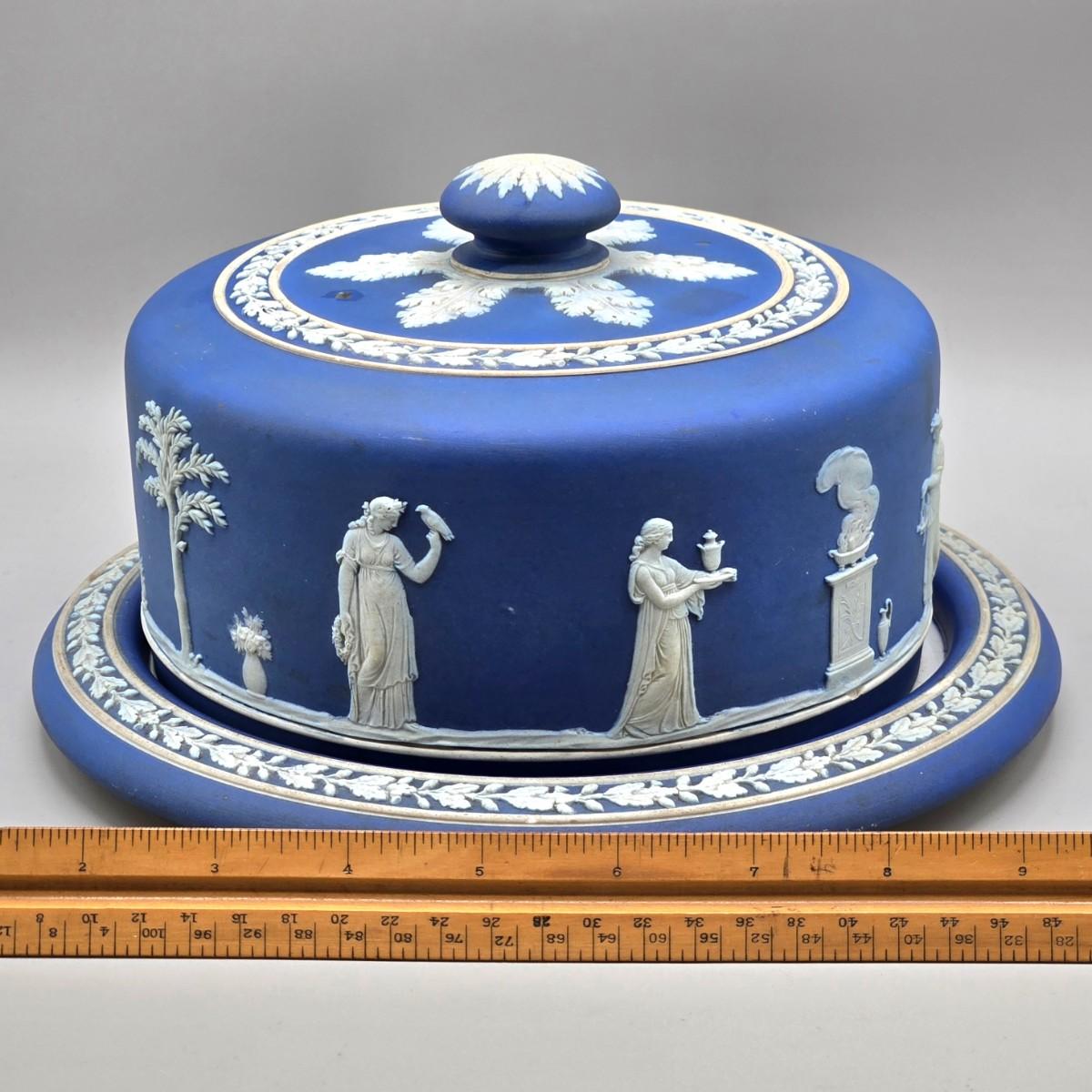 LOT 125: Wedgwood Dark Cobalt Blue Jasperware Cheese Dome with Underplate