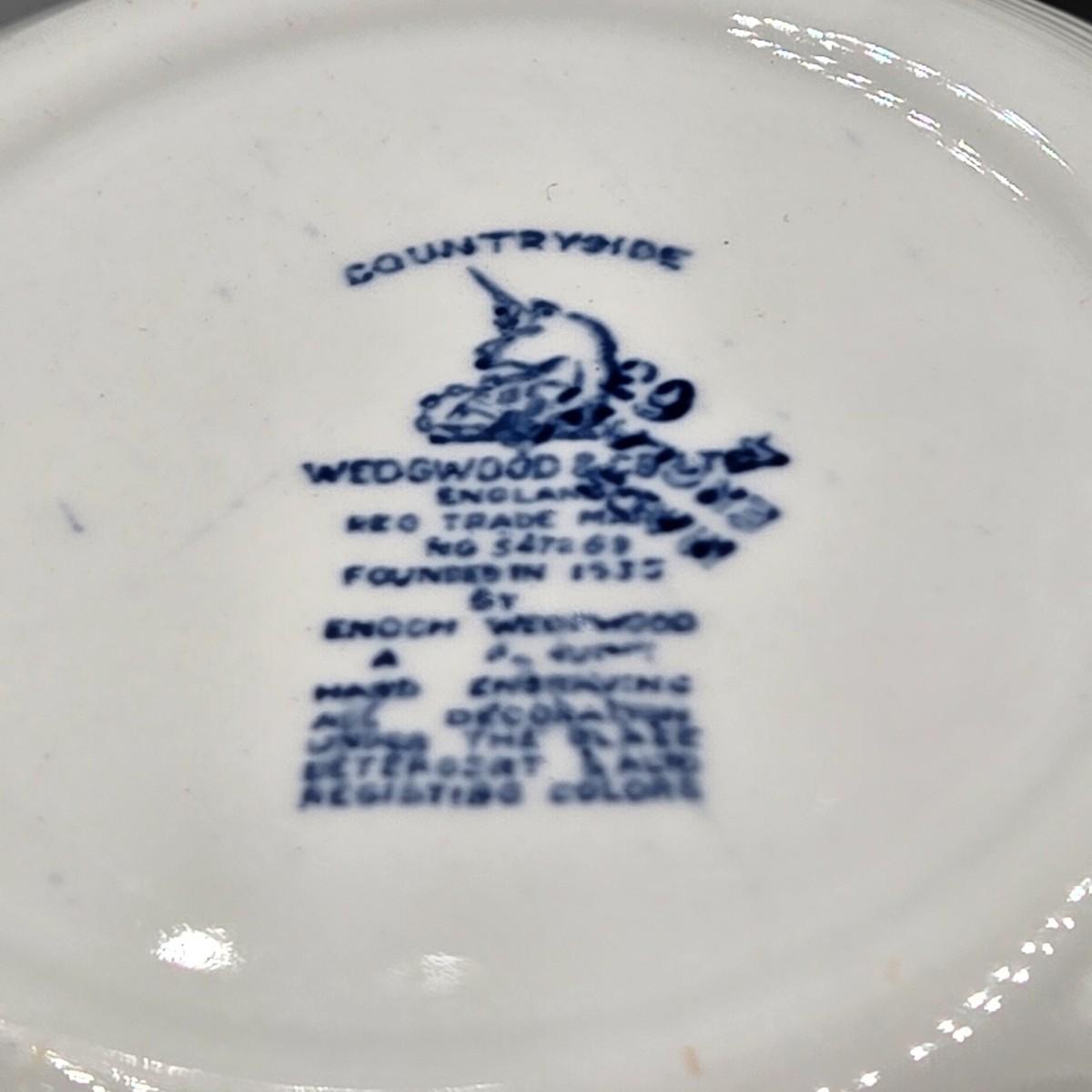 LOT 132: Vintage Countryside Blue Enoch Wedgewood Dinnerware Including 20 Dinner, 10 Dessert Plates, 10 Soup, 8 Dessert Bowls, 2 Serving Platters, and 2 Serving Bowls/Storage Cases Included