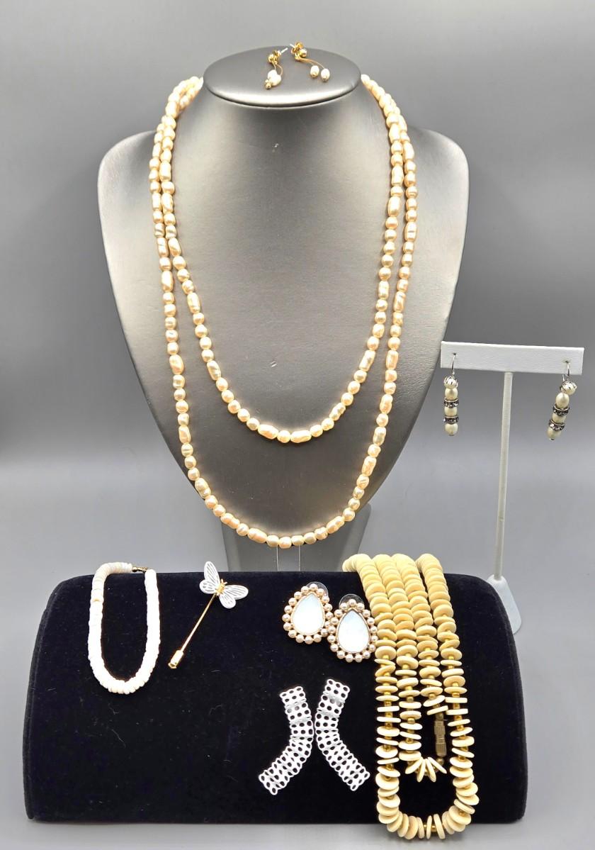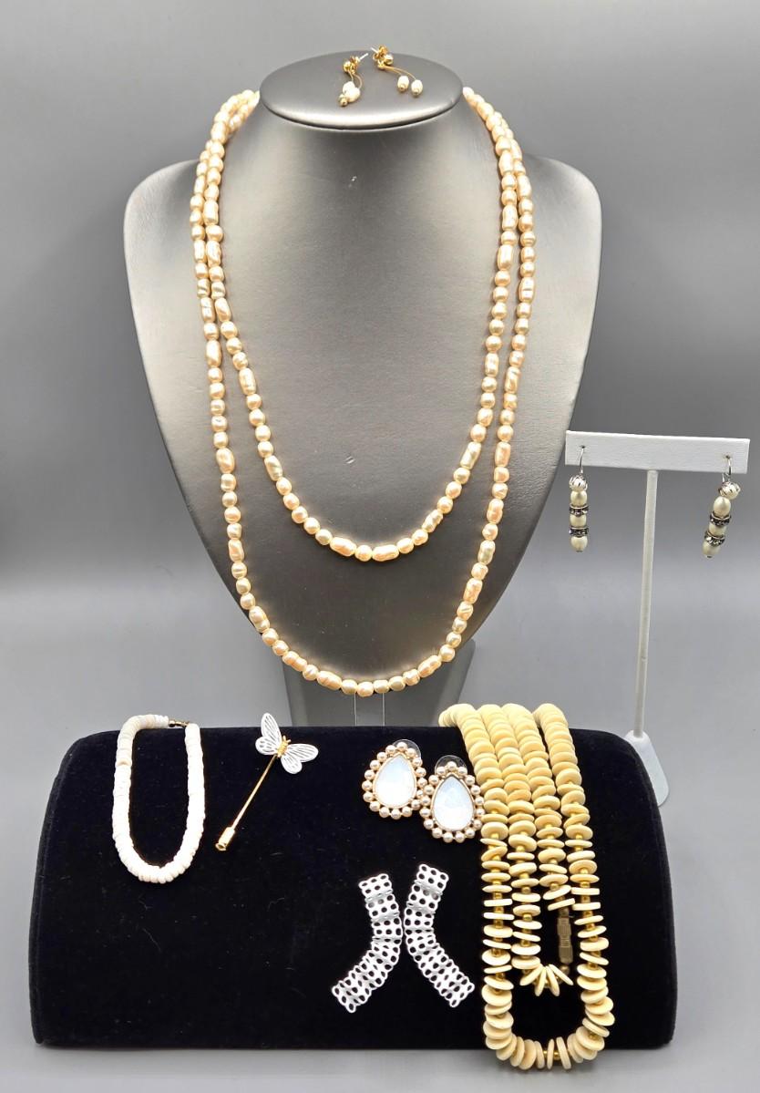 LOT 148J: Vintage Jewelry Including Butterfly Stick Pin, Freshwater Pearl Necklace with Matching Earrings, and More