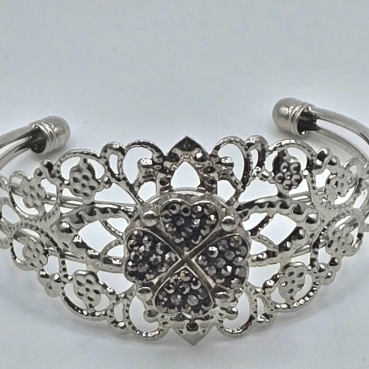 LOT 173J: Silver-tone Jewelry Including Rhinestone Turtle Clamper Bracelet, Bib Necklace, Multiple Bangle and Cuff Bracelets, and More