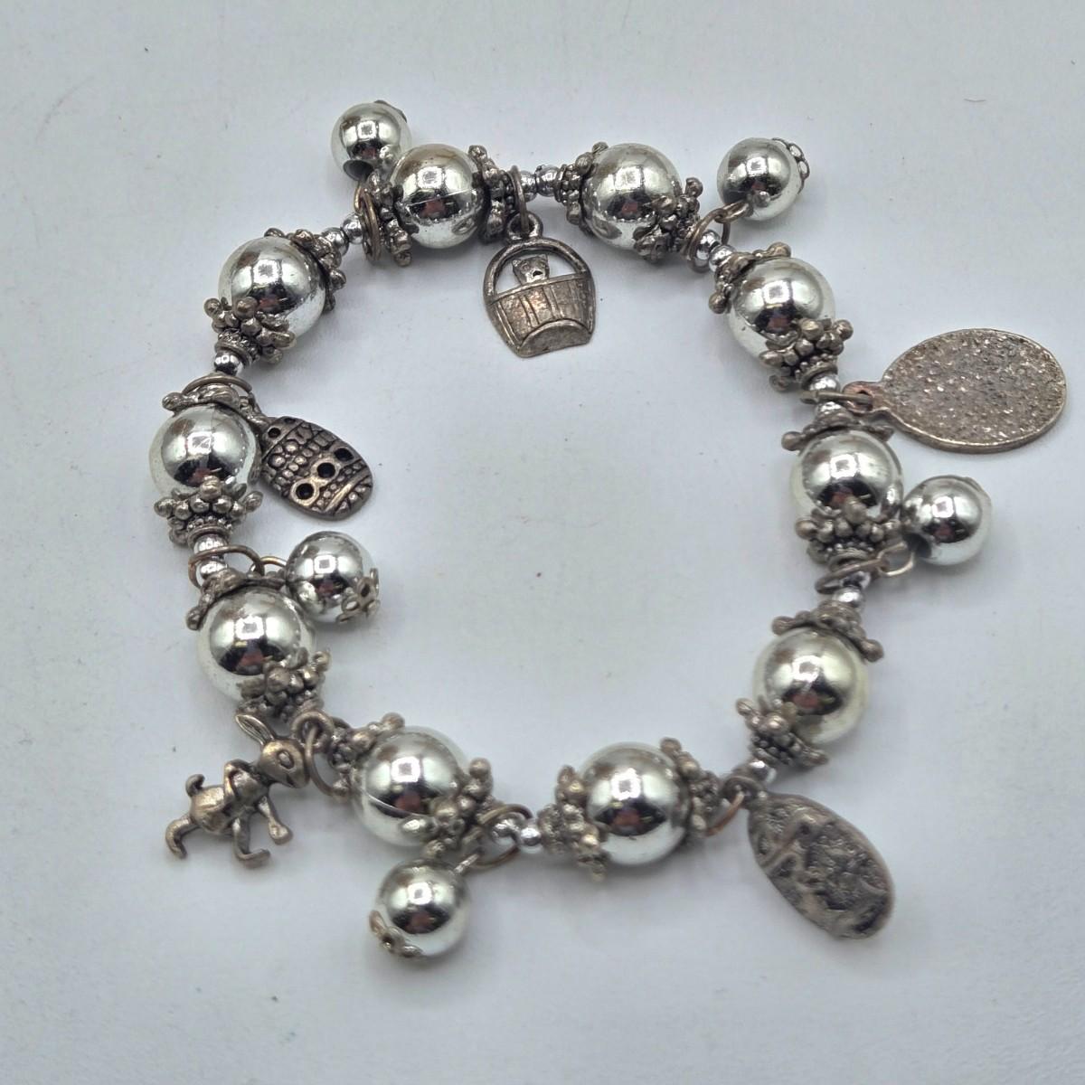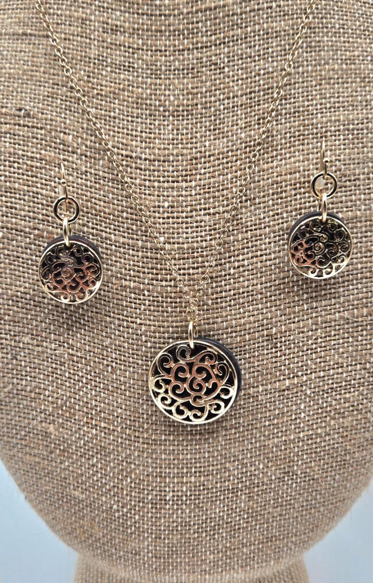 LOT 192J: Filigree 2 Tone Necklace with Matching Earrings, Multiple Pairs of Pierced Earrings, Charm Bracelets, and More