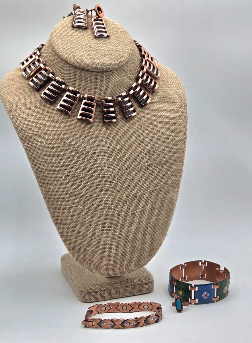 LOT 200J: Copper-tone Necklace with Matching Earrings, Copper Ring, and More