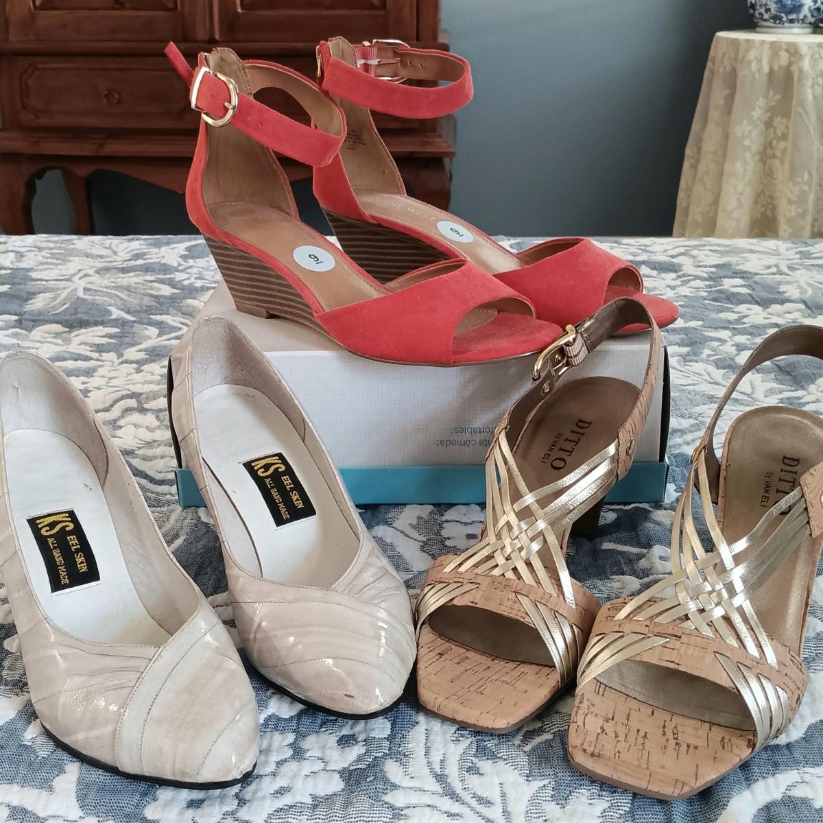 LOT 23: Vintage KS Eel Skin Pumps with Ditto by Van Eli Cork Heels & Nine West Heels