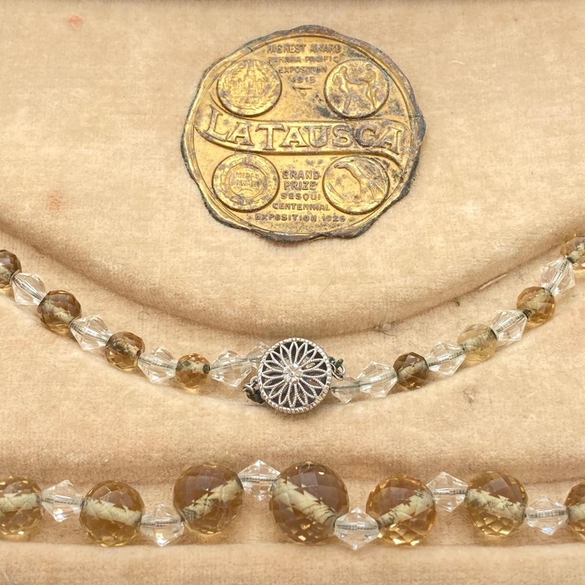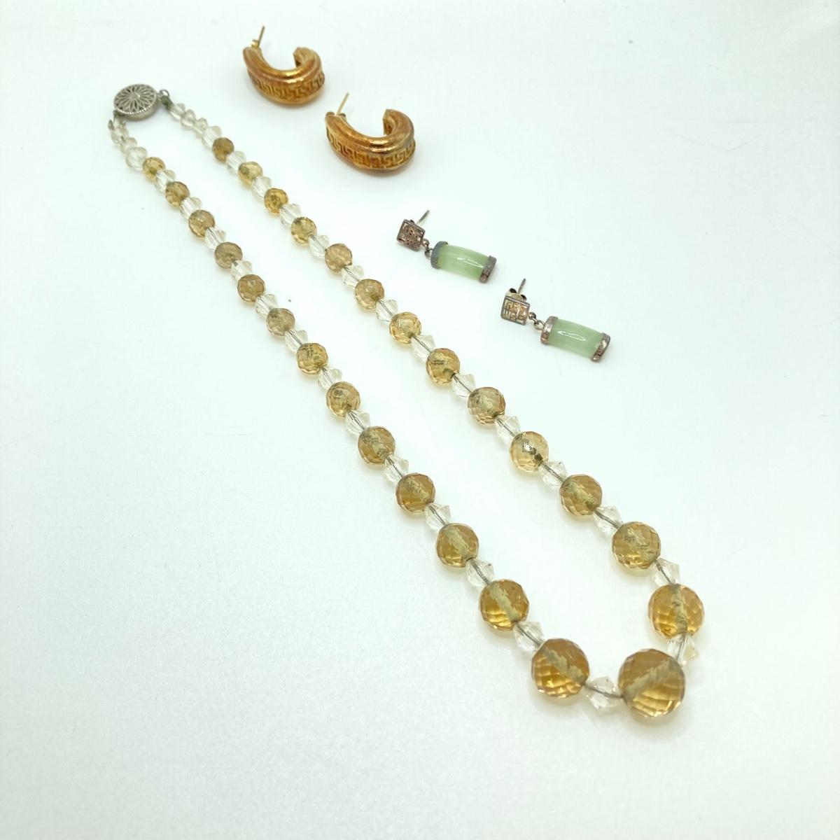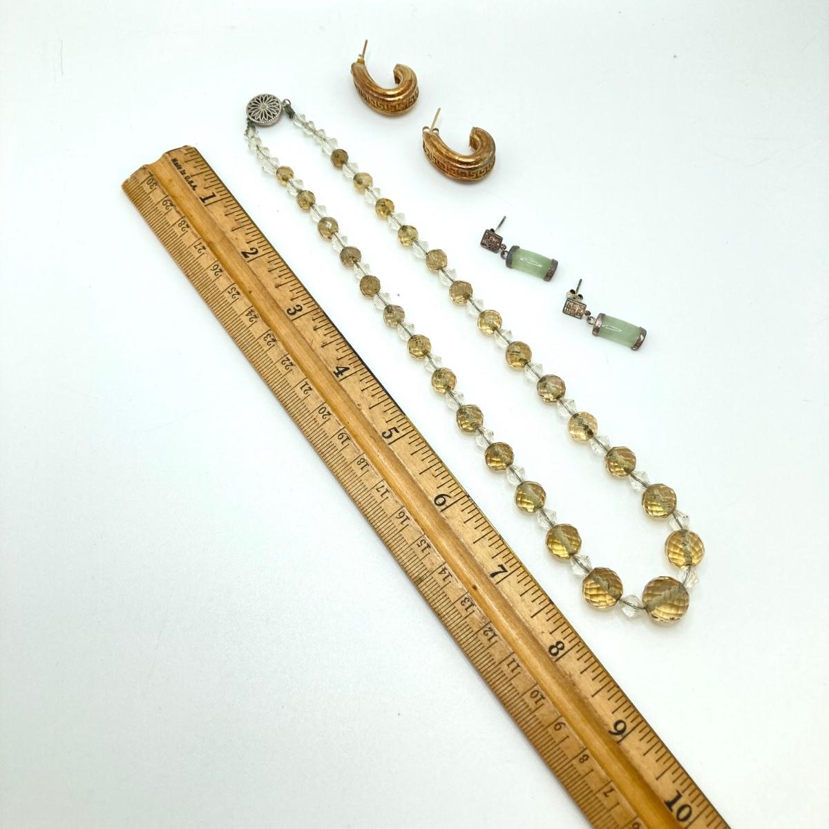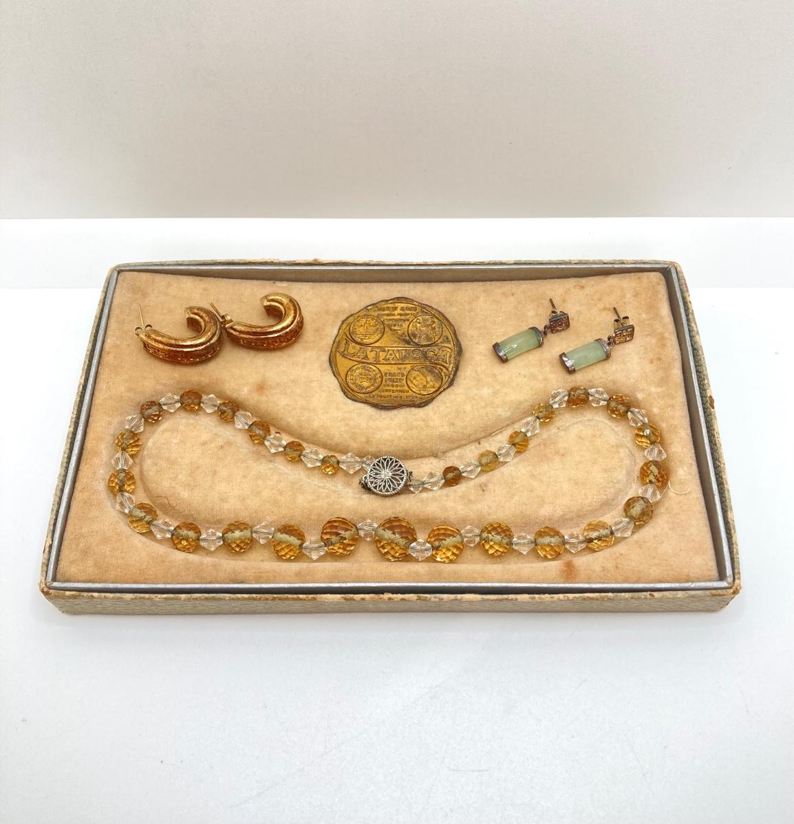 LOT 56: Vintage Jewelry - Jadeite / Sterling Dangle Earrings, 925 Gold Vermeil Greek Key Pierced Earrings and Faceted Bead Necklace in Latausca Box
