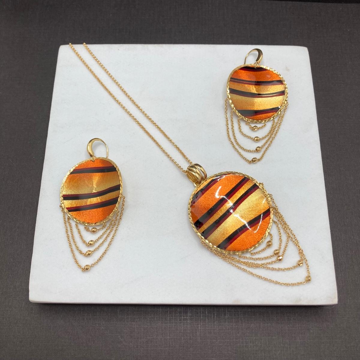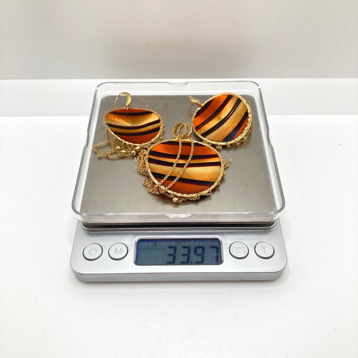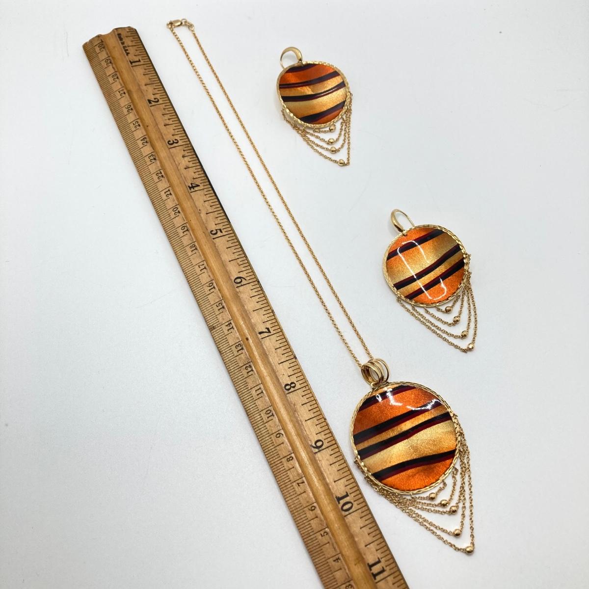LOT 60: Vintage Genero Italy Enamel Necklace and Earrings Set - 750 / 18KT, TW 33.97g