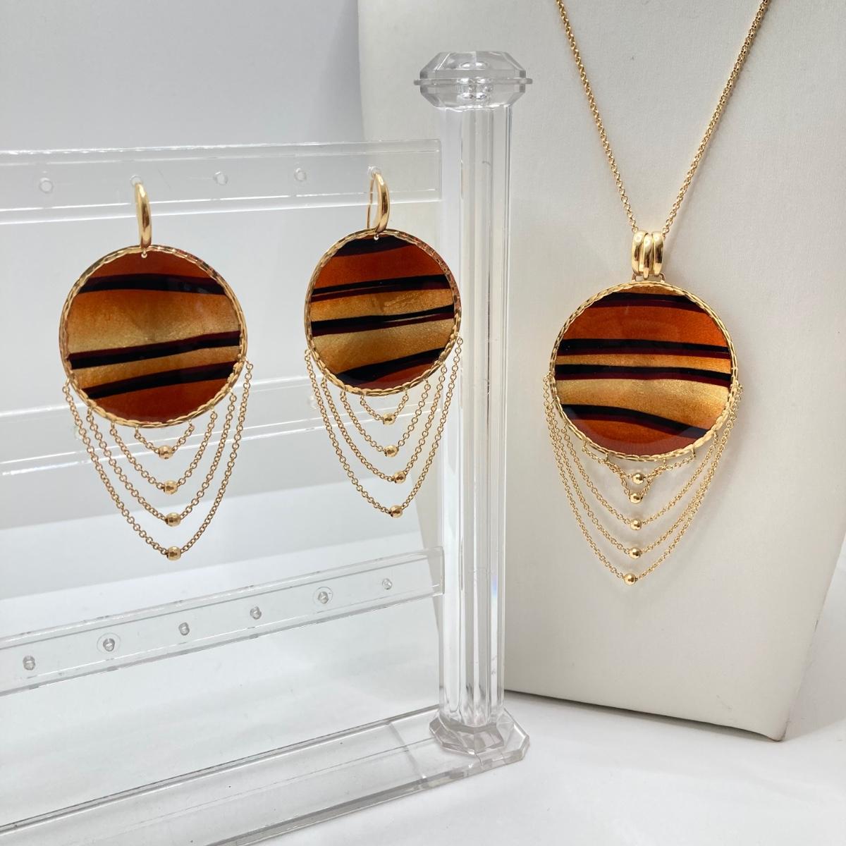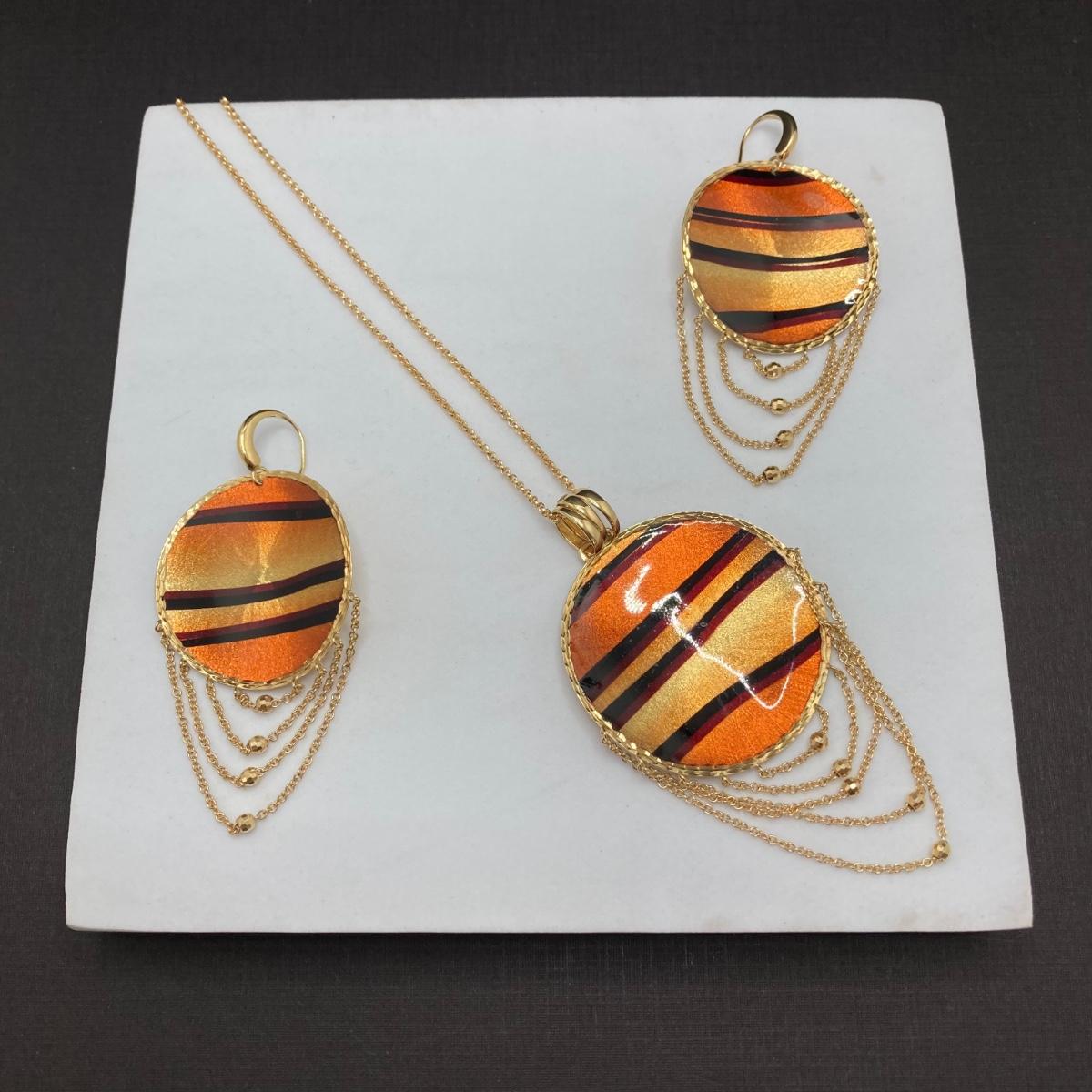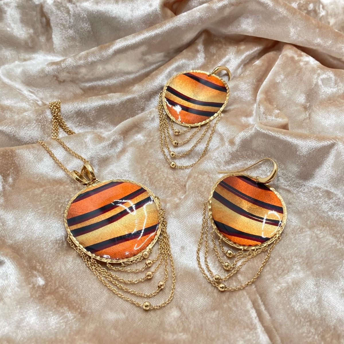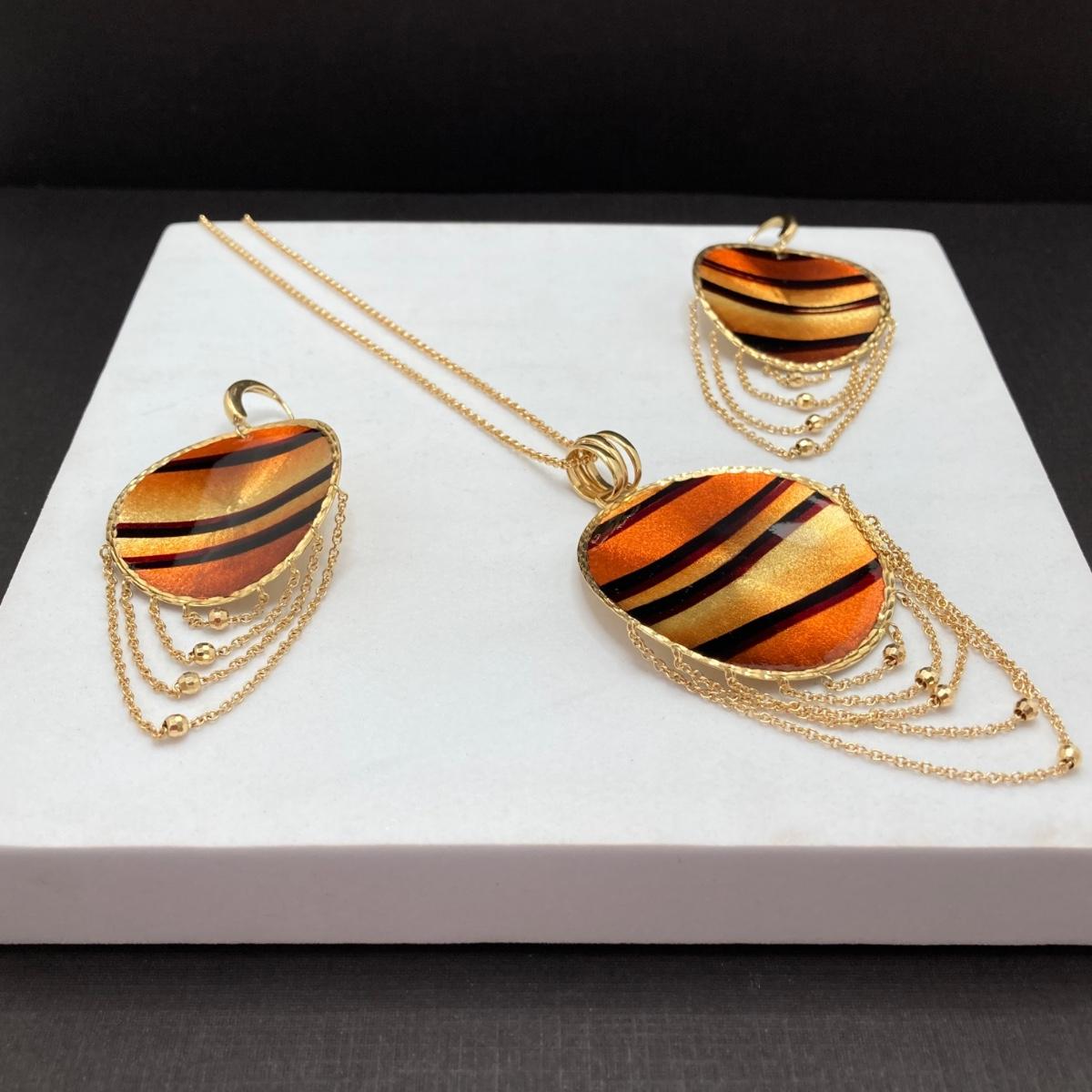 LOT 60: Vintage Genero Italy Enamel Necklace and Earrings Set - 750 / 18KT, TW 33.97g