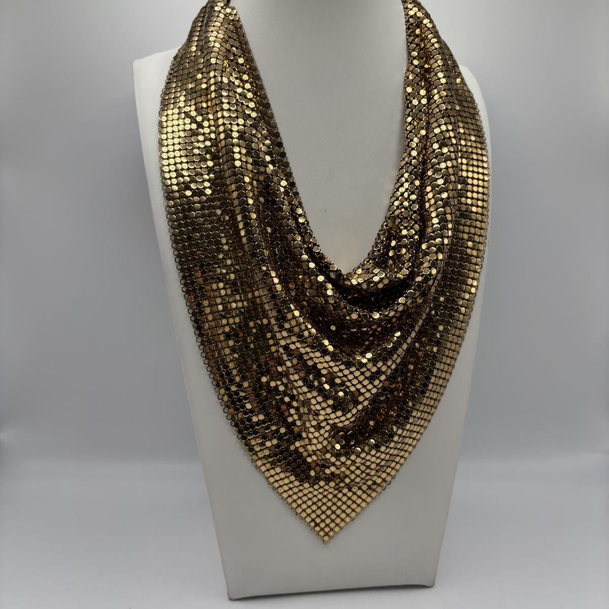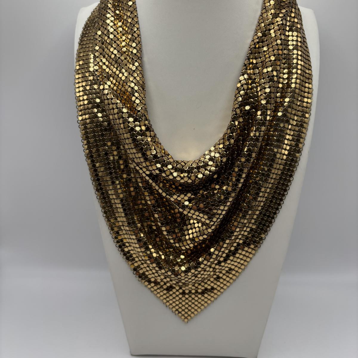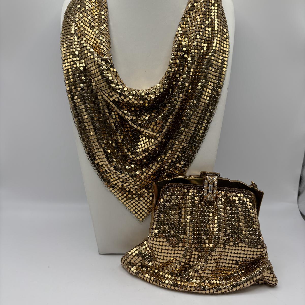 LOT 91: Vintage Gold Tone Whiting & Davis Collection: Mesh Evening Purse & Medal Mesh Bib/Scarf Necklace