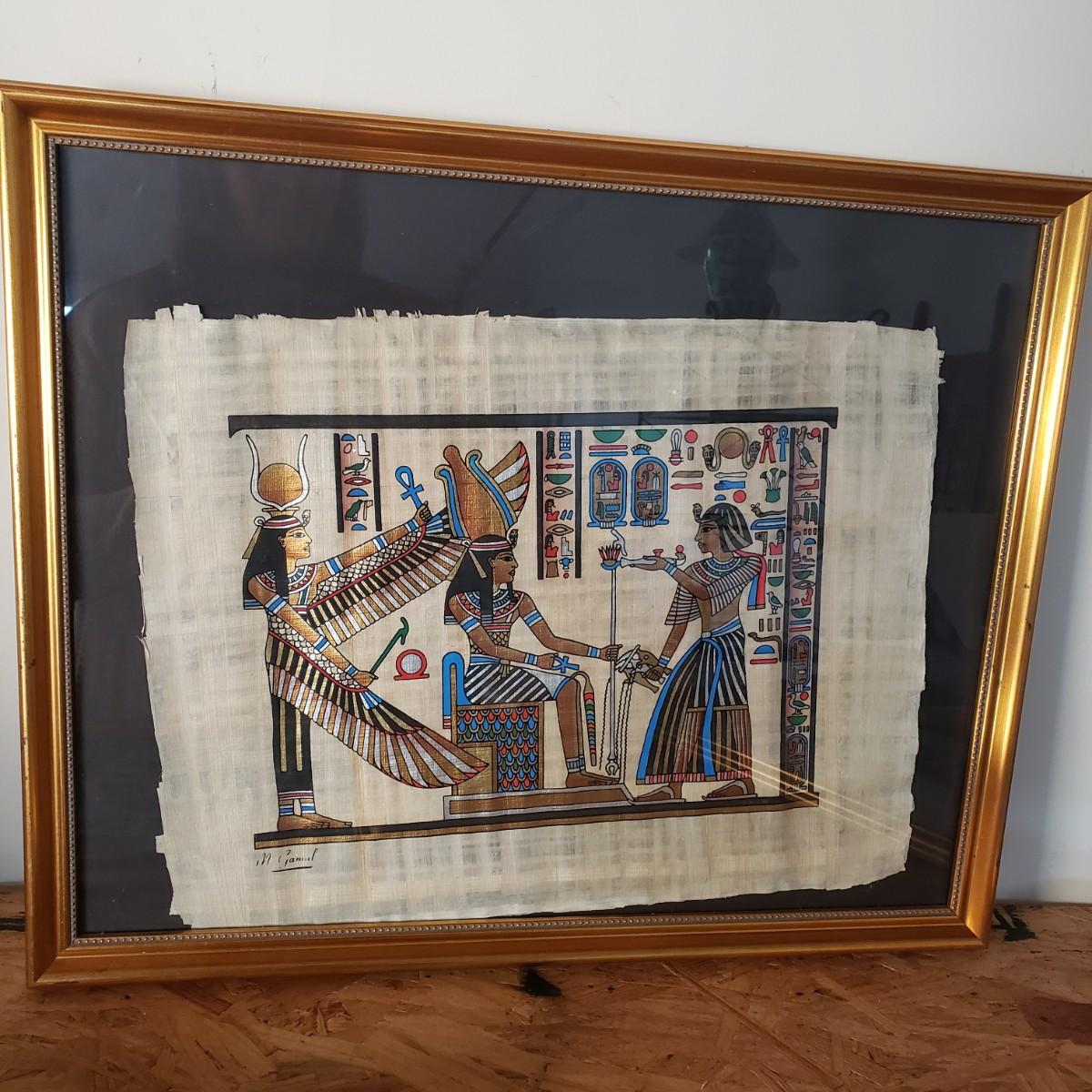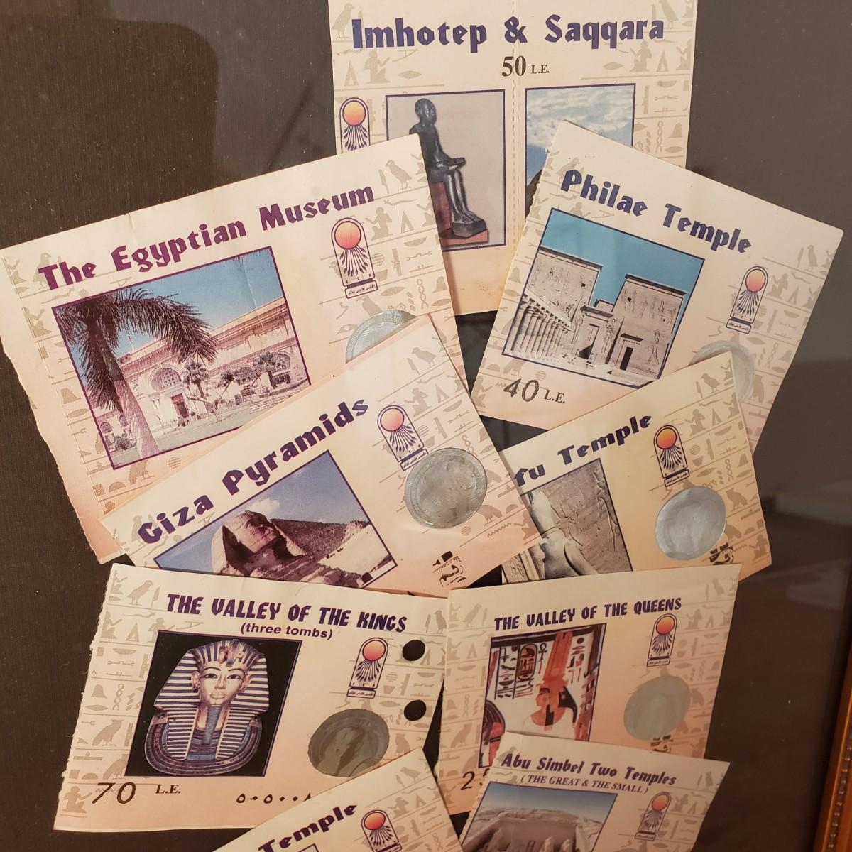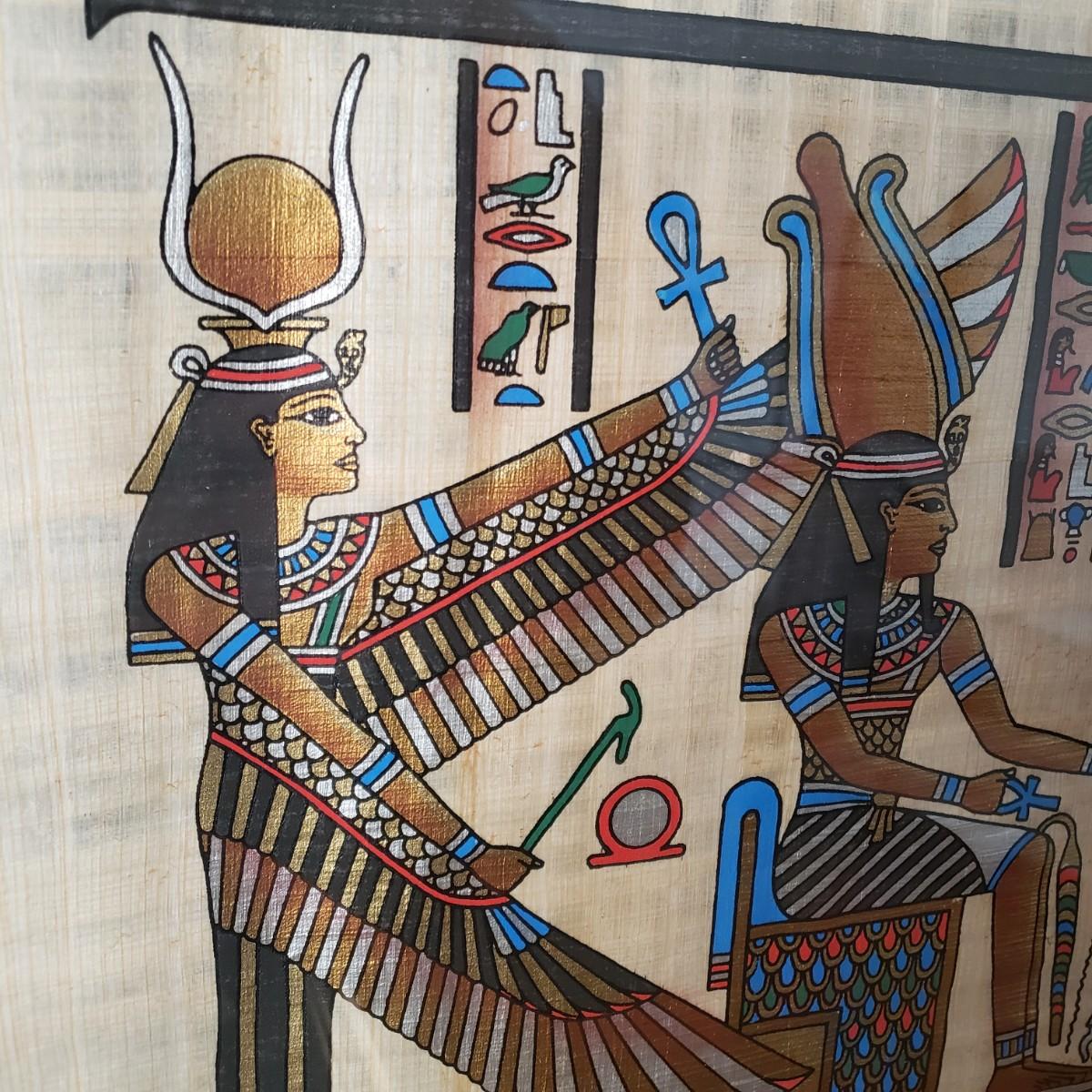 LOT 132: Egyptian Papyrus Art with Framed Collection of Souvenir Tickets from Egypt