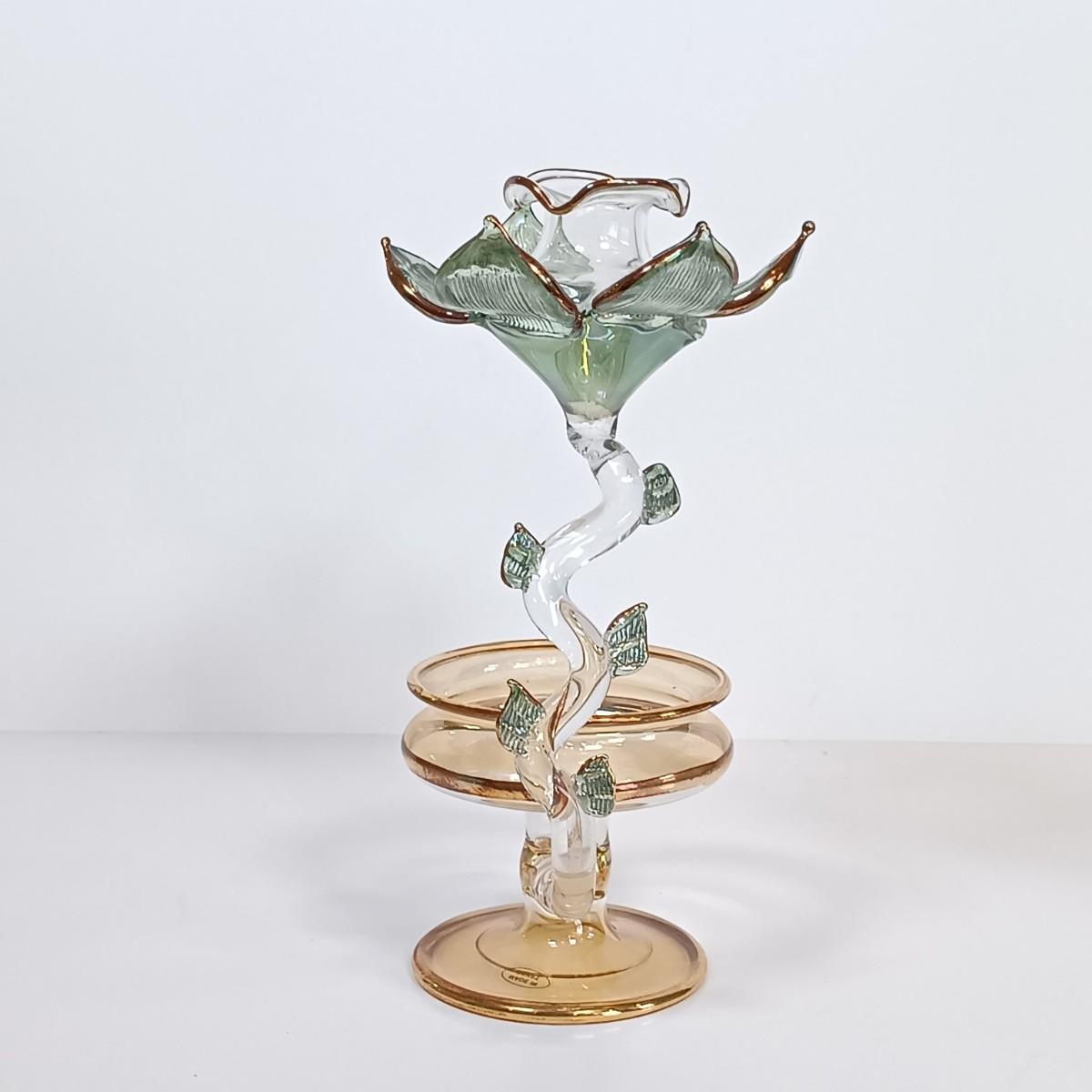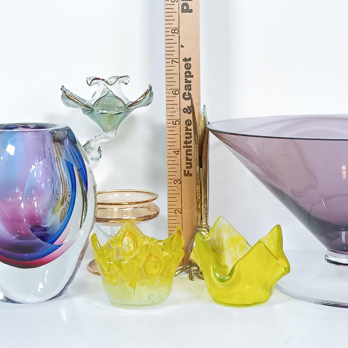 LOT 173: Murano-Style Art Glass Vase, Egyptian Hand Blown Glass Oil Burner, Onion Bulb Bud Vase & More