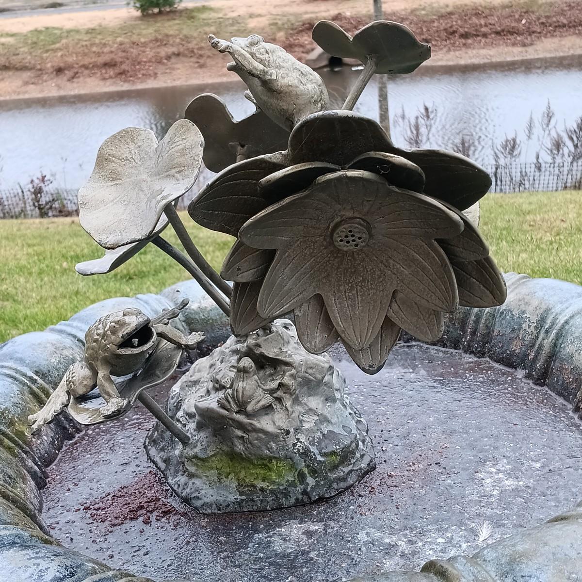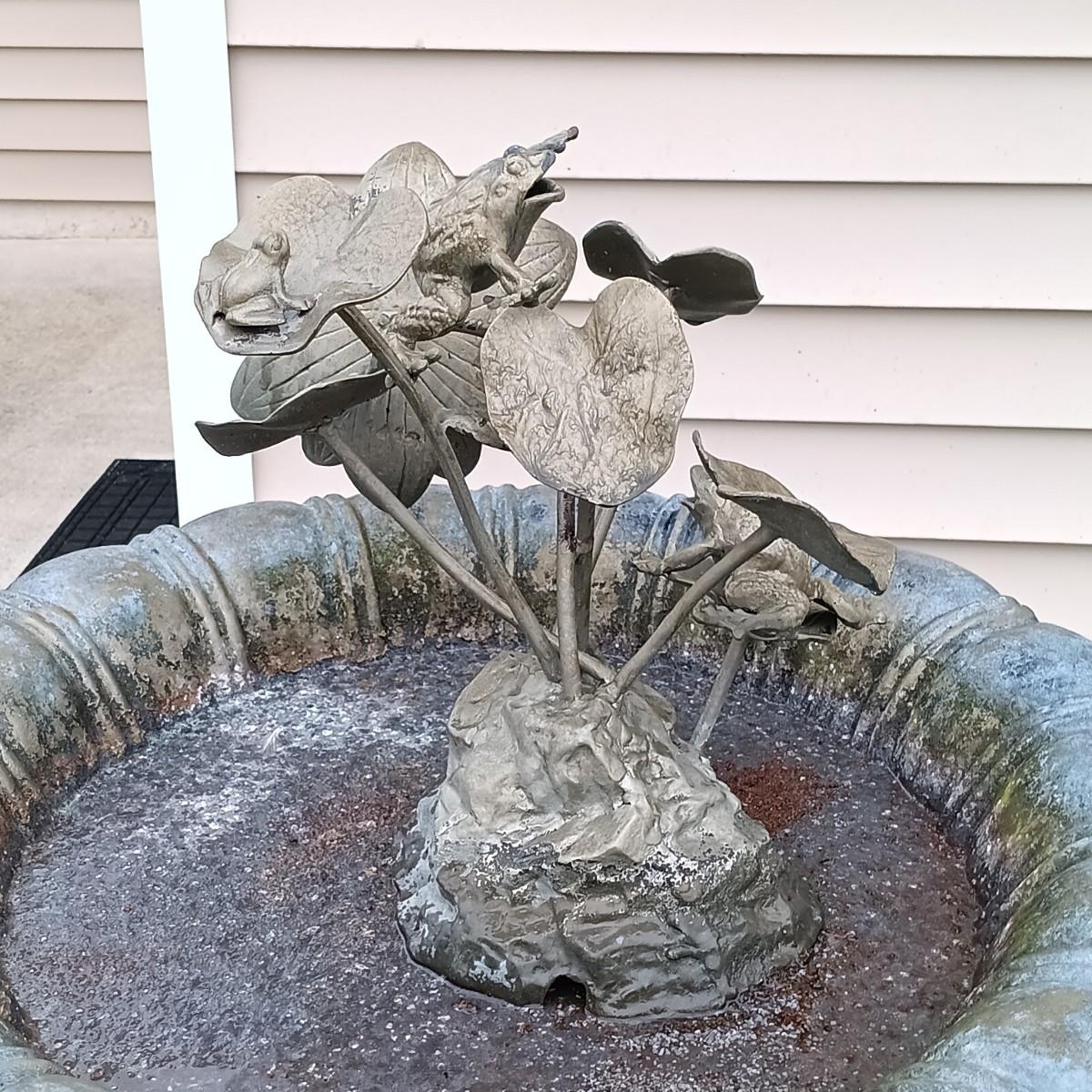 LOT 186: Metal Bird Bath with Frog and Lilypad Spout