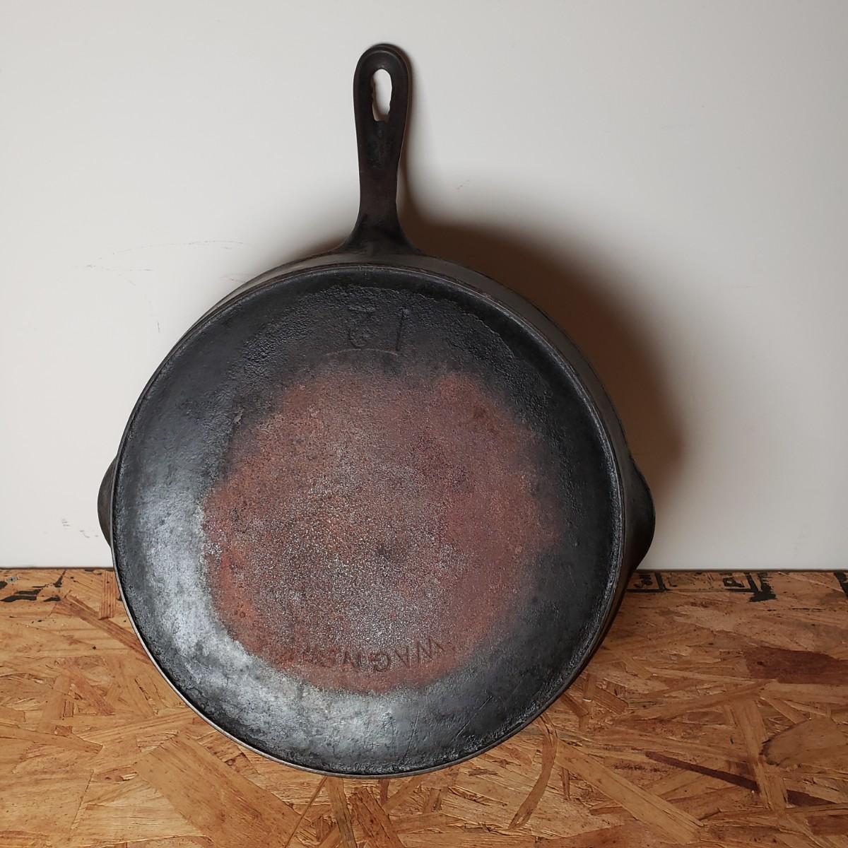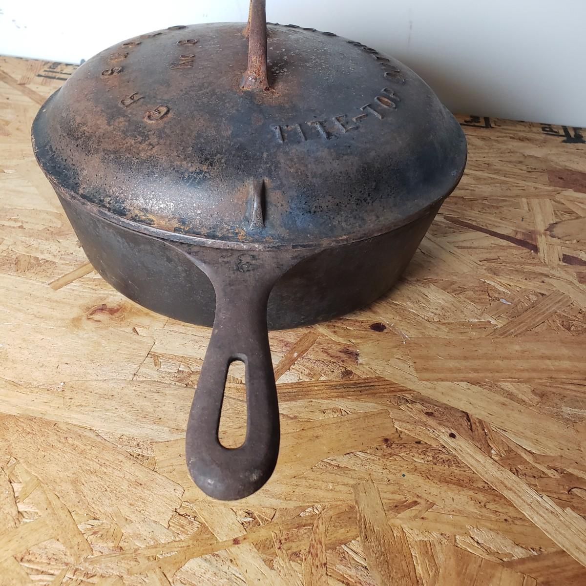 LOT 213: Vintage Griswold Chicken Fryer/Dutch Oven No 8 & Wagner Cast Iron Pans