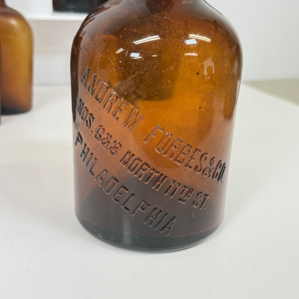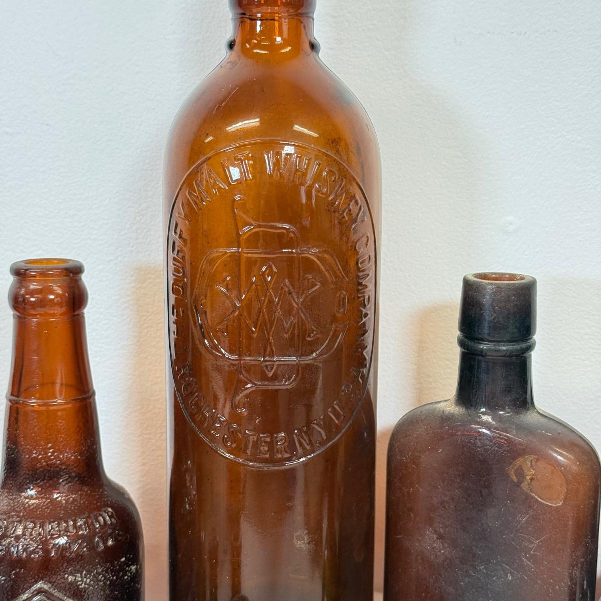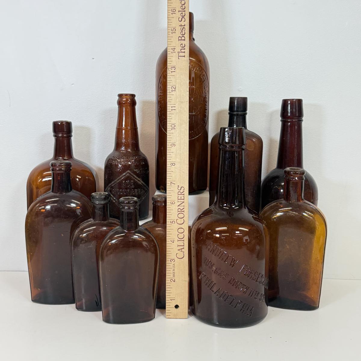 LOT 13: Vintage Brown Glass Bottles: Andrew Forbes & Co, Duff Malt Whiskey Co & More