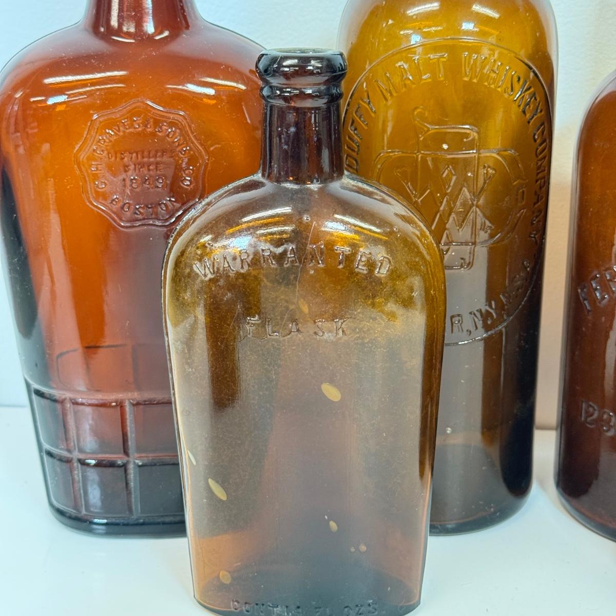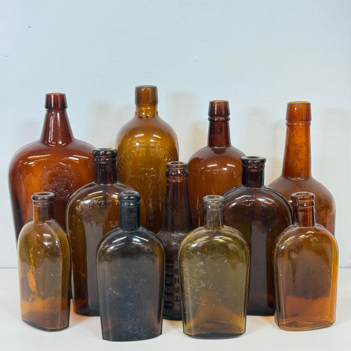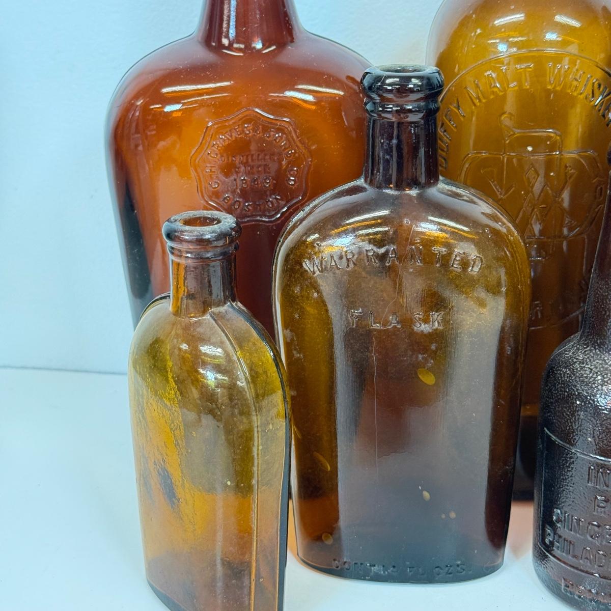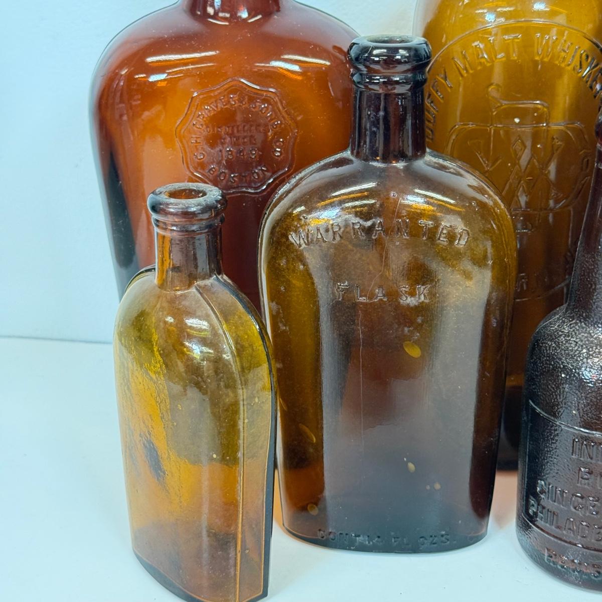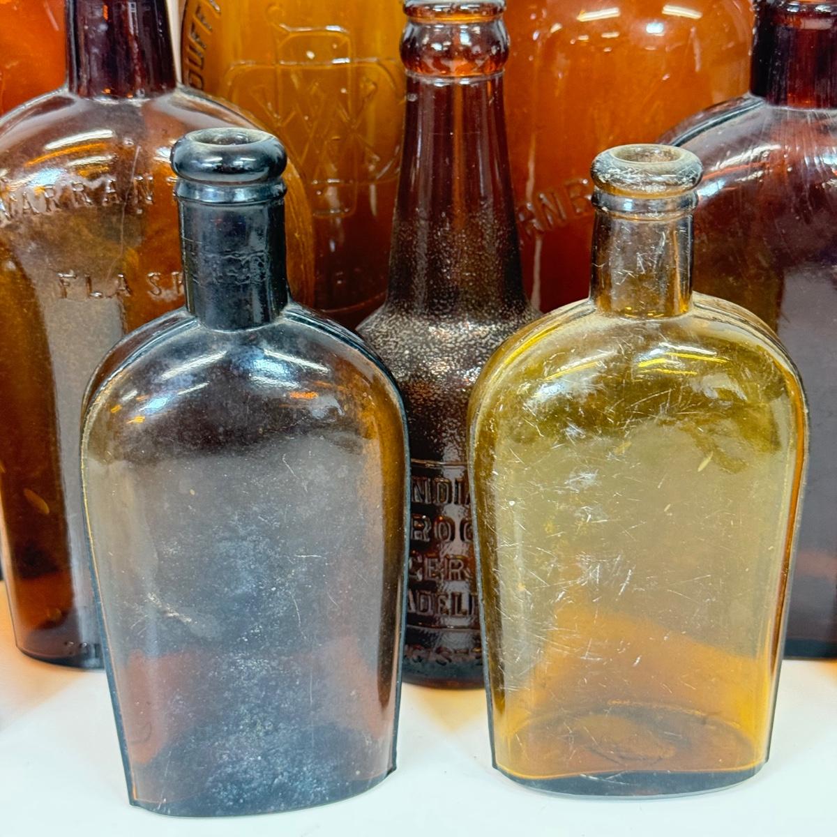 LOT 20: Vintage Brown Glass Flasks & Bottles