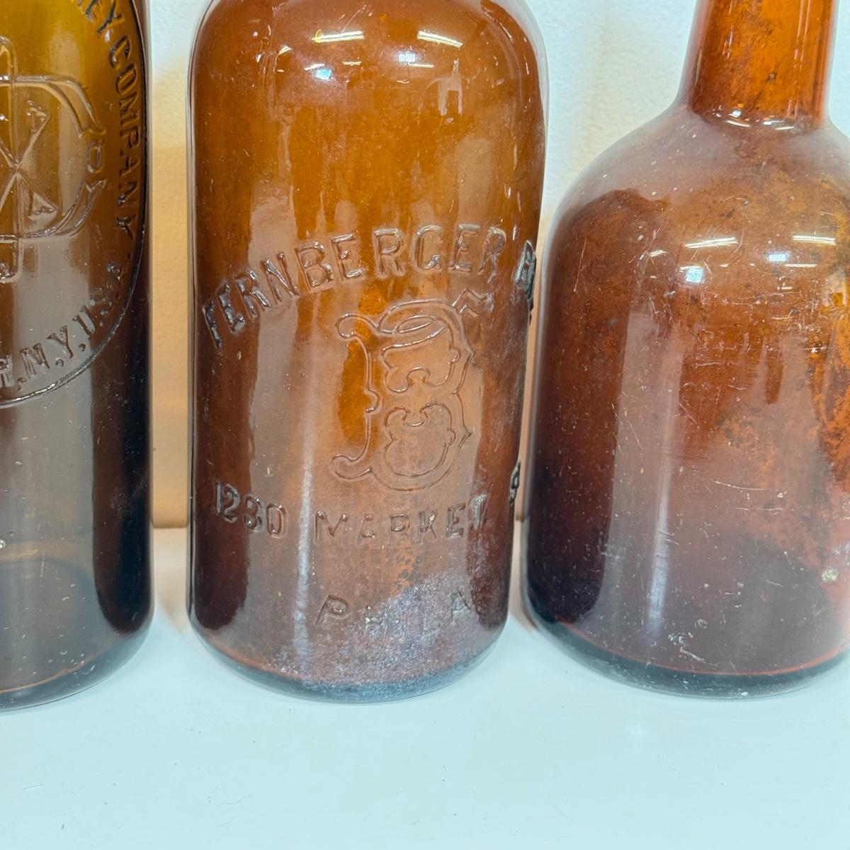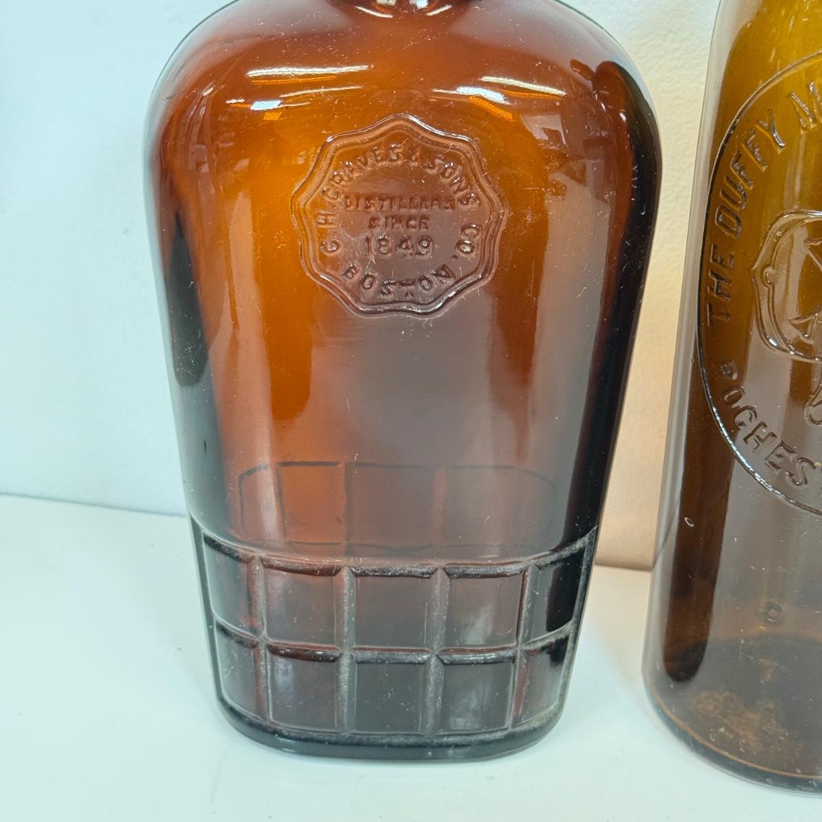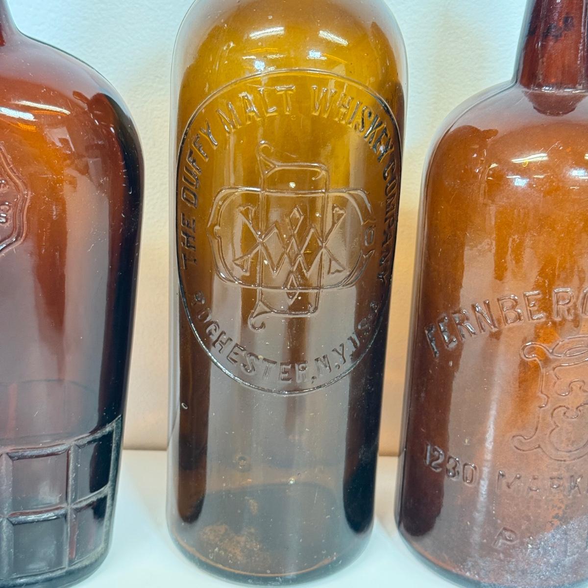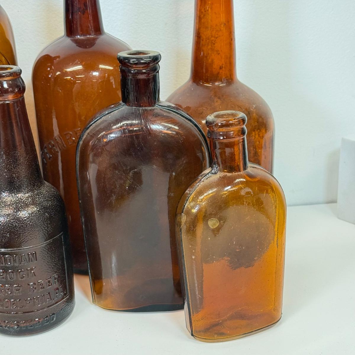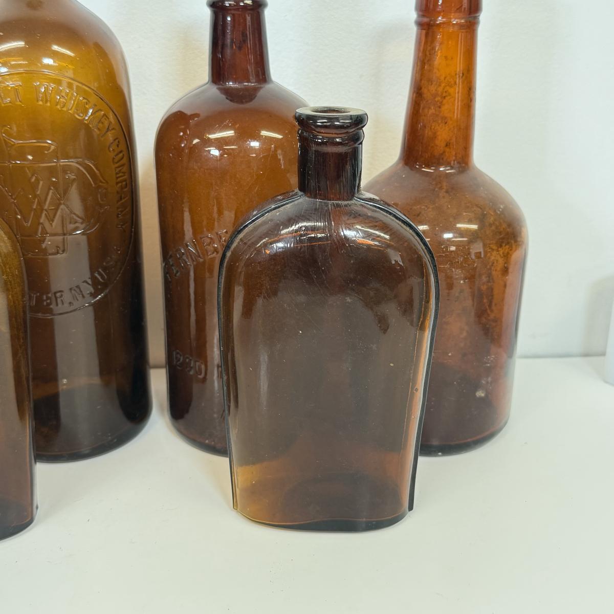 LOT 20: Vintage Brown Glass Flasks & Bottles
