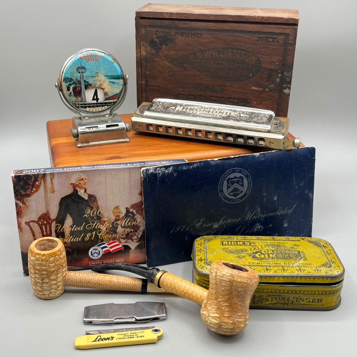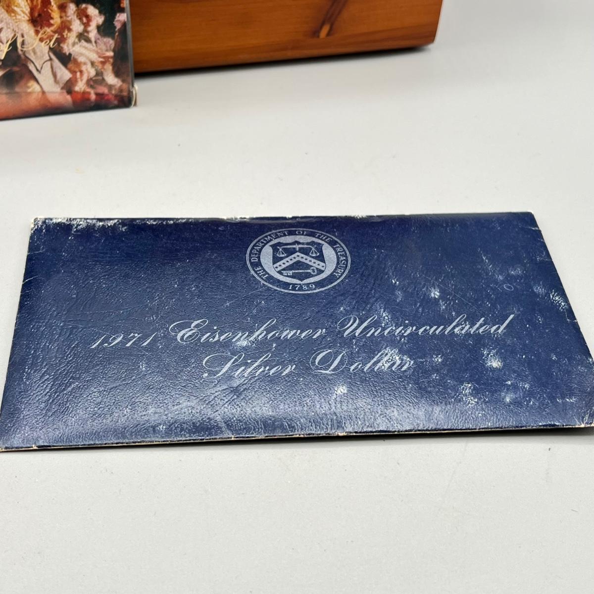 LOT 45: 40% Silver Eisenhower Dollar Proof + Vintage Trinkets and Boxes