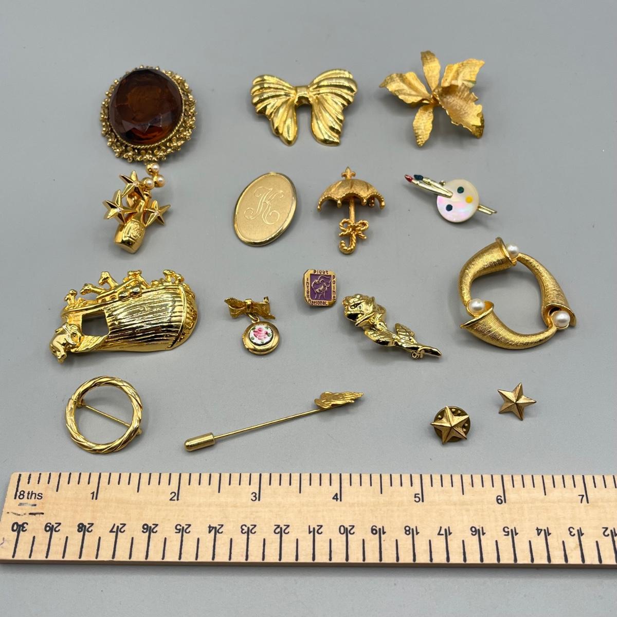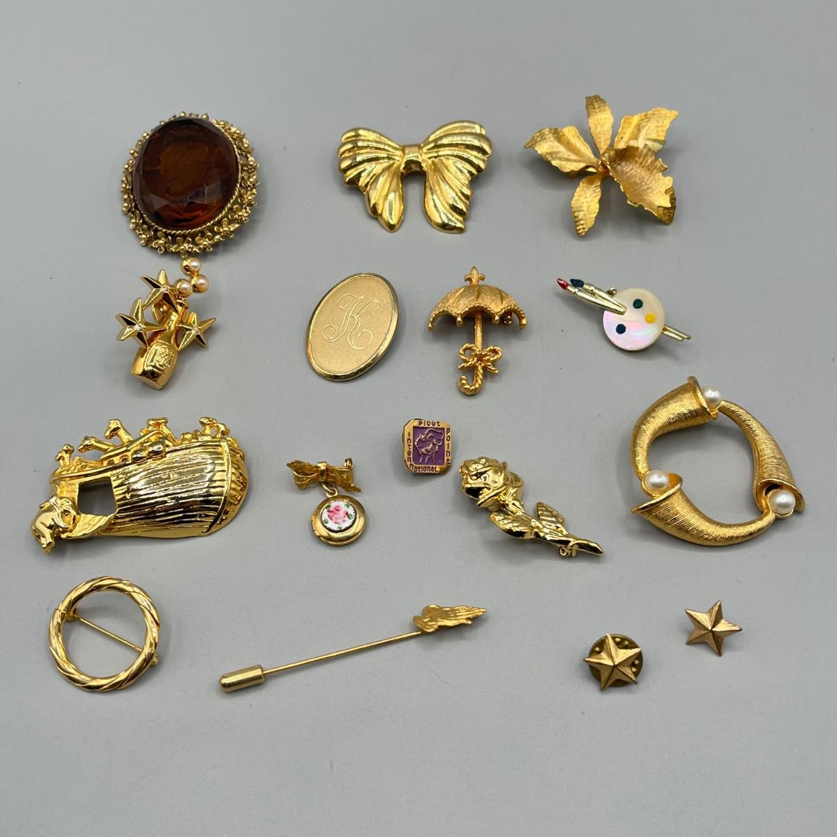 LOT 70: Vintage Gold Toned Pin/Brooch Collection