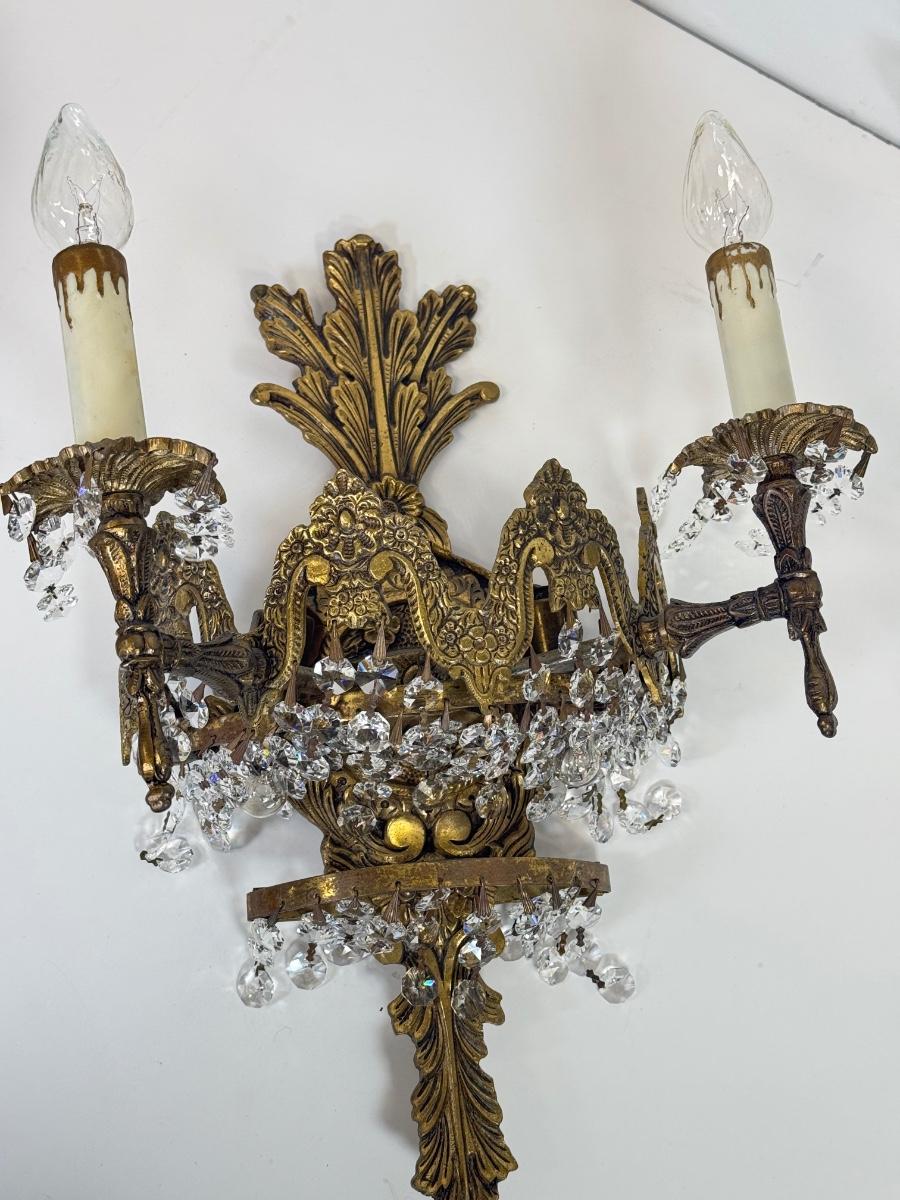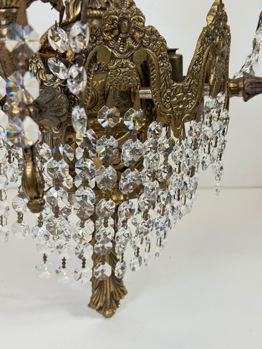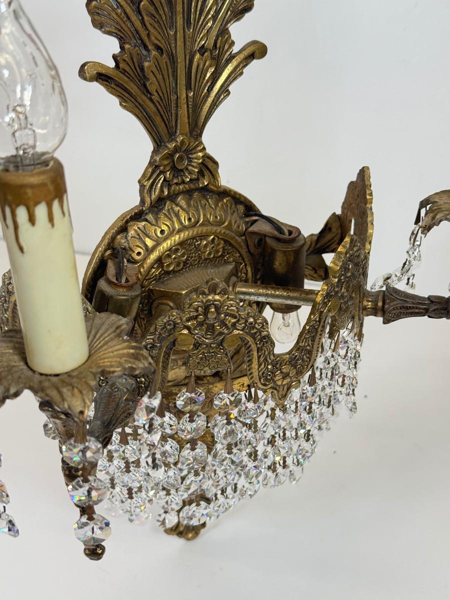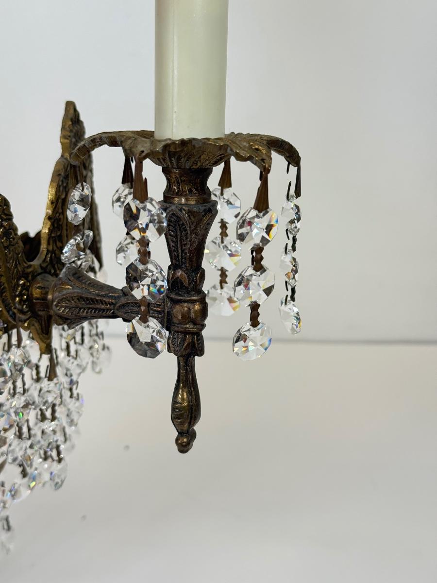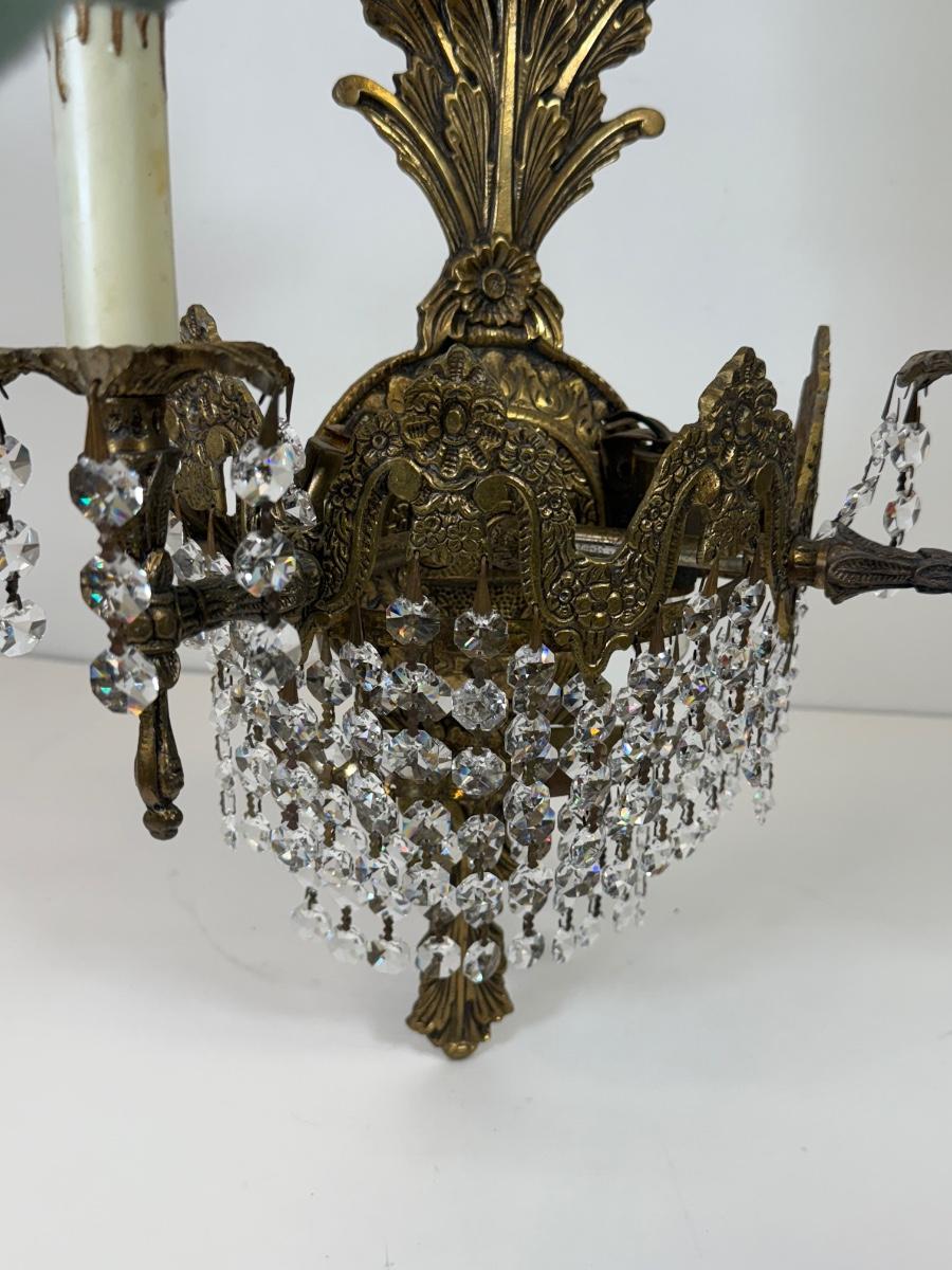 LOT:: Antique Brass & Crystal Wall Sconce 15”