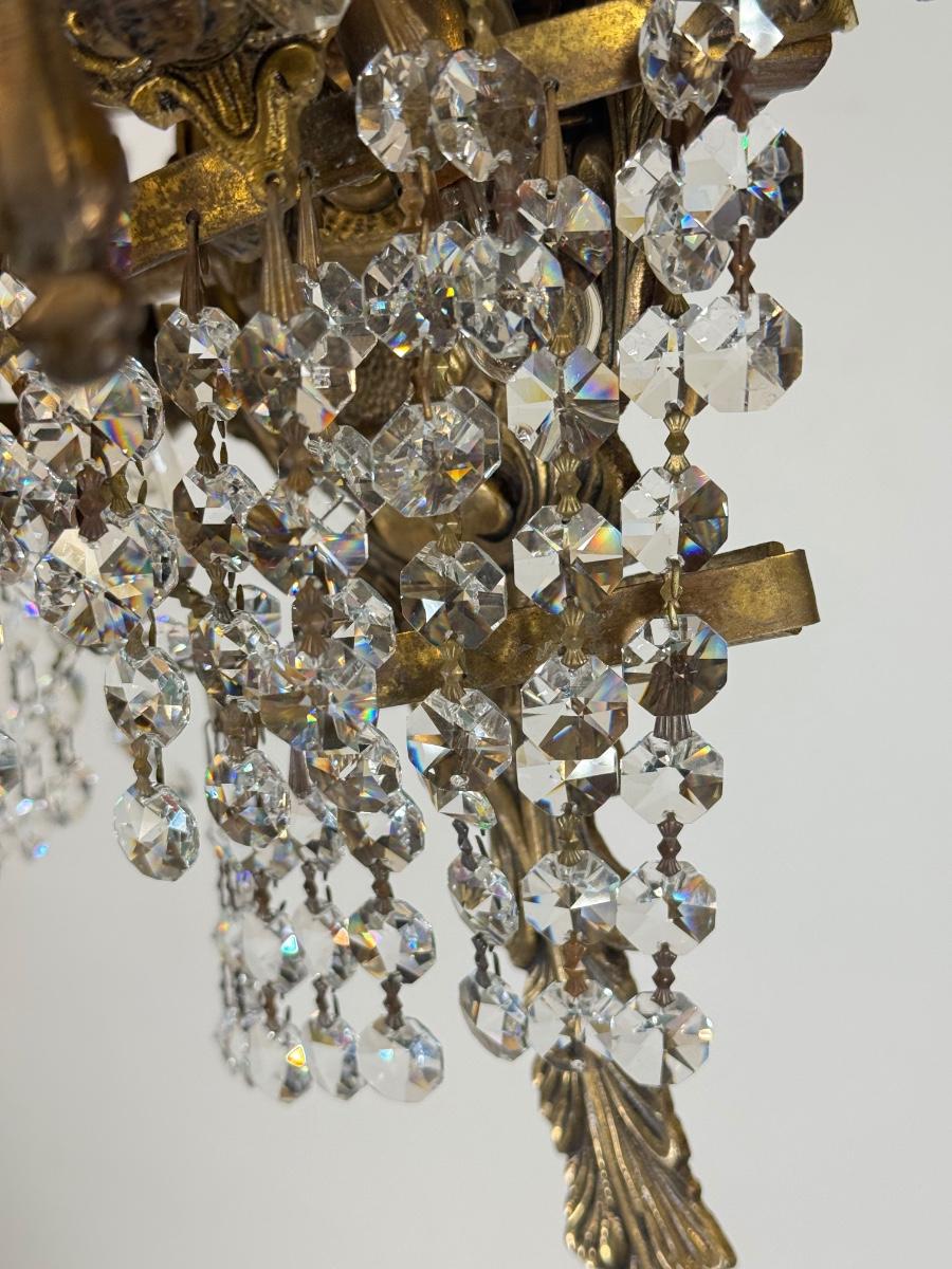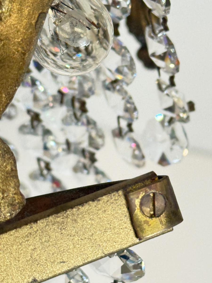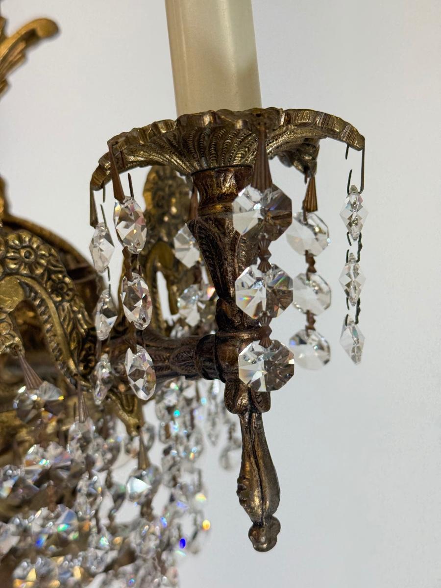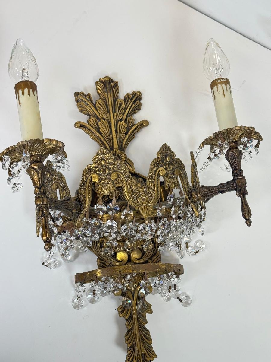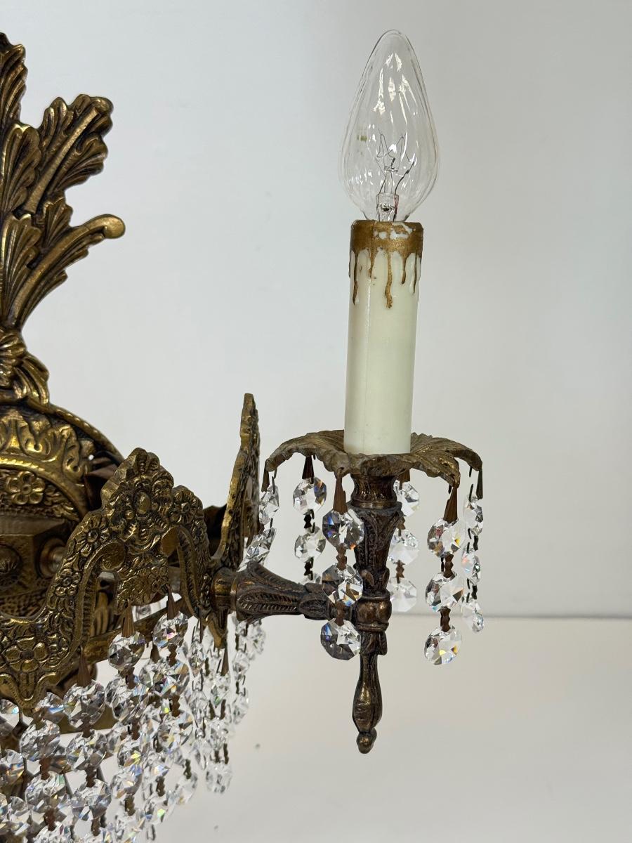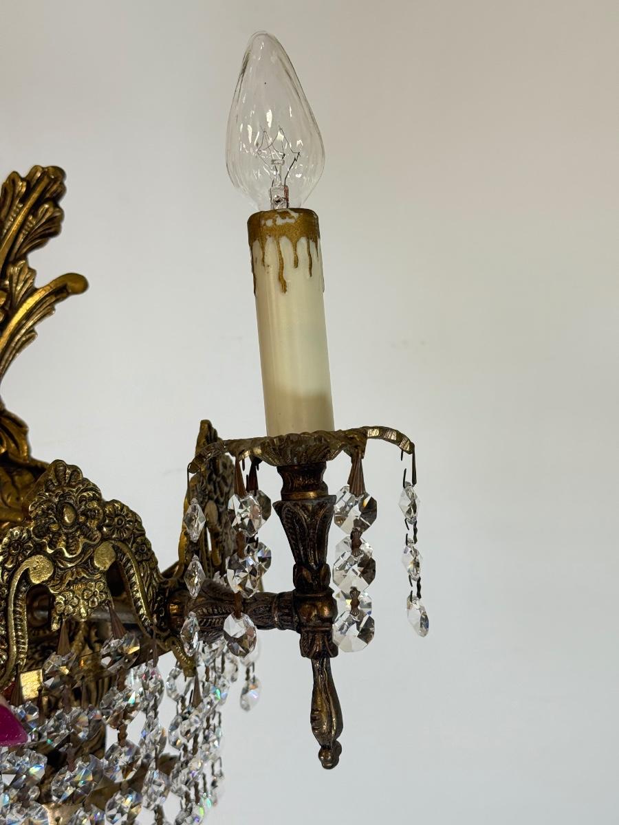 LOT:: Antique Brass & Crystal Wall Sconce 15”