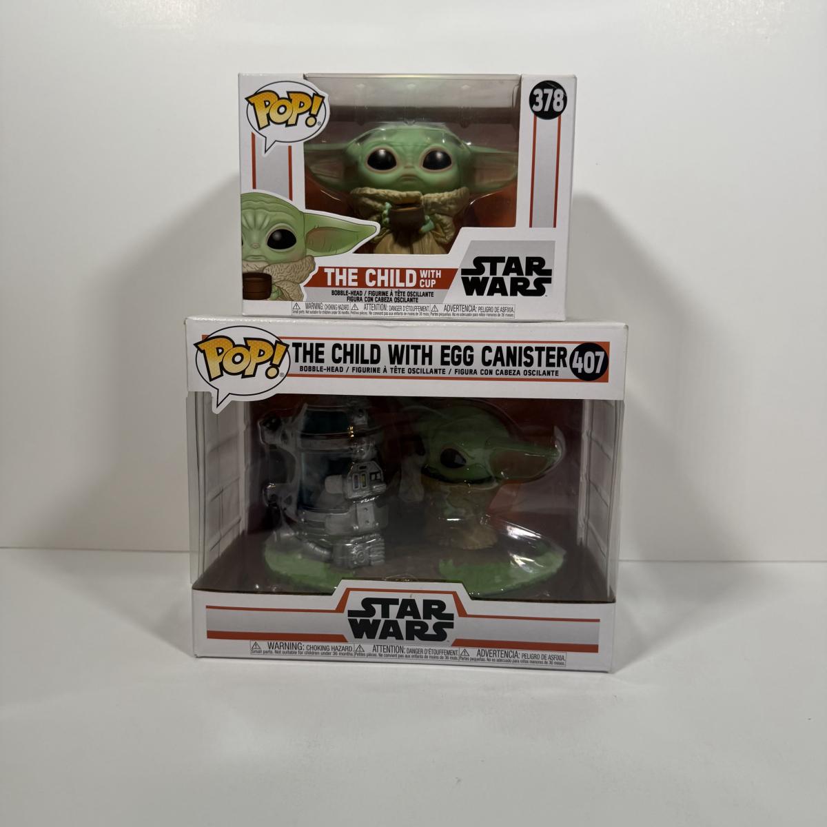 LOT 178: Two Star Wars Funko Pops: The Child with Egg Canister (407) & The Child with Cup (378)