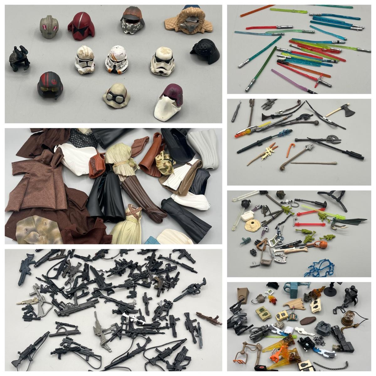 LOT 214: Star Wars Accessory Collection - 1990s Figures - Guns, Light Sabers, Clothes, Wepons and More