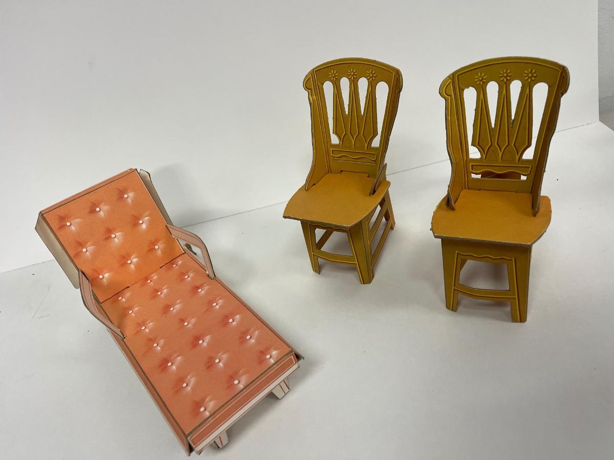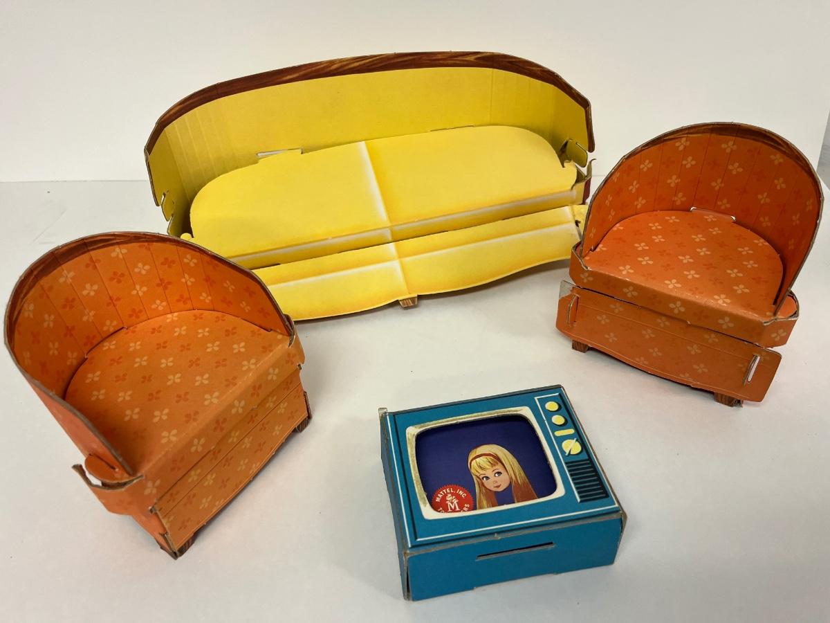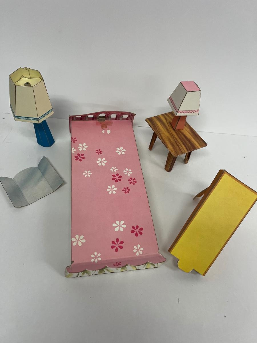 LOT 3: Vintage Barbie Dreamhose - 1960s Folding Cardboard Playset Pieces w/ Furniture