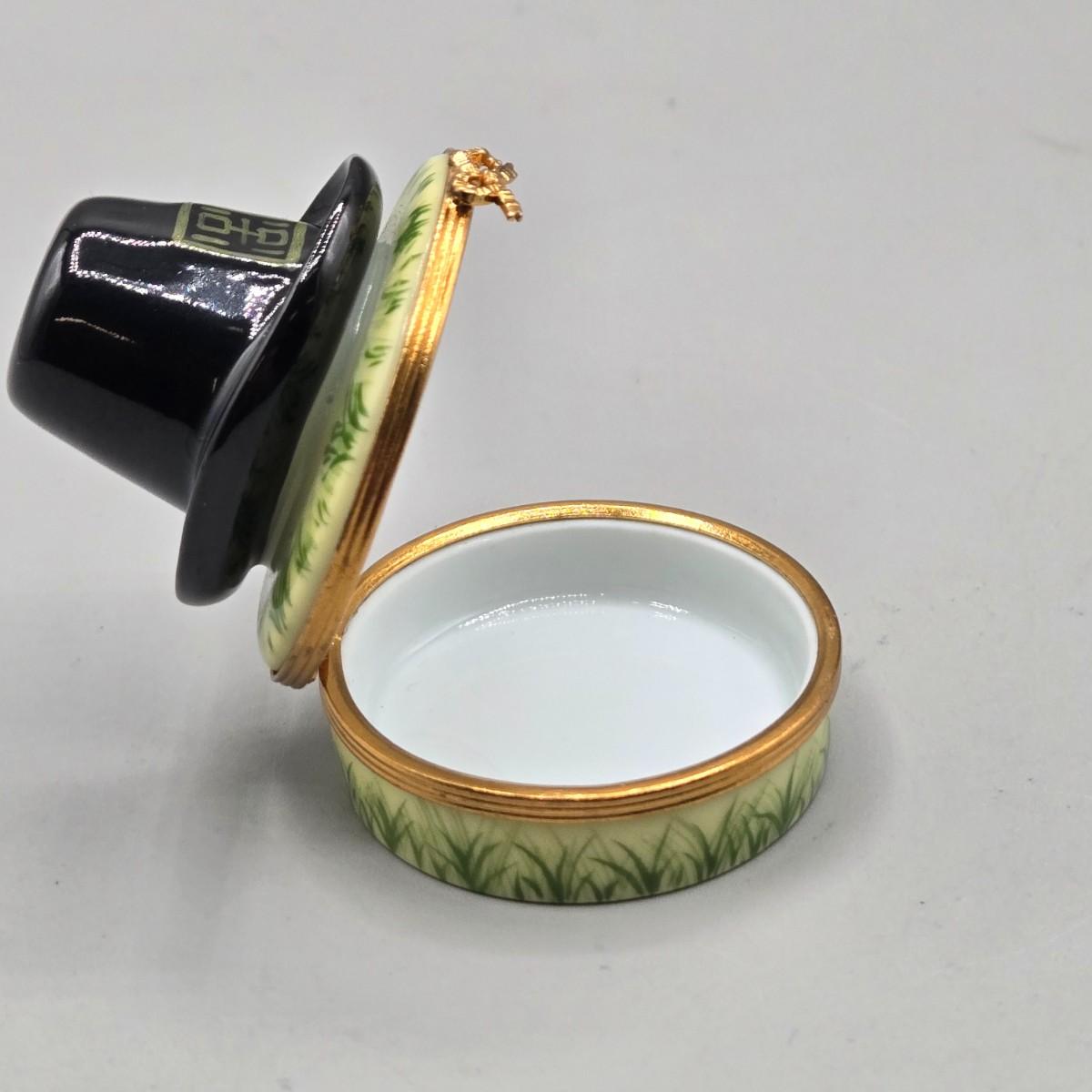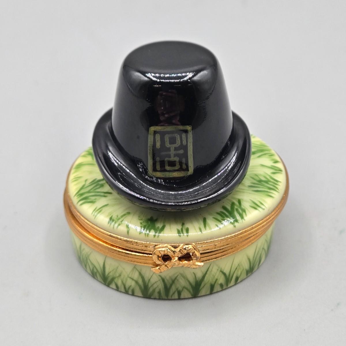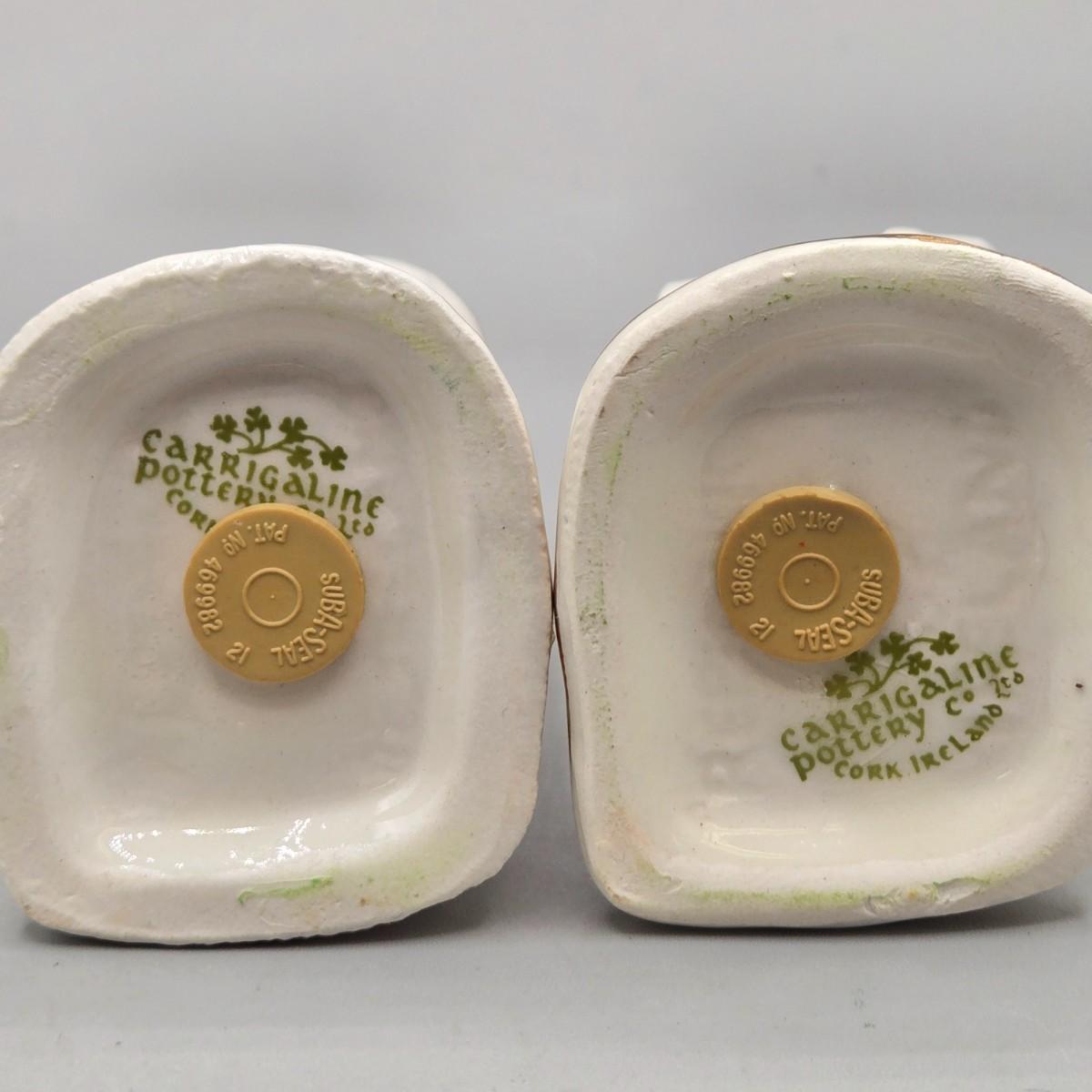 LOT 44: Vintage Carrigaline Pottery Irleand Shamrock Castle Salt & Pepper Shaker Set and Egg Holder, 2 Shamrock Green Clover Cafe Espresso Cups, and Pilgrim Hat Thanksgiving Limoges France Trinket Box