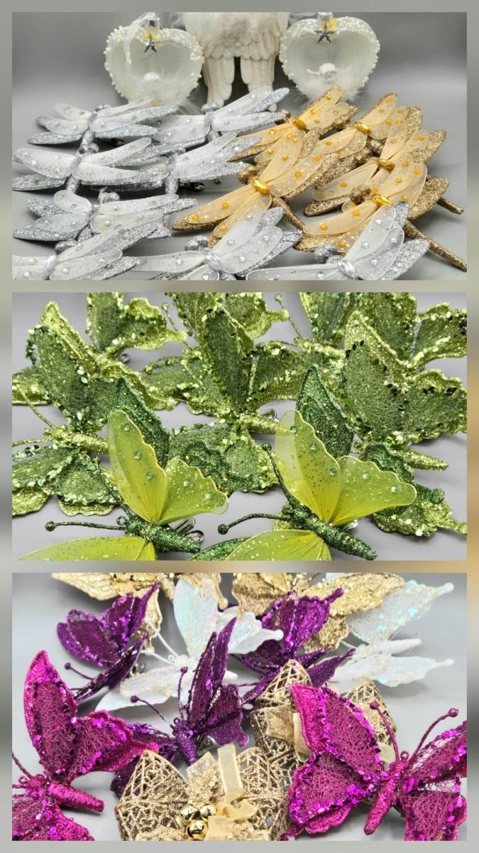 LOT 54: New- Various Dragonfly and Butterfly Clip-on Ornaments and More