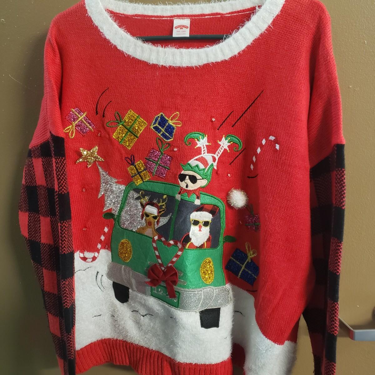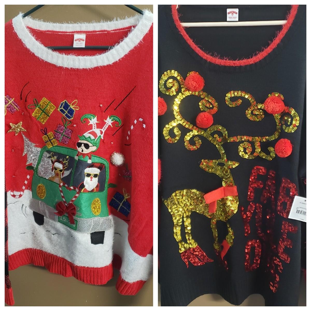 LOT 75: Christmas Sweaters with Sassy Reindeer & Santa Delivering Gifts- Plus size