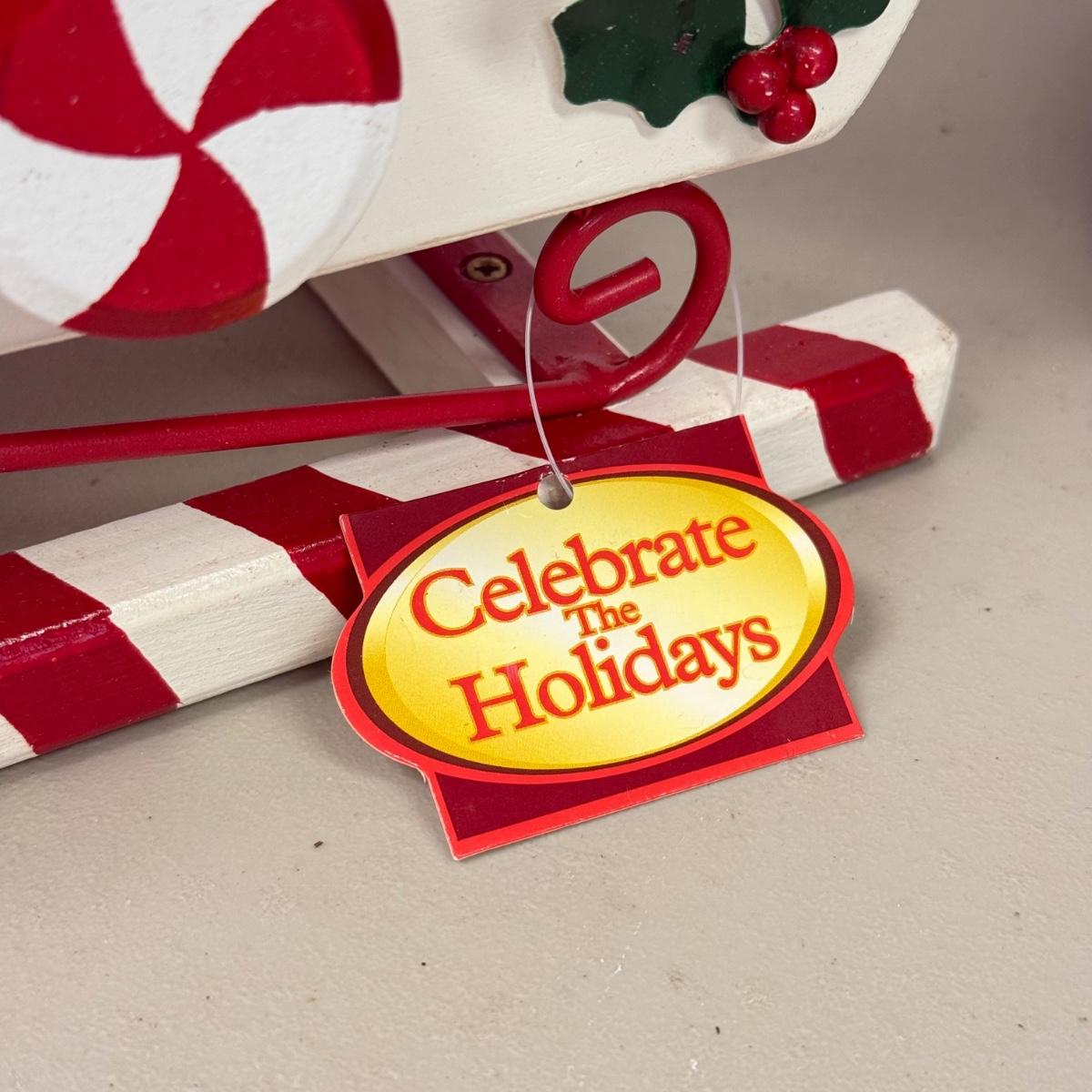 LOT 84: Vintage Ceramic Winking Santa & Small Candy Cane Sleigh