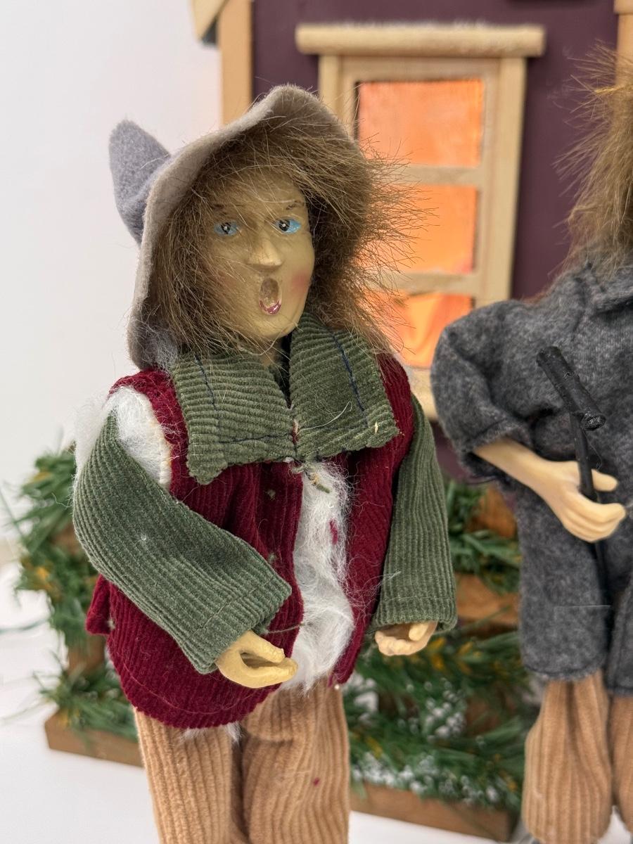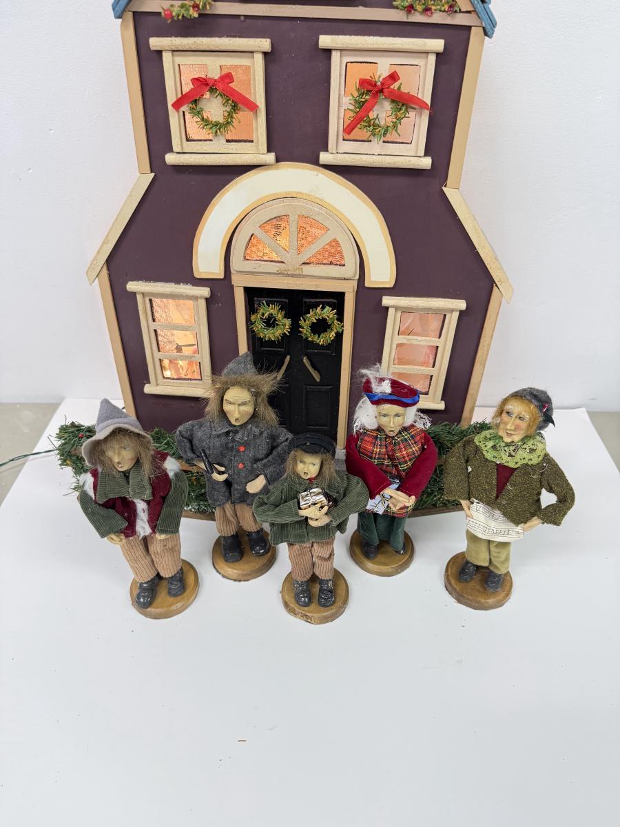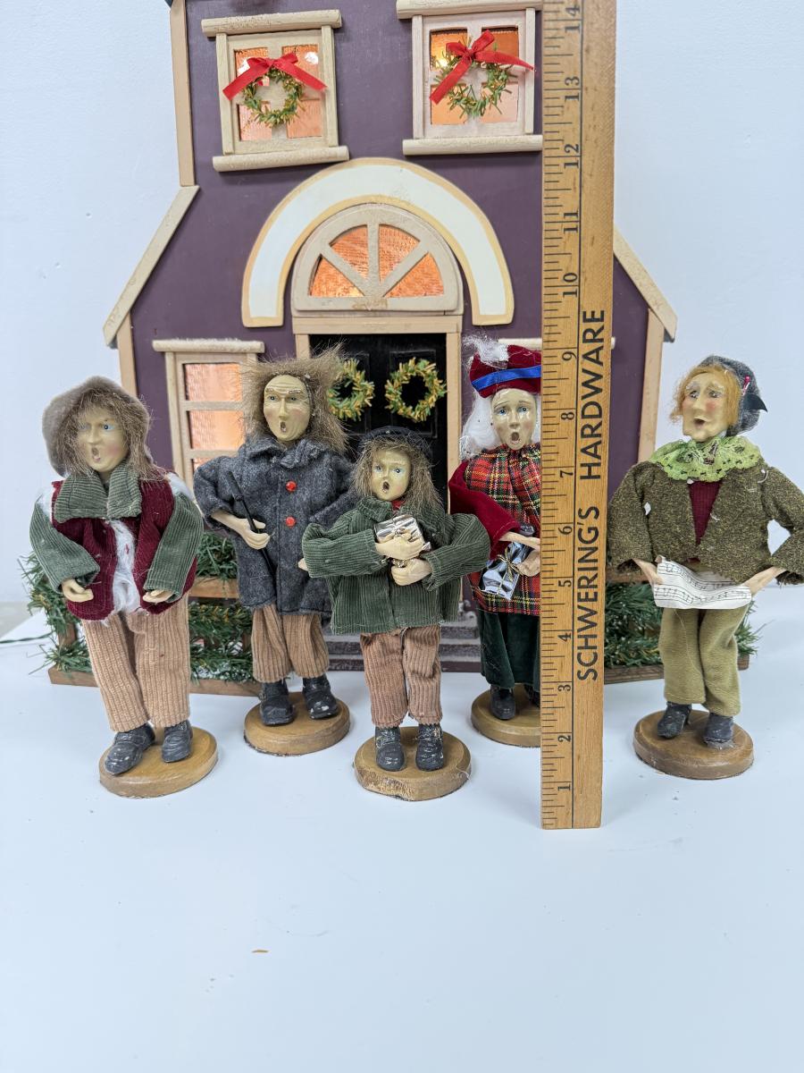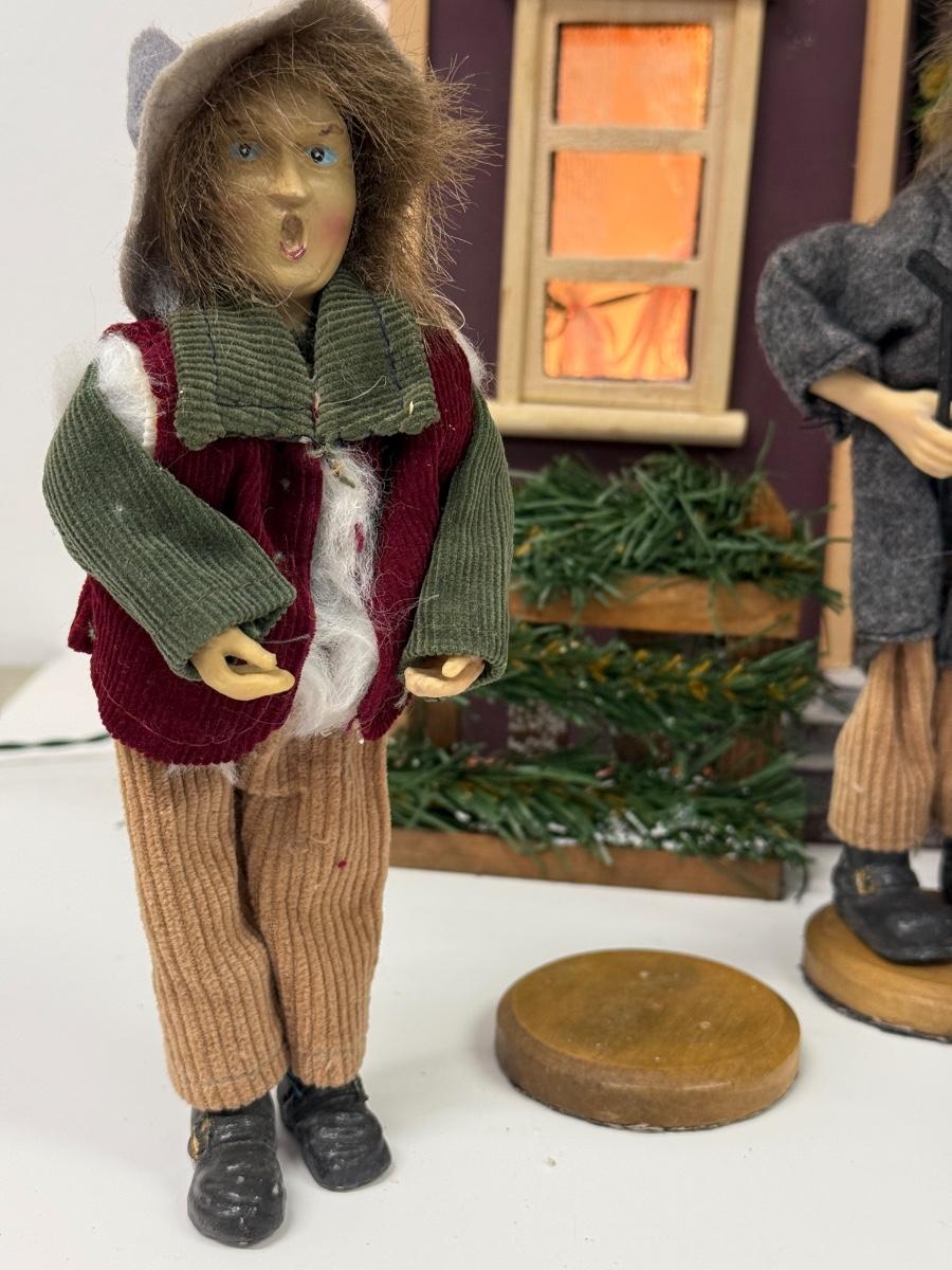 LOT 92: Vintage Handmade Carolers w/ Wood Lit Housefront