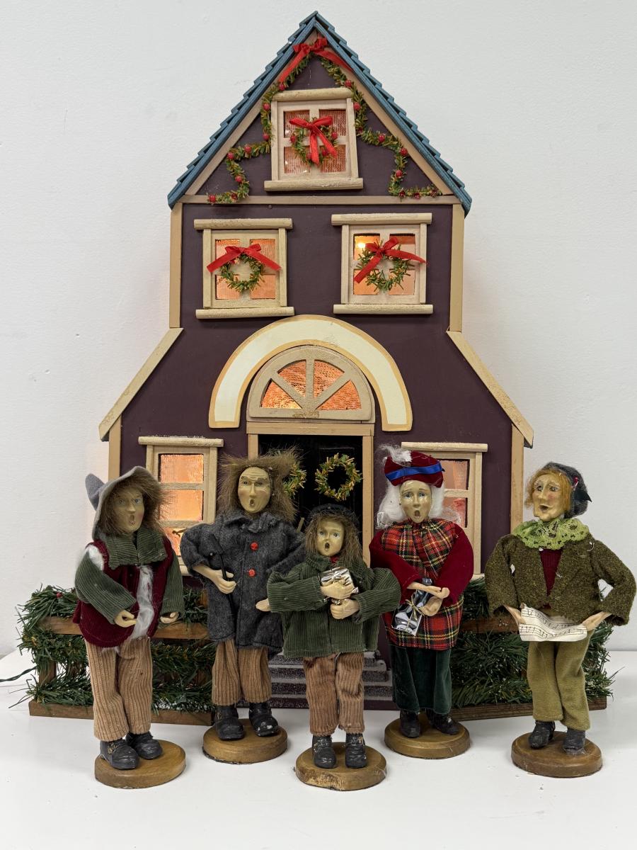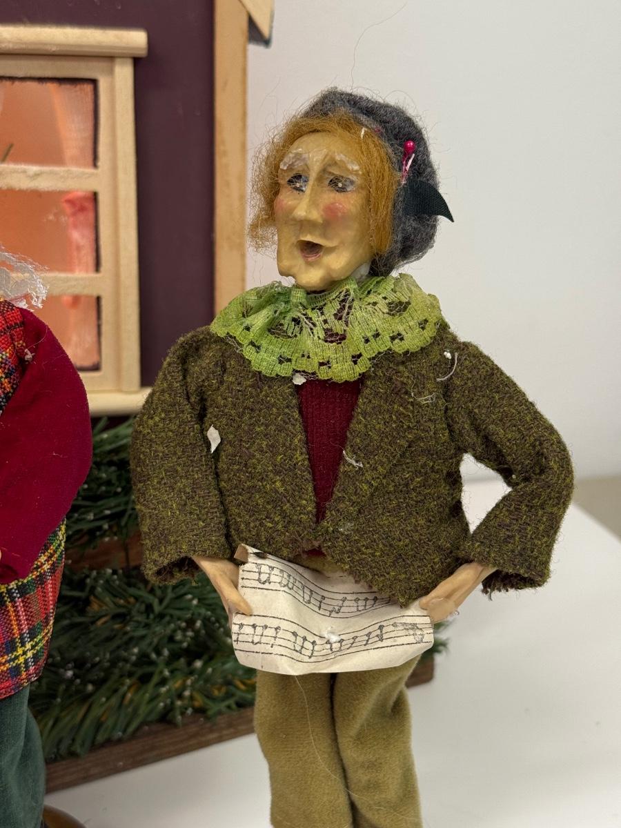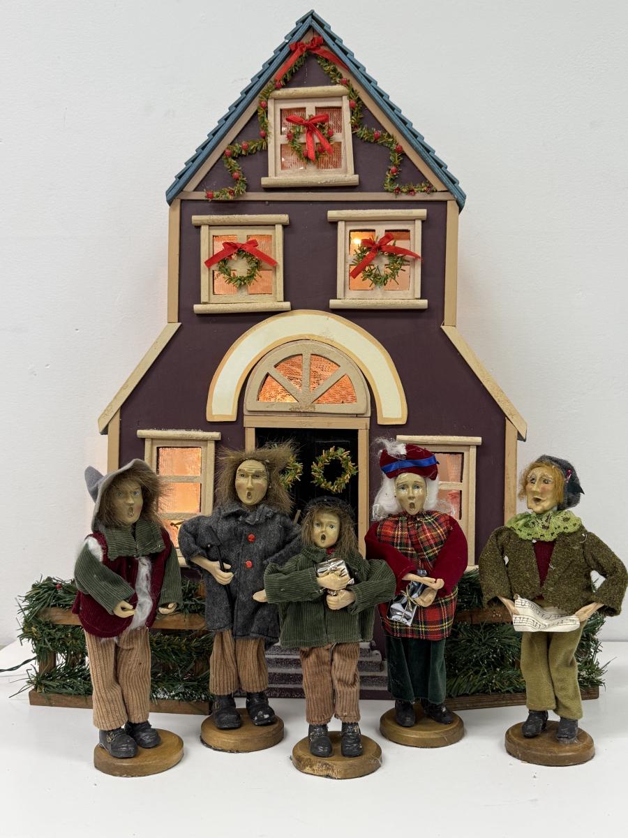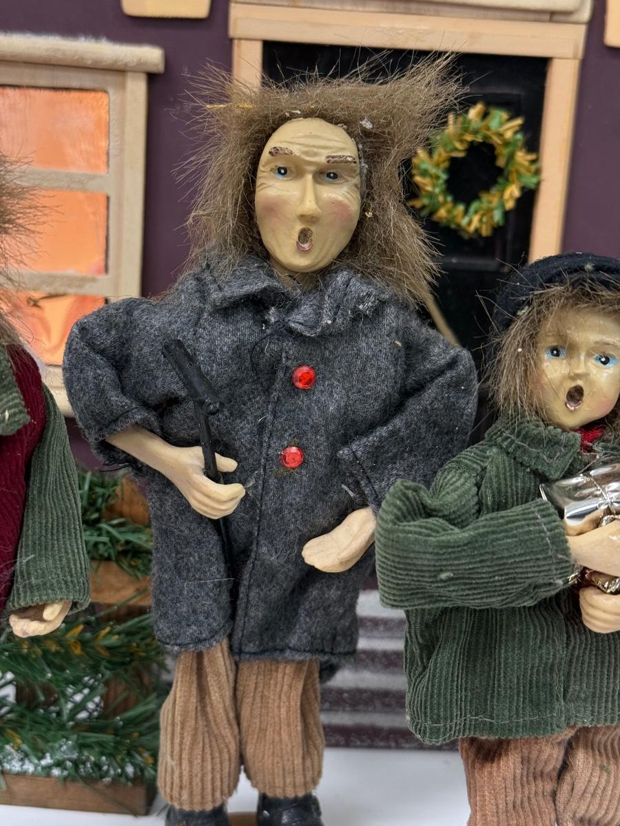 LOT 92: Vintage Handmade Carolers w/ Wood Lit Housefront