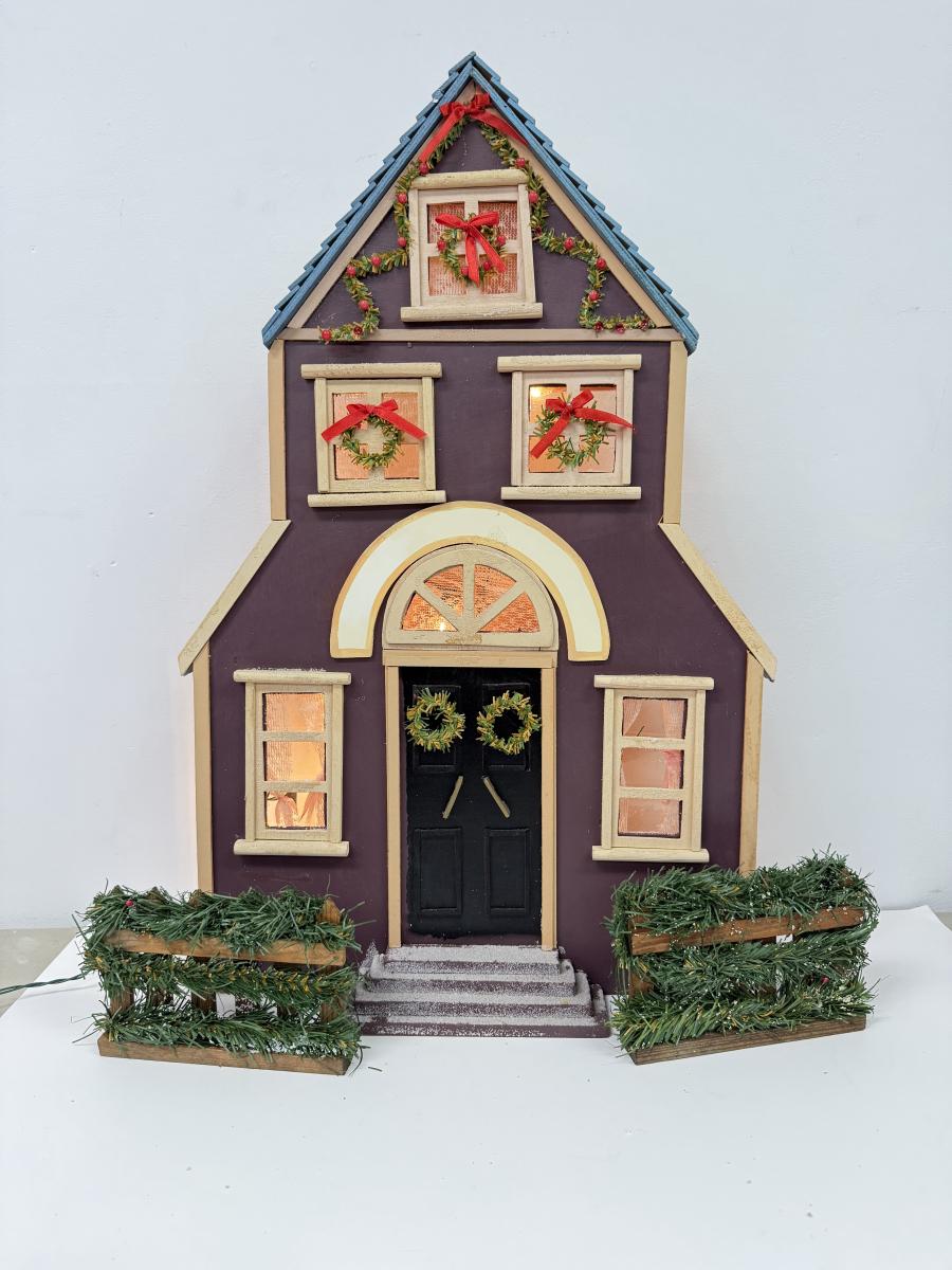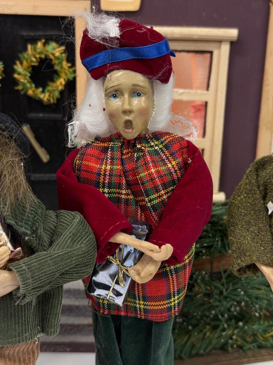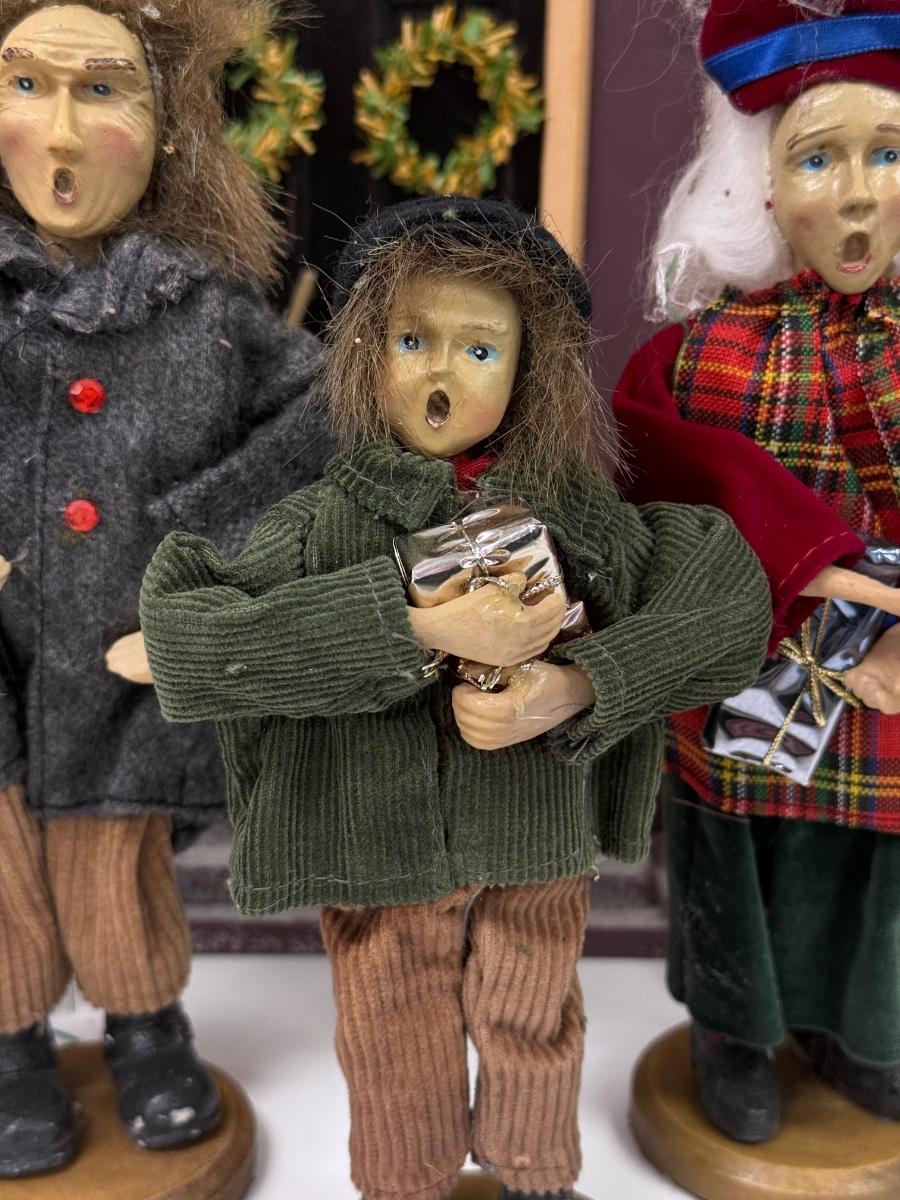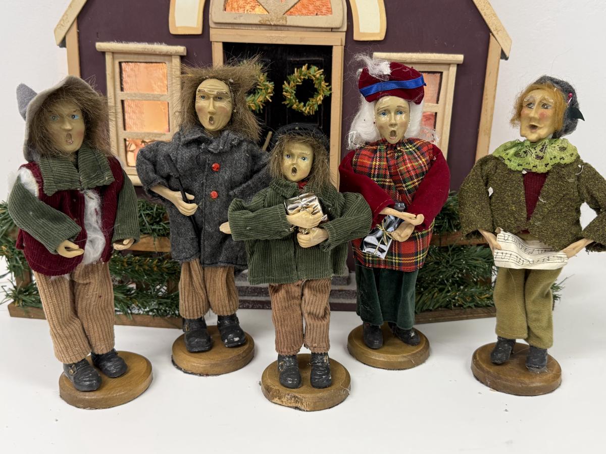LOT 92: Vintage Handmade Carolers w/ Wood Lit Housefront