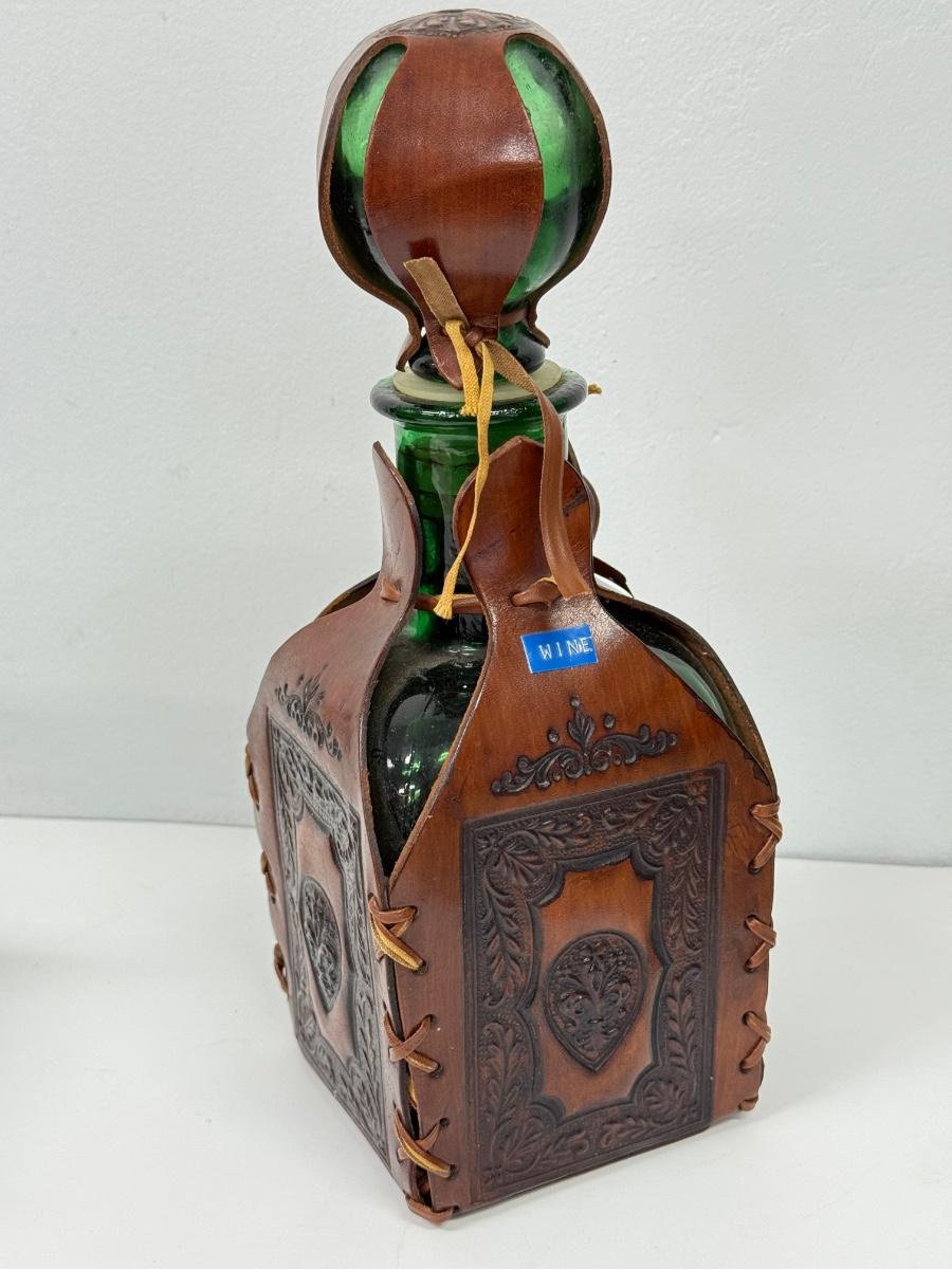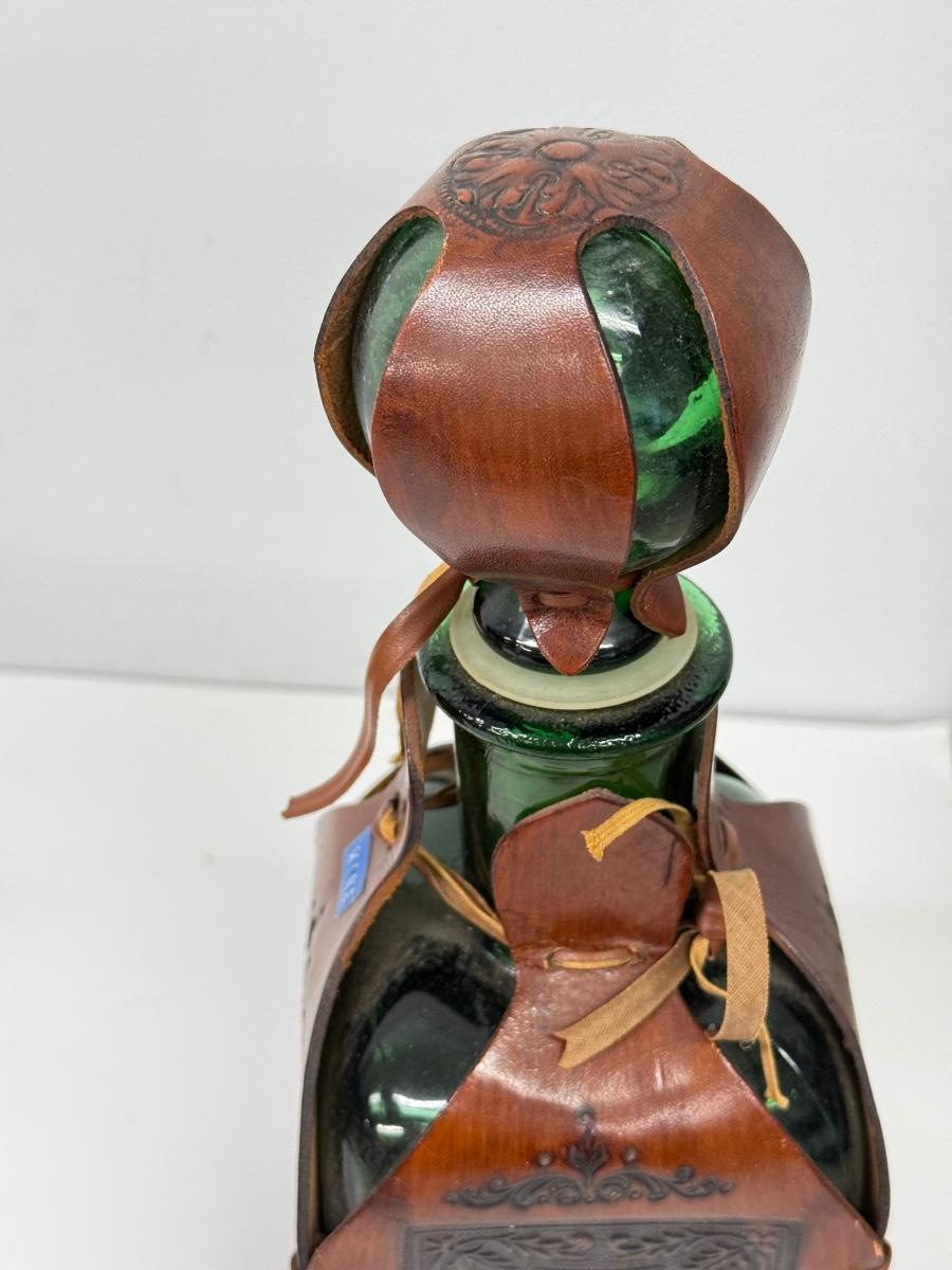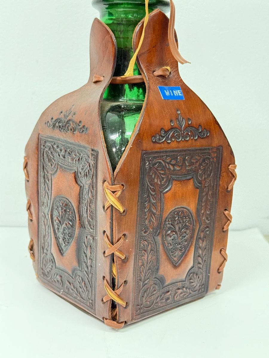LOT 94: Vintage Coley Wood Products Coffee Mill & Leather Wrapped Bottle