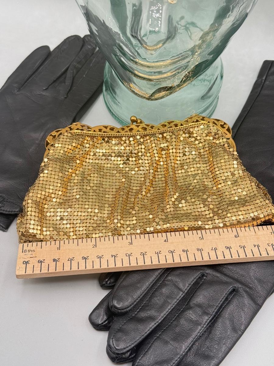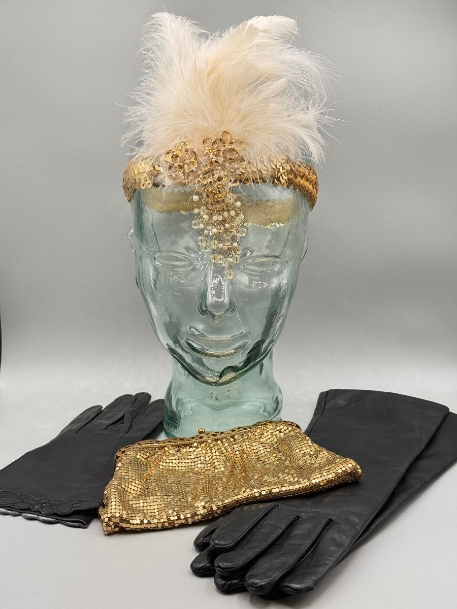 LOT 106: Goldtone Whiting & Davis Mesh Bag, 1920s style Headband & Ladies Gloves