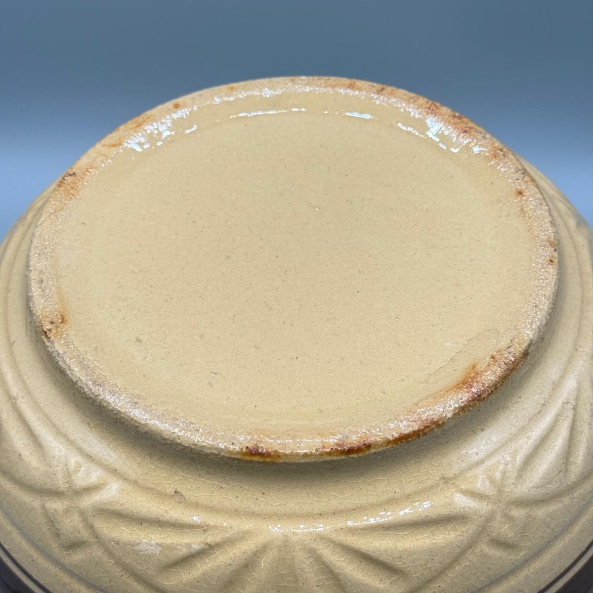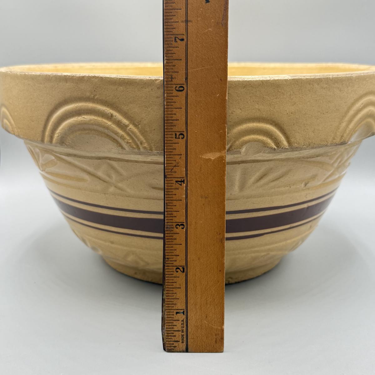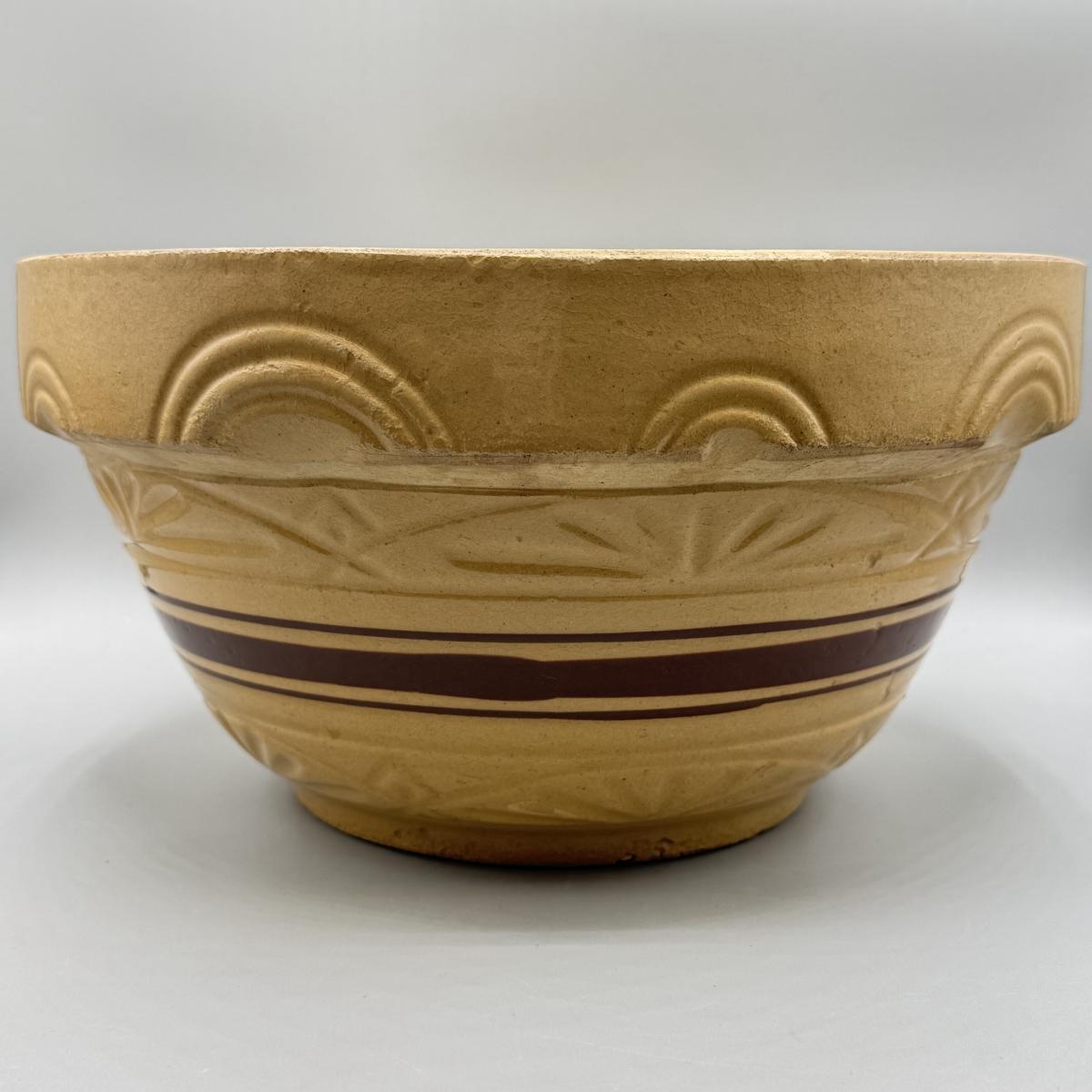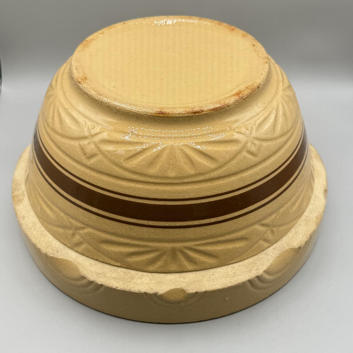 LOT 116: Antique Large Primative Yellowware Brown Band Pottery Mixing Bowl