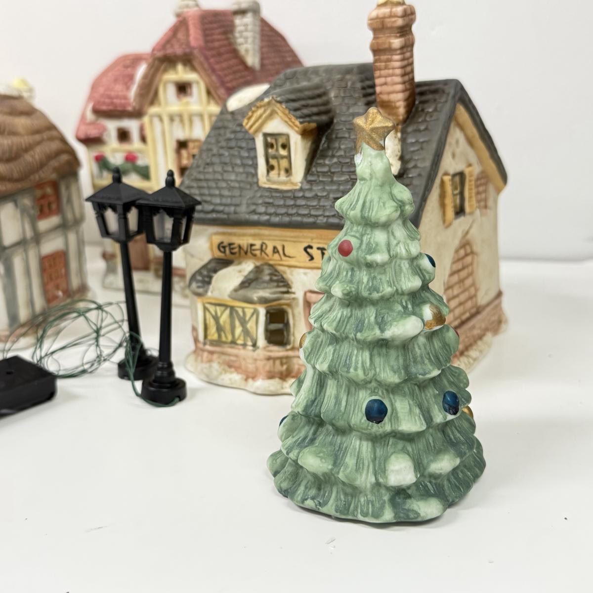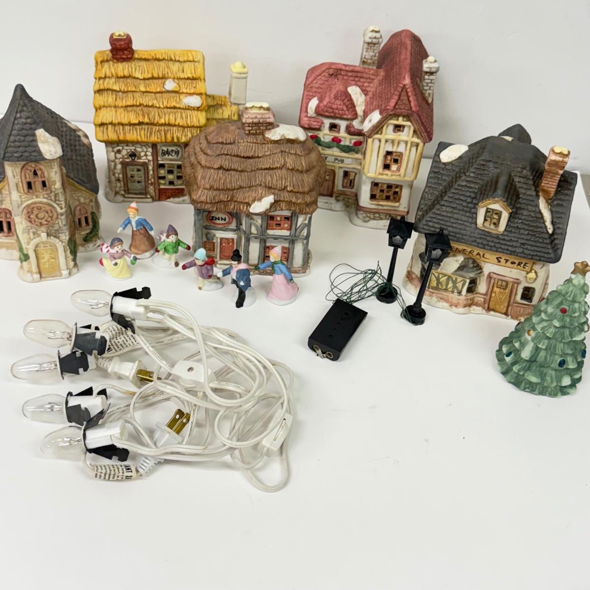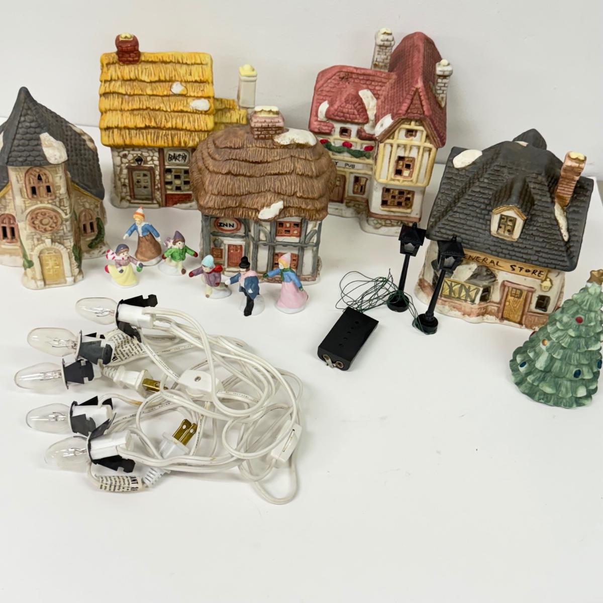LOT 129: Ceramic Christmas Village Houses w/ Light Cords