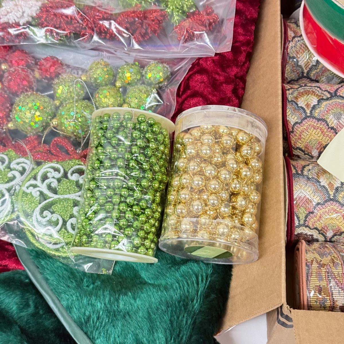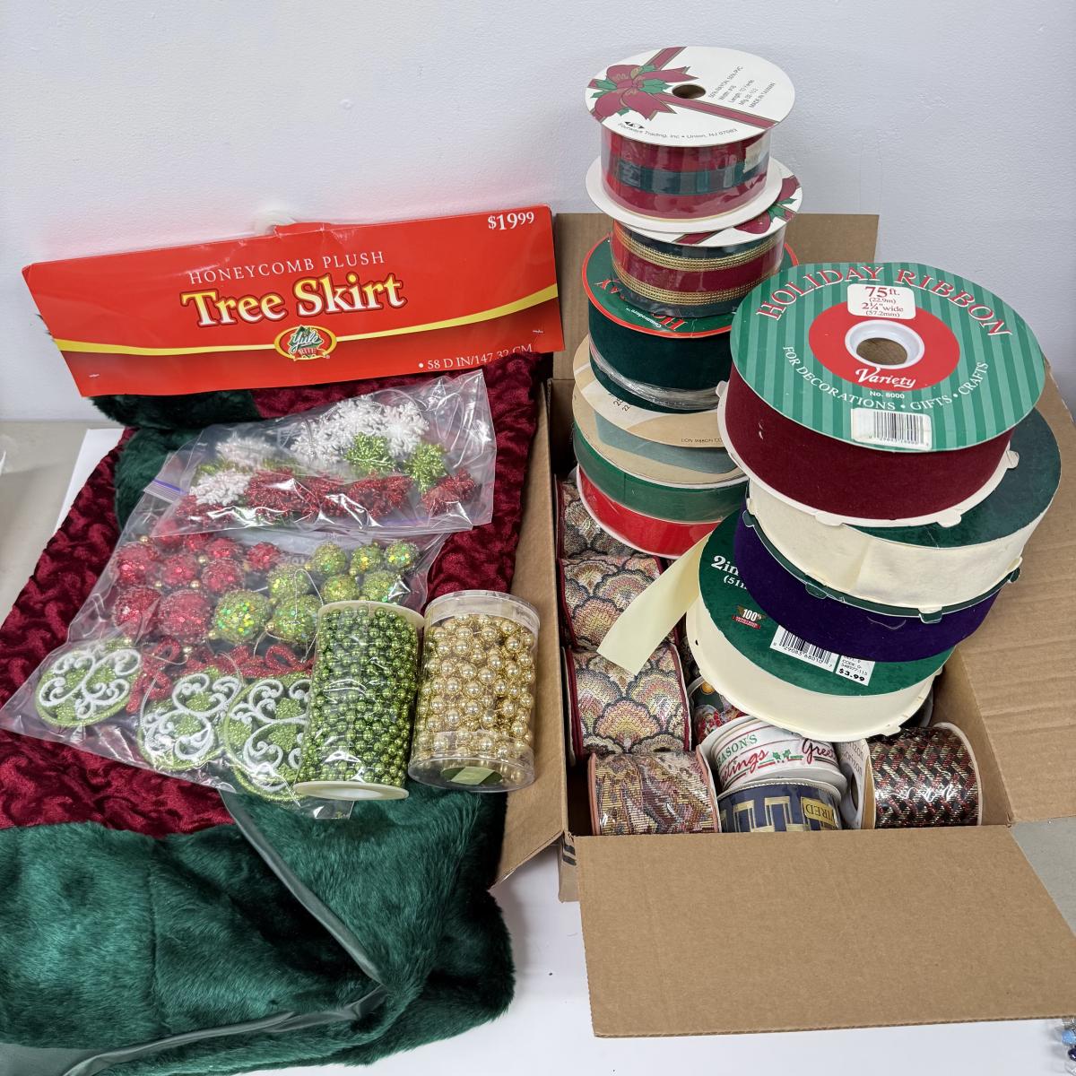 LOT 131: NWT Tree Skirt & Collection of Ribbon