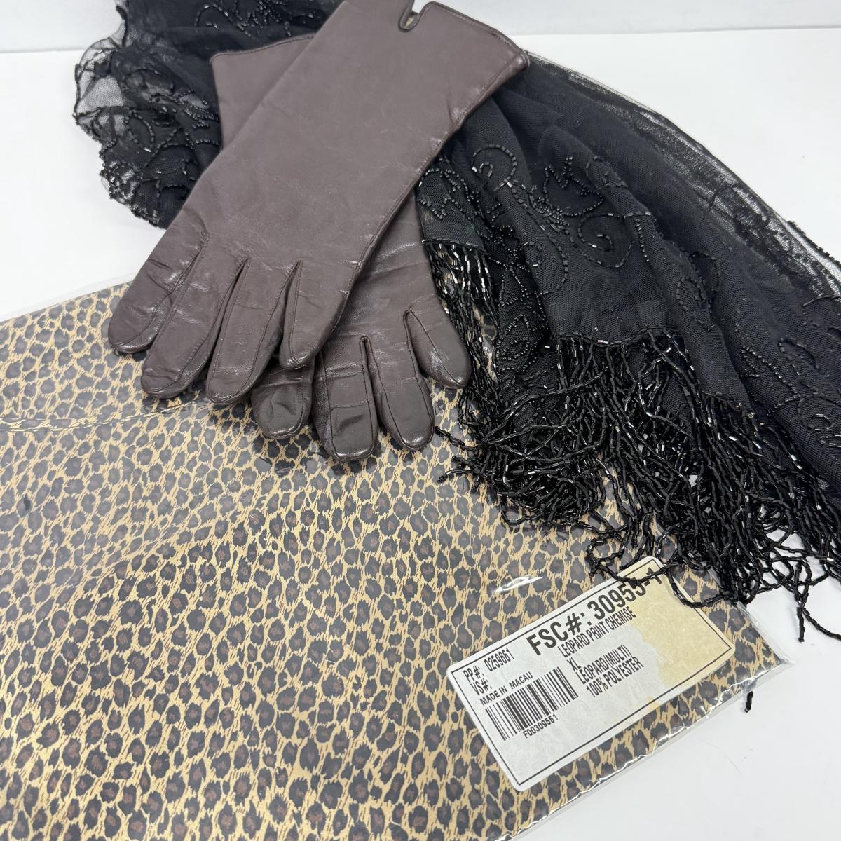 LOT 134: Size 8 Fur Lined Gloves, Leopard Chemise & Beaded Shawl