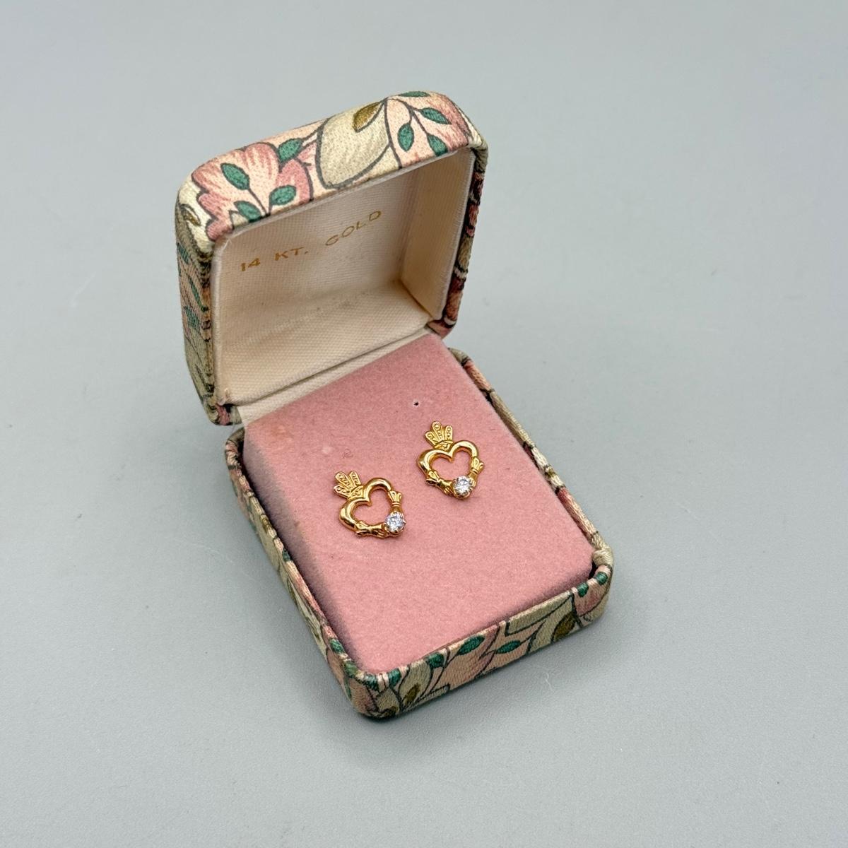 LOT 156: 14kt & CZ Heart Earrings (0.5gtw)