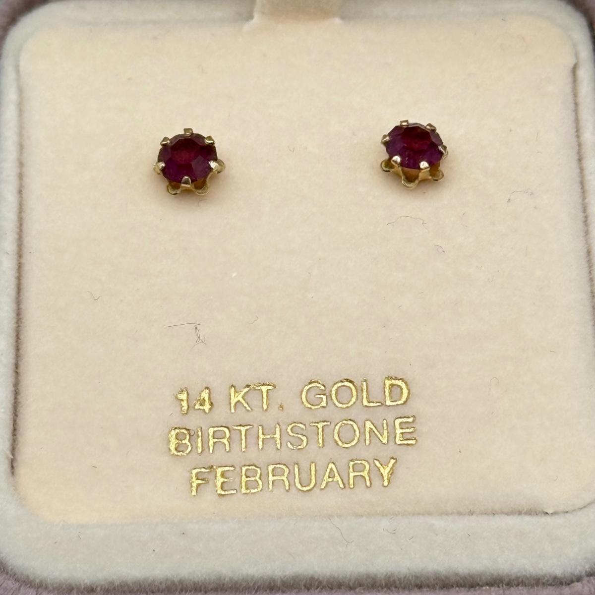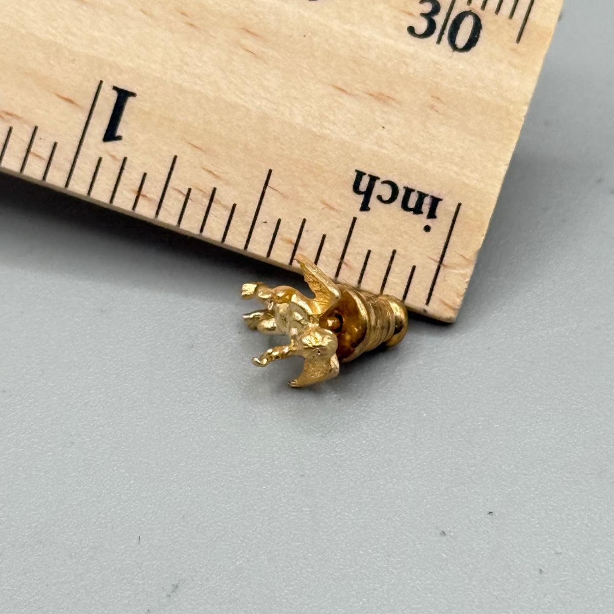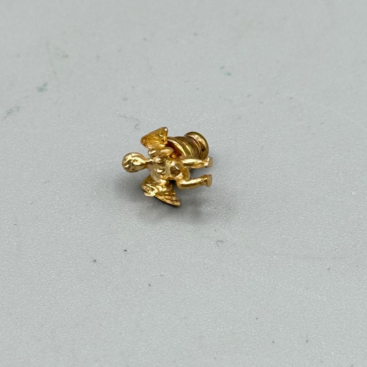 LOT 160: 14kt Gold: Garnet Earrings (0.4g) & Guardian Angel Pin (0.8g)