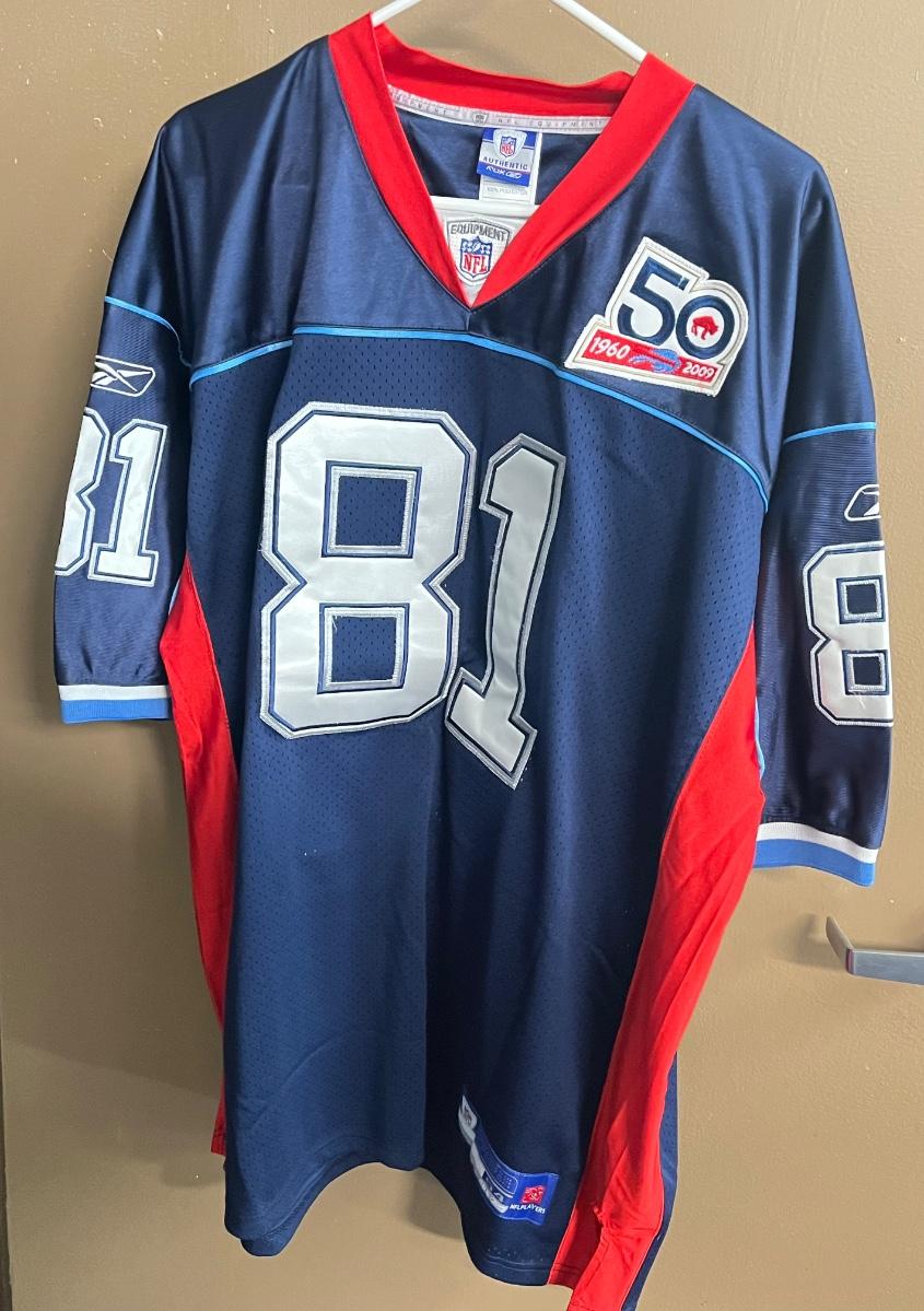 LOT 164: Reebok NFL Equipment Terrell Owens Size 54 Football Jersey - Buffalo Bills 50th Anniversary