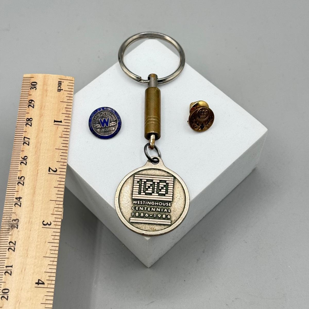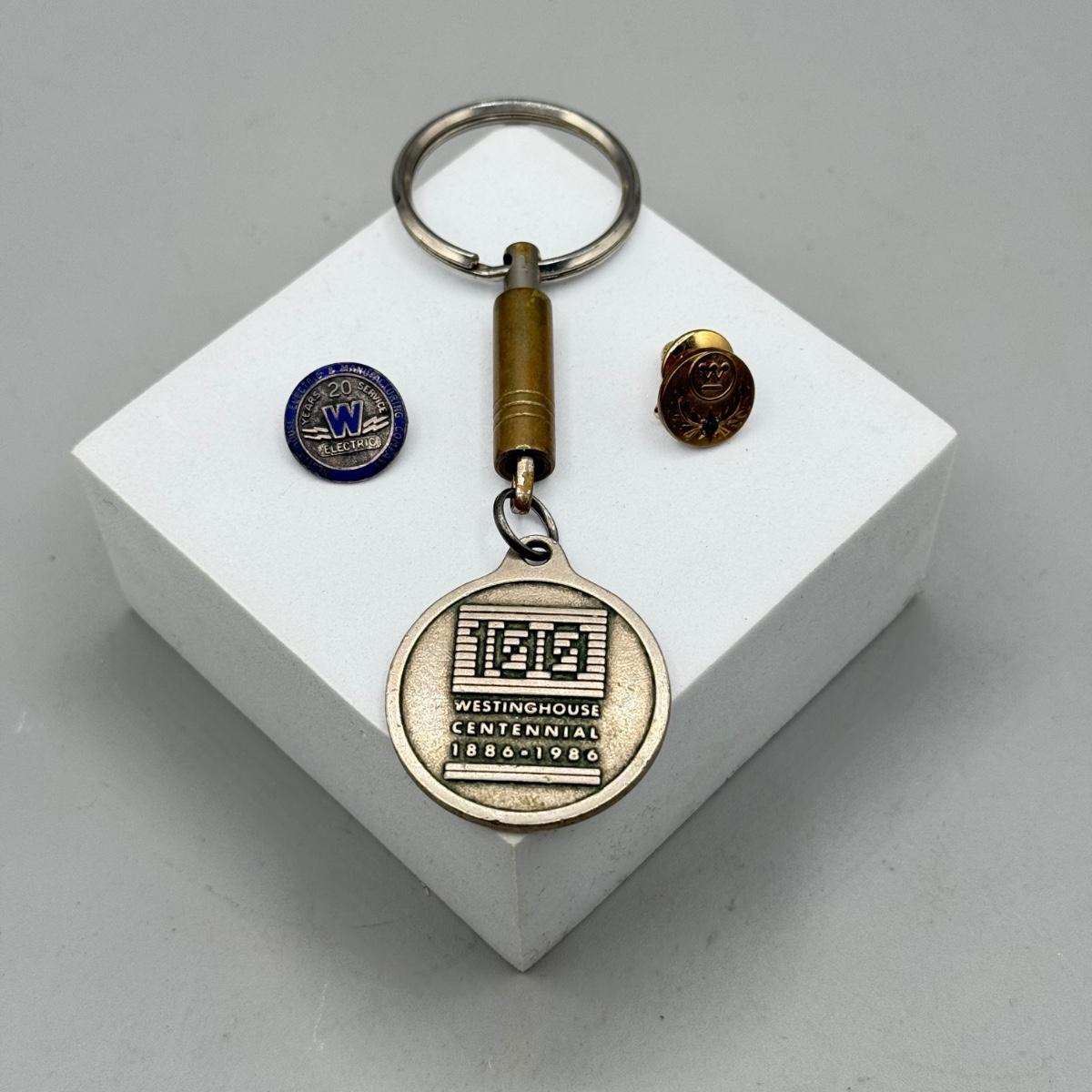 LOT 166: Vintage Westinghouse Keychain & Pins: 1950s Sterling & 1940s Gold Filled