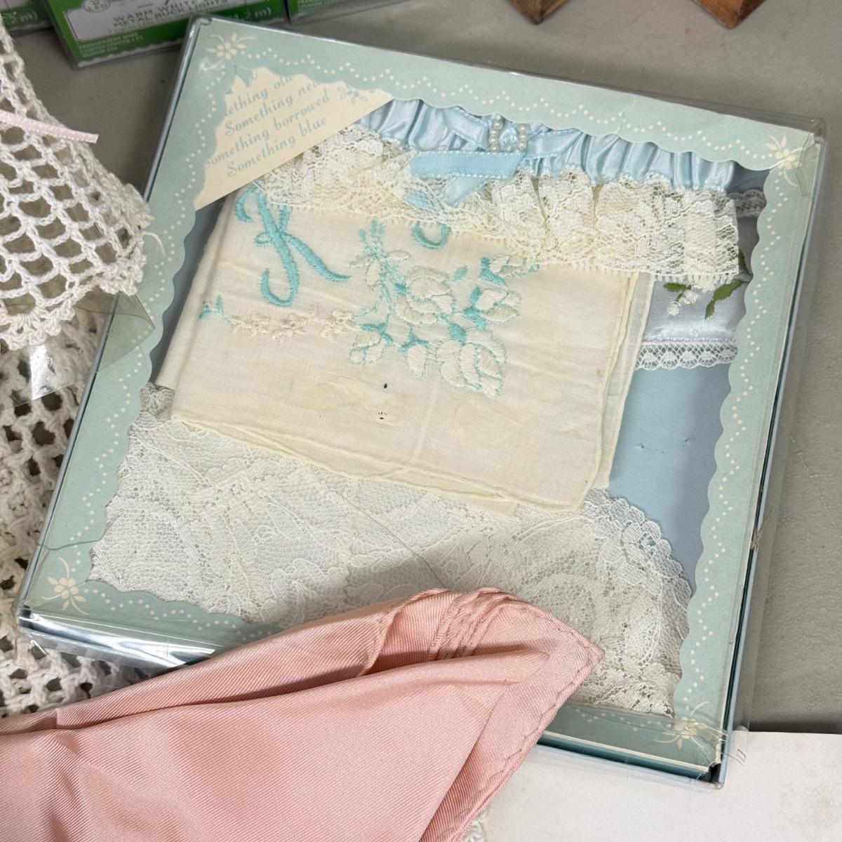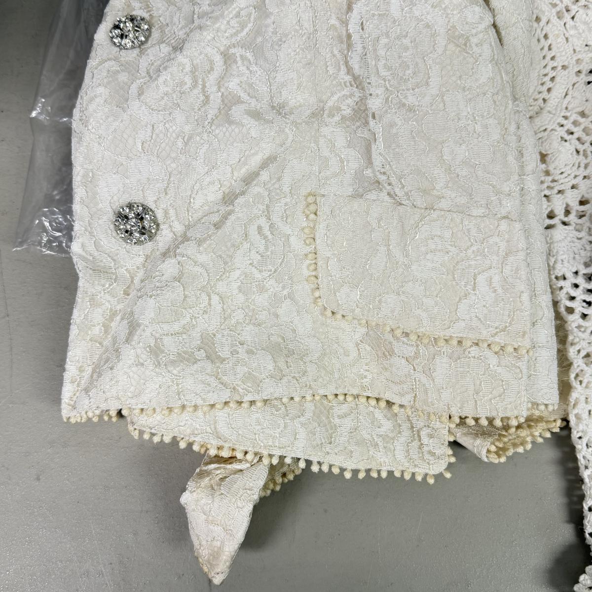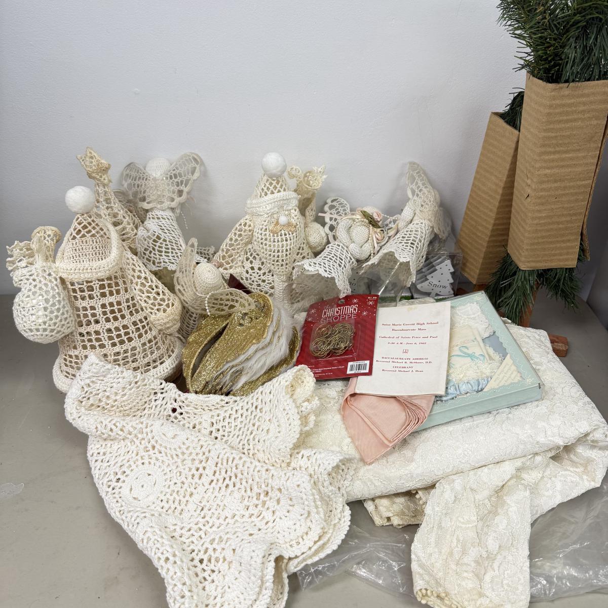 LOT 177: Vintage Lace Wedding Outfit, Crocheted Angels & Santa’s & More