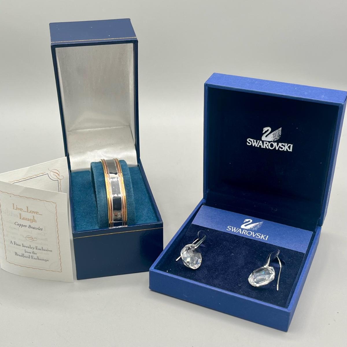 LOT 202: Swarovski Crystal Earrings and Bradford Exchange Copper Bracelet - in Original Boxes